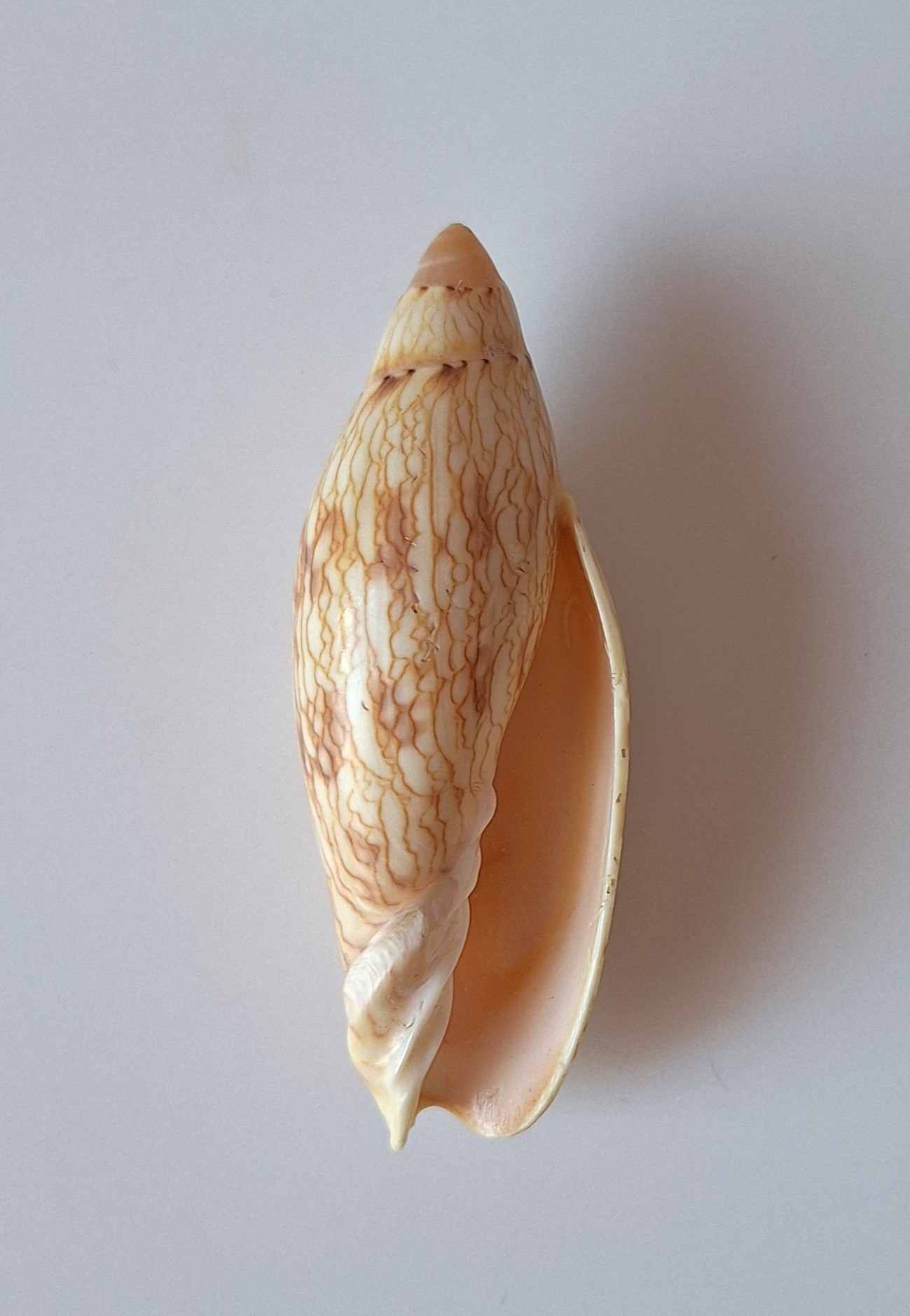 • hezký kus, okraj zabroušen, krásný vzor, vyloven vlečnou sítí v hloubce 20 až 25 metrů (nice piece, lip abrazed, beautiful pattern, trawled at 20 - 25 meters)