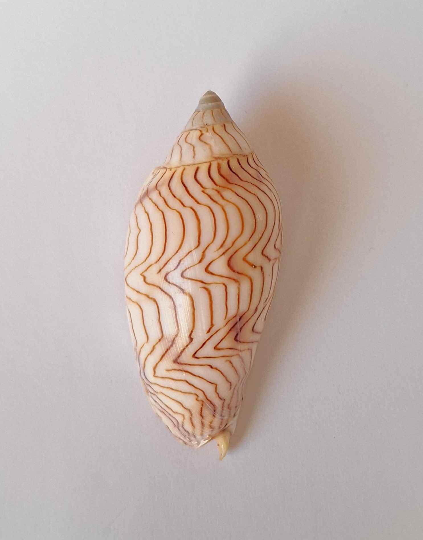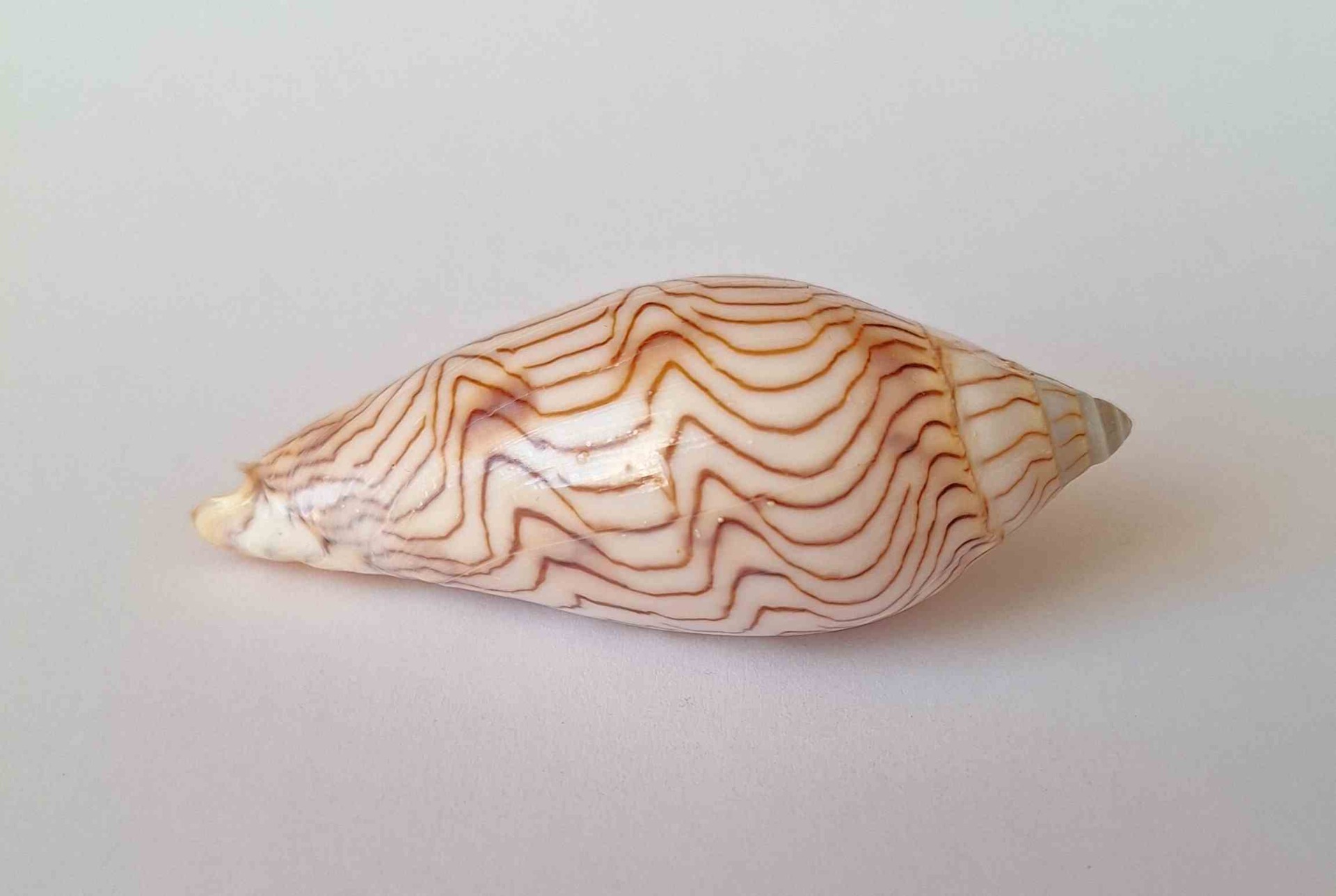 • moc hezký kus, pěkný vzor, endemický, drobné štípnutí na kanálku, zhojená jizva, uvnitř světle oranžová barva (very nice piece, nice pattern, endemic, minor chip on canal, healed scar, light orange color inside)