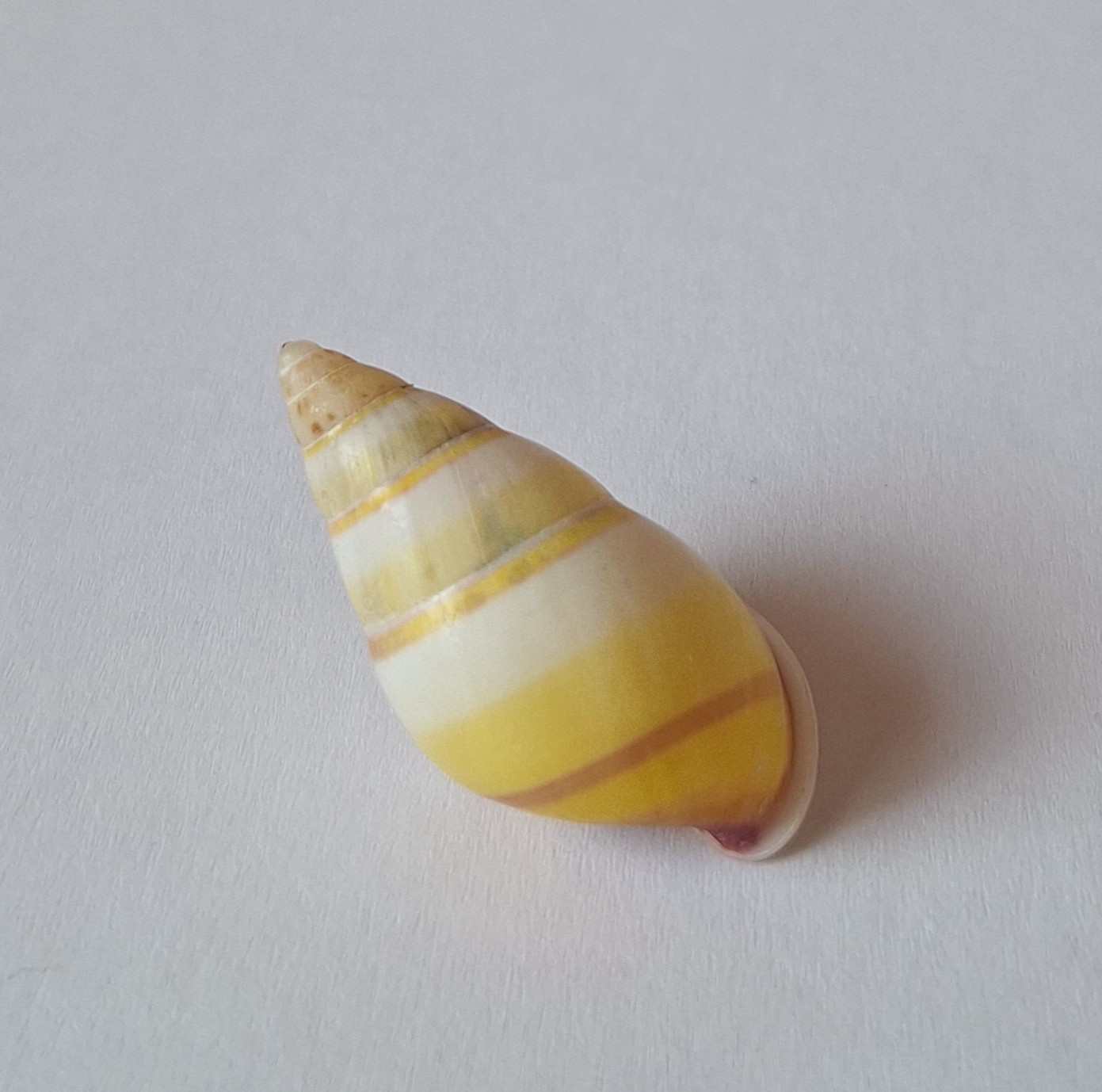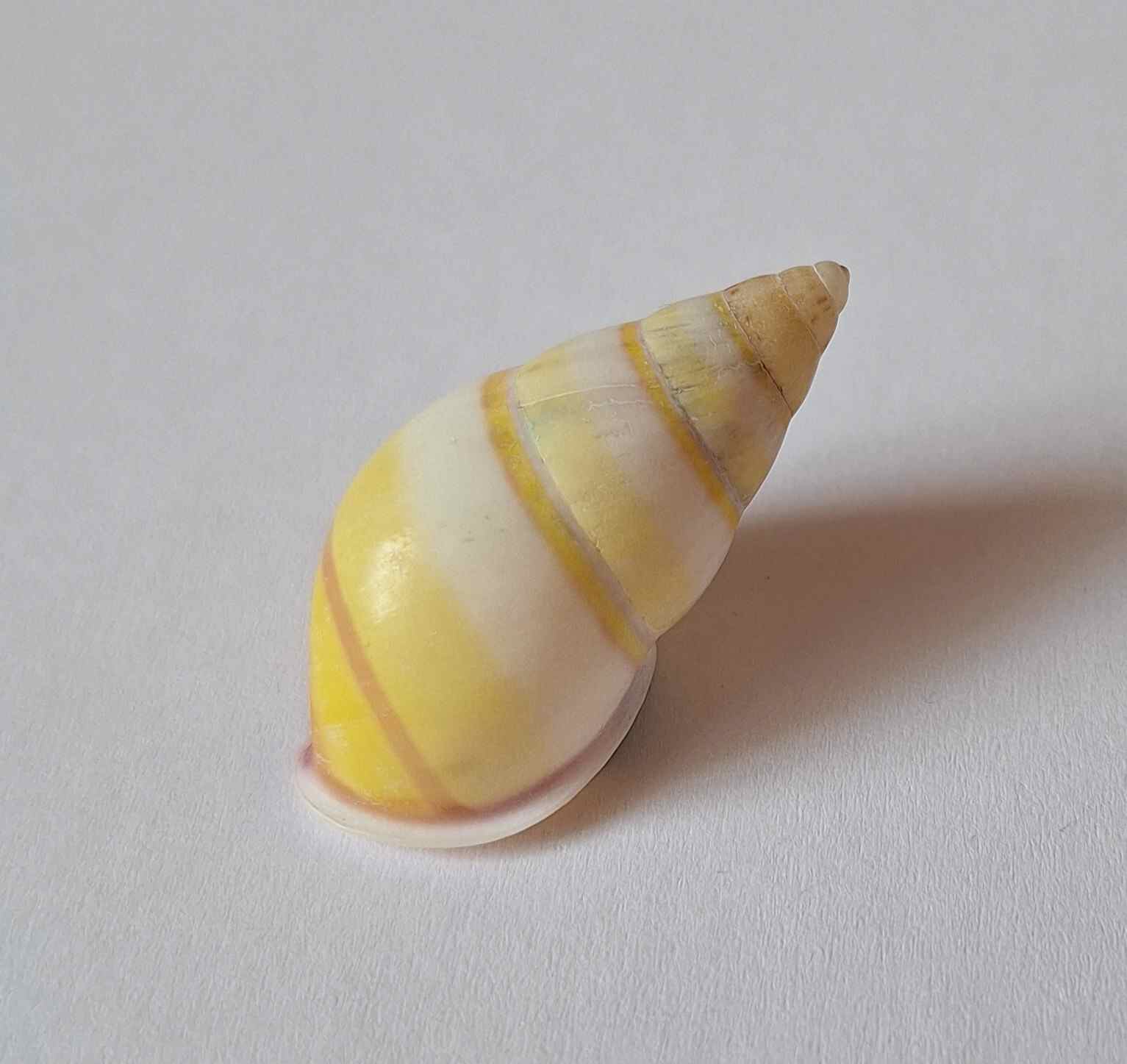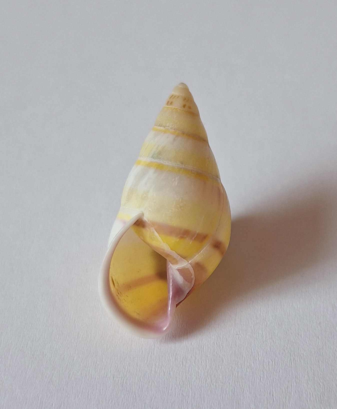 • žlutý kus, levotočivý, zhojená jizva, chycen v pralese v noci (yellow color, sinistral, healed scar, caught by local resident in the foest during the night, 06/2022)