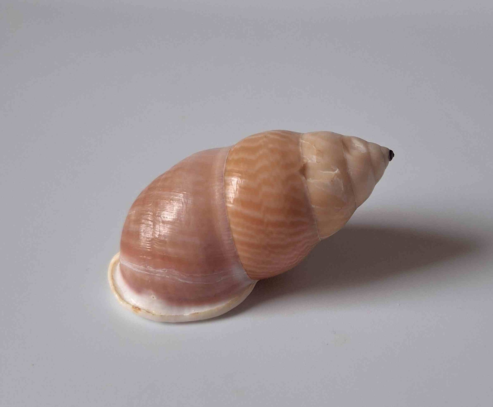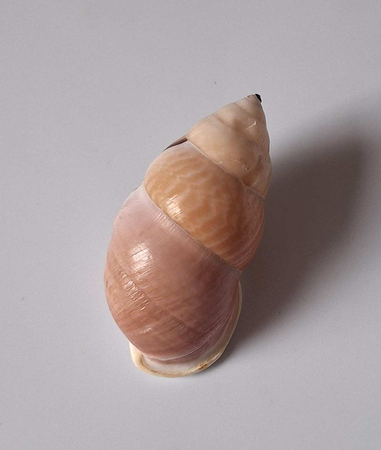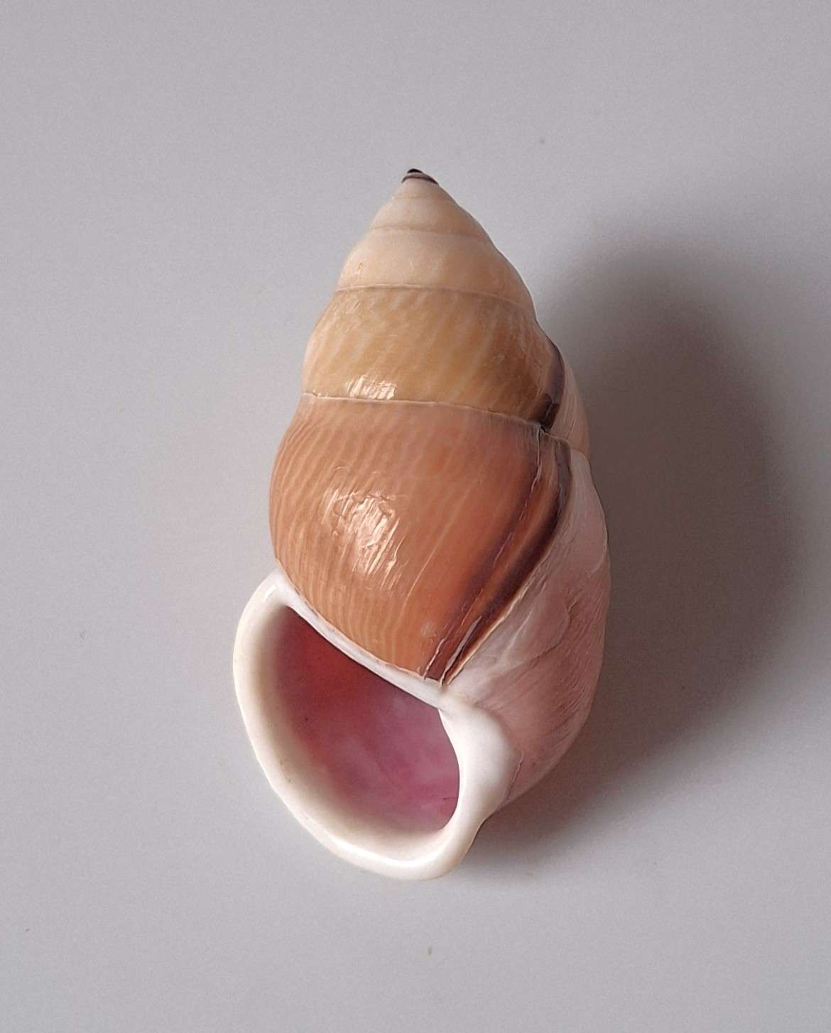 • hezký kus, levotočivý, krásná barva a vzor, uvnitř fialový, menší poškození na těle, nasbíráno v noci v pralese (nice piece, sinistral, beautiful color and pattern, inside purple, smaller damages on body, caught by local resident on tree in the forest during the night)