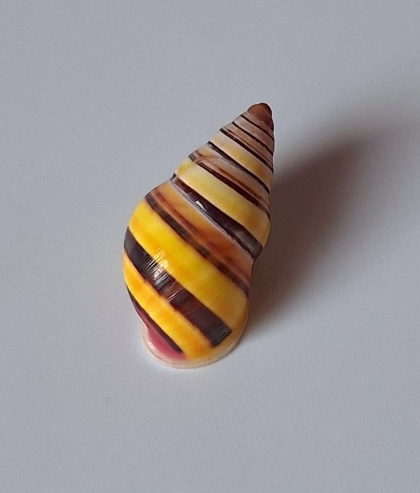 • krásný barevný exemplář, levotočivý, nasbíráno domorodci v pralese (beautiful colored specimen, sinistral, collected by local residents in the forest)