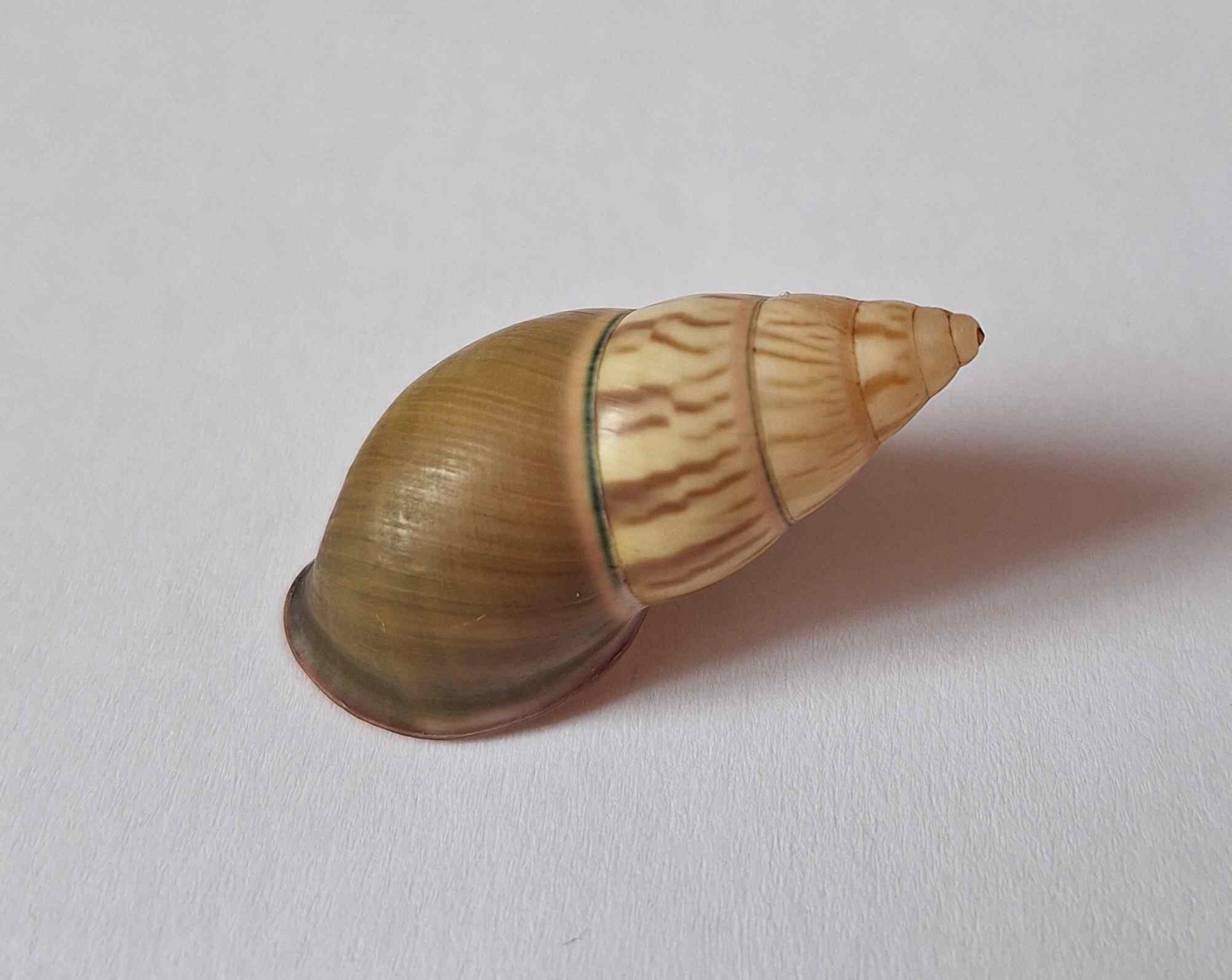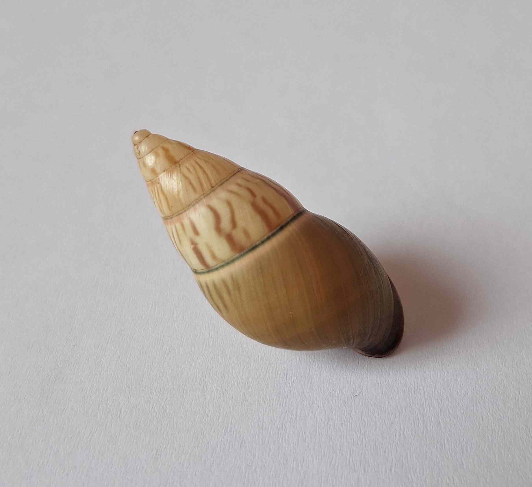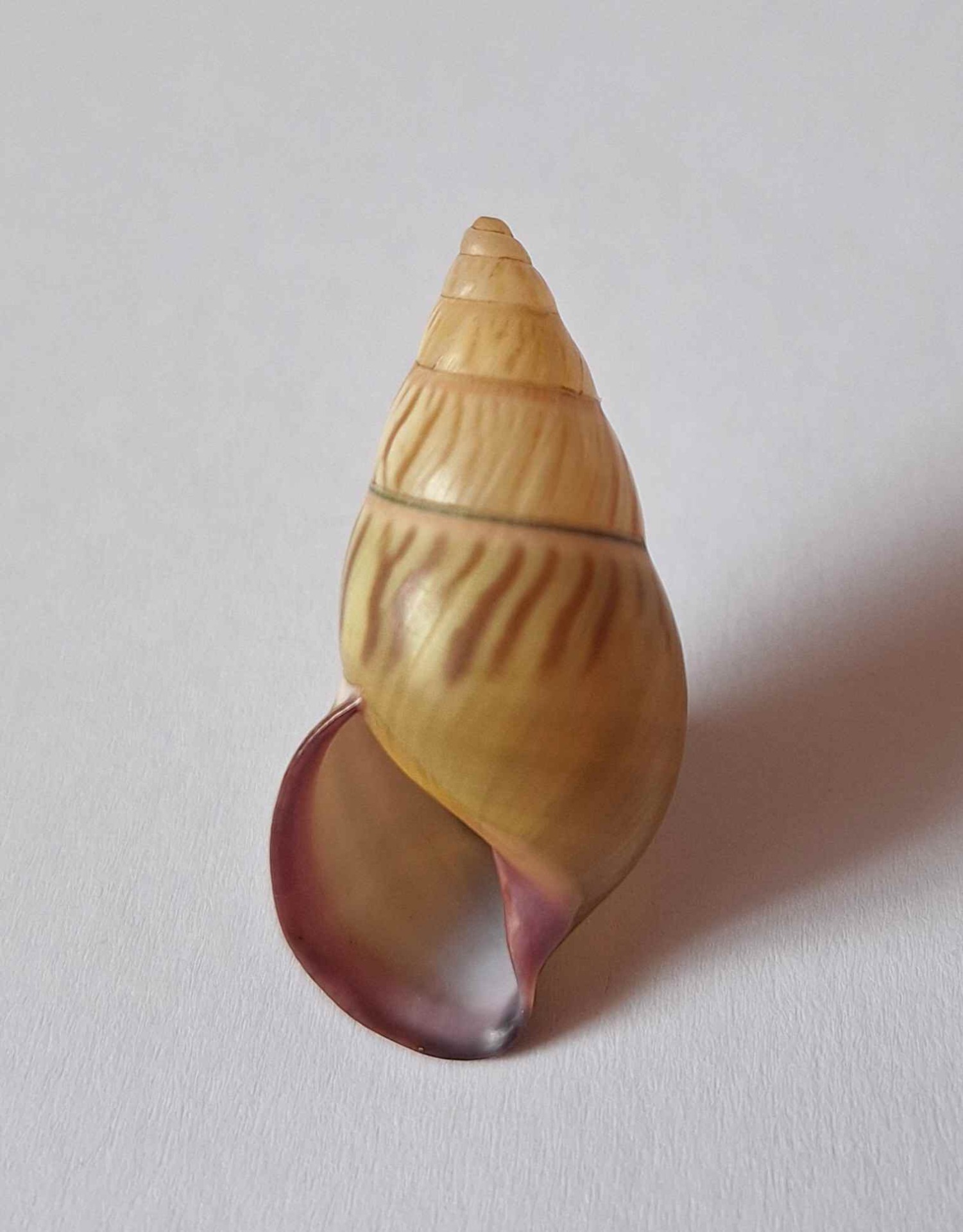 • moc hezký barevný kus, levotočivý, hezká barva a vzor, fialový okraj, nasbíráno farmářem v noci na kávovníku (very nice colored piece, sinistral, nice color and pattern, purple lip, caught by local farmer on coffee tree during the night)