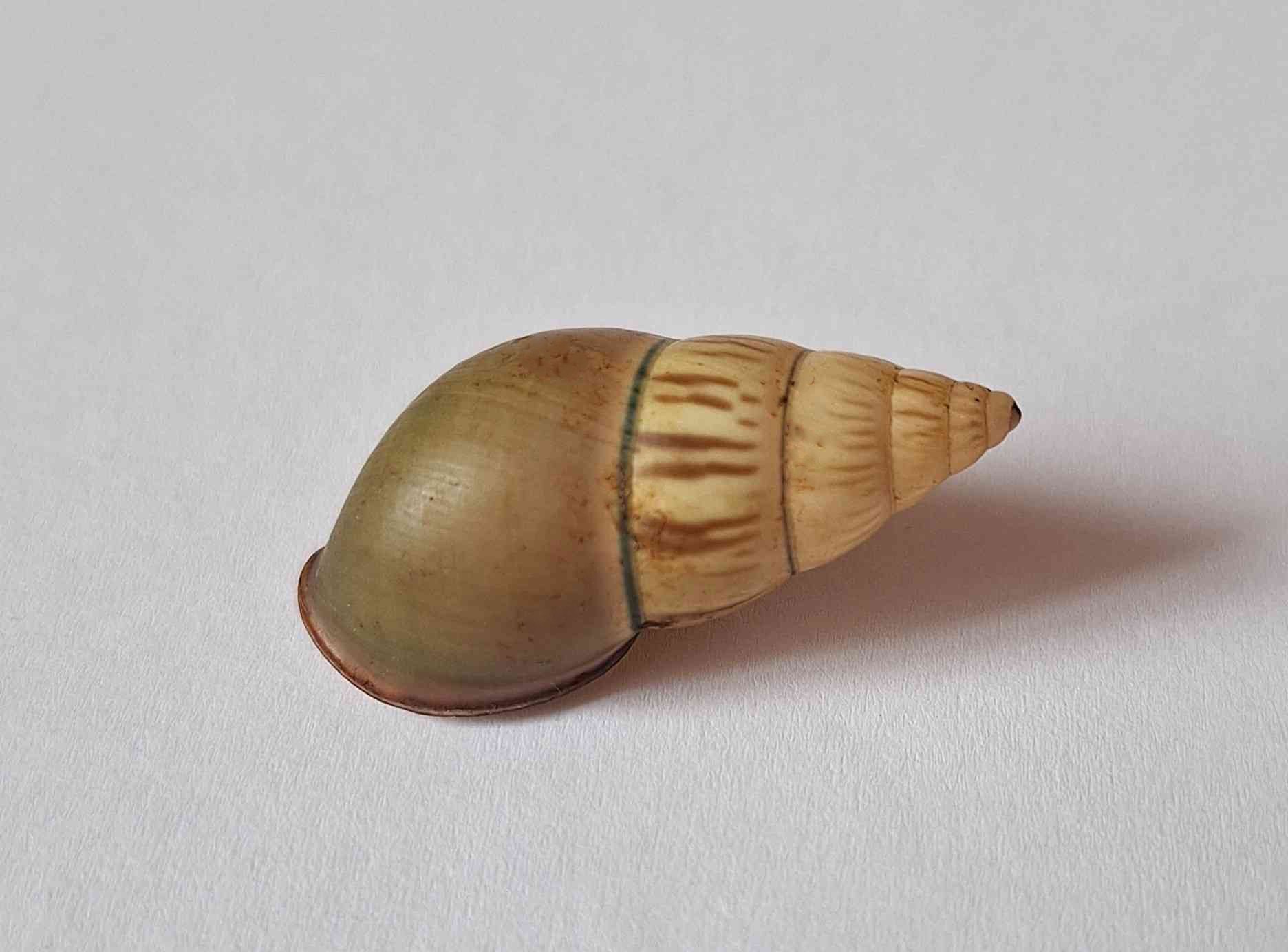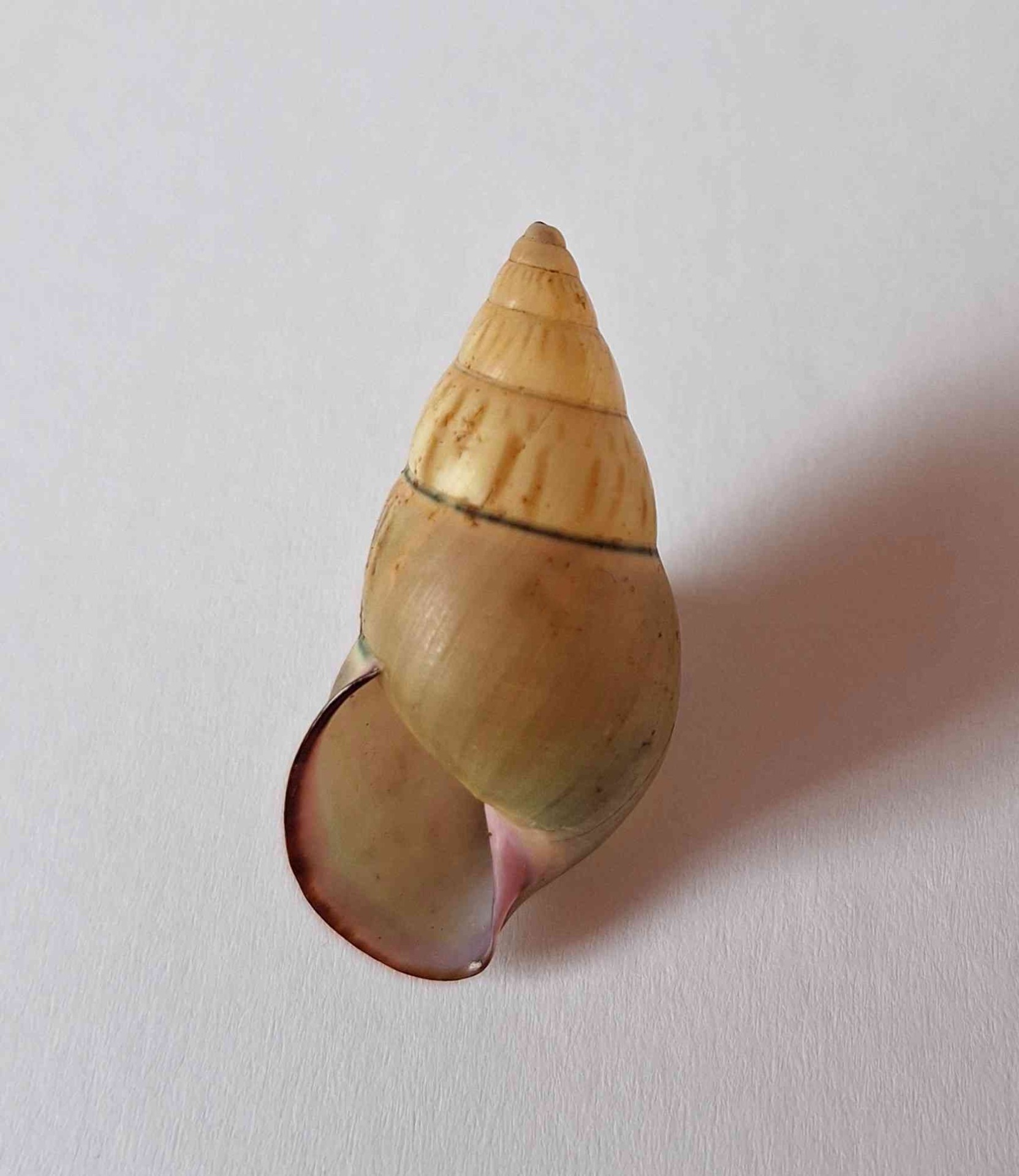 • moc hezký barevný kus, levotočivý, hezká barva a vzor, fialový okraj, nasbíráno farmářem v noci na kávovníku (very nice colored piece, sinistral, nice color and pattern, purple lip, caught by local farmer on coffee tree during the night)