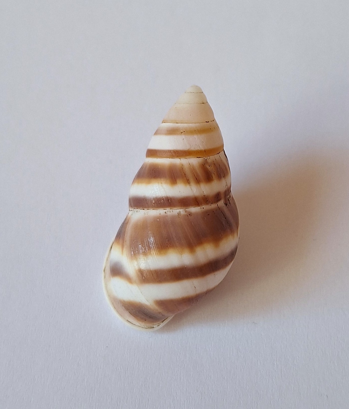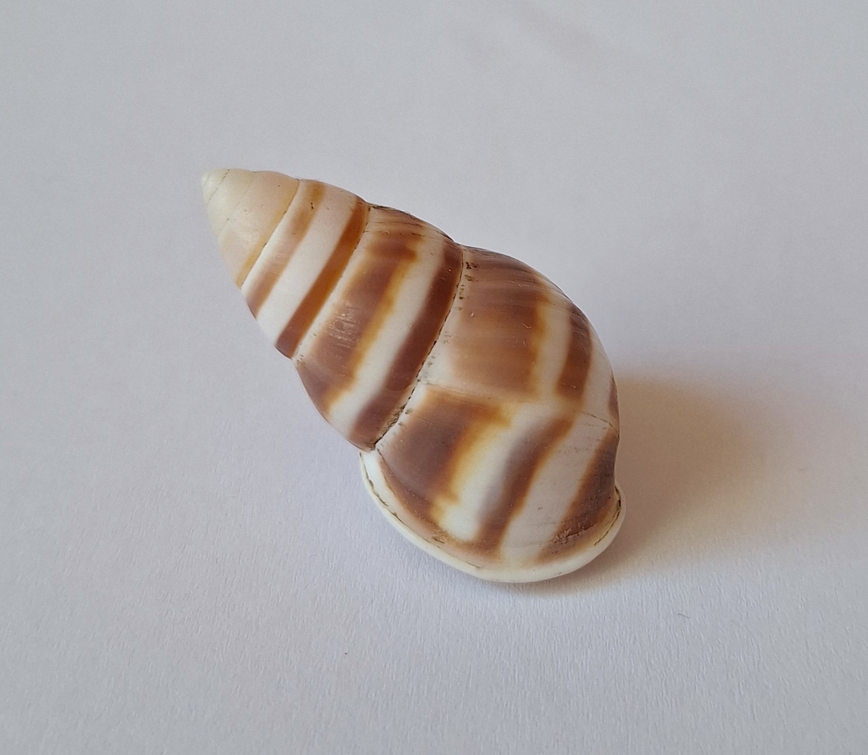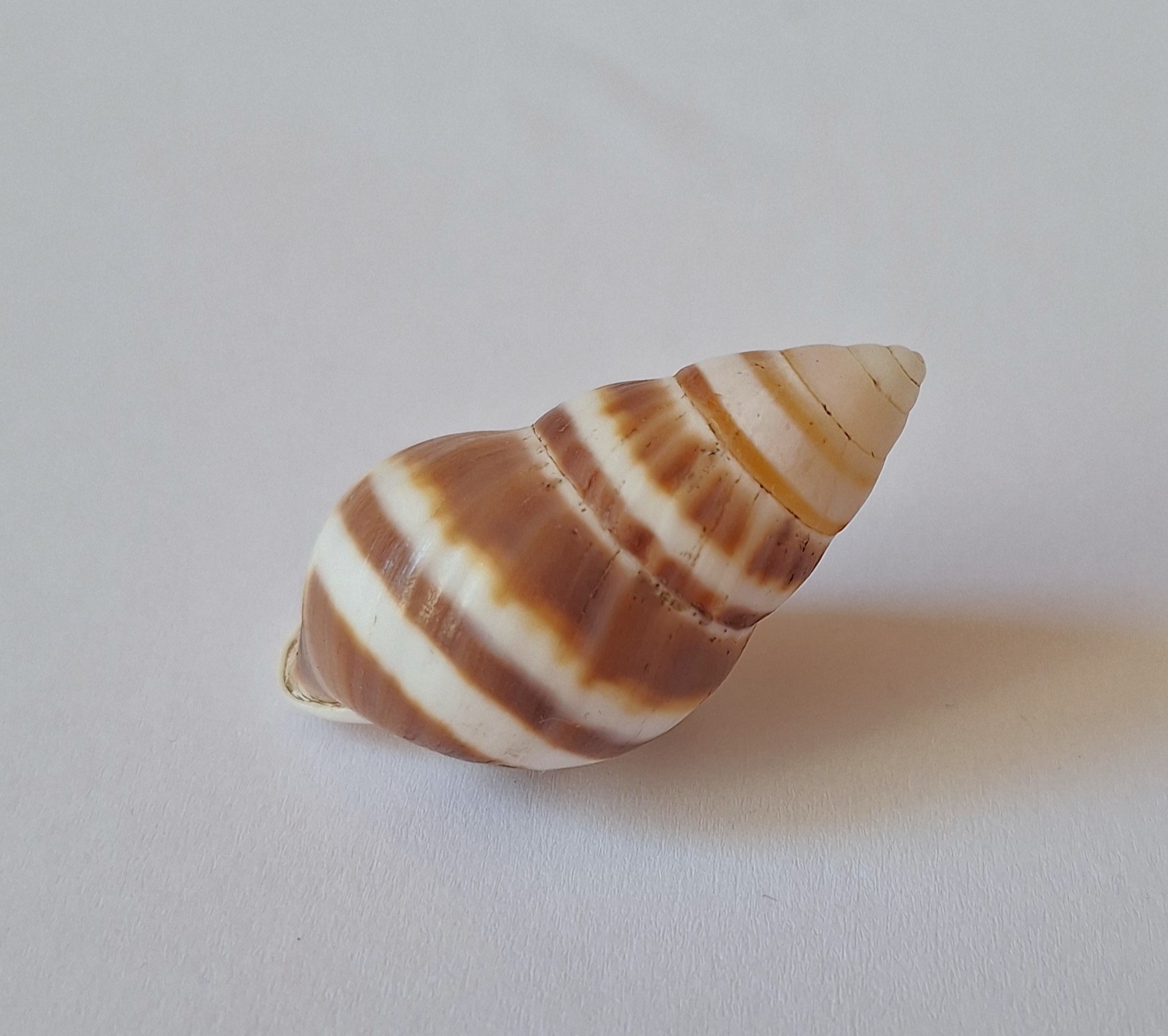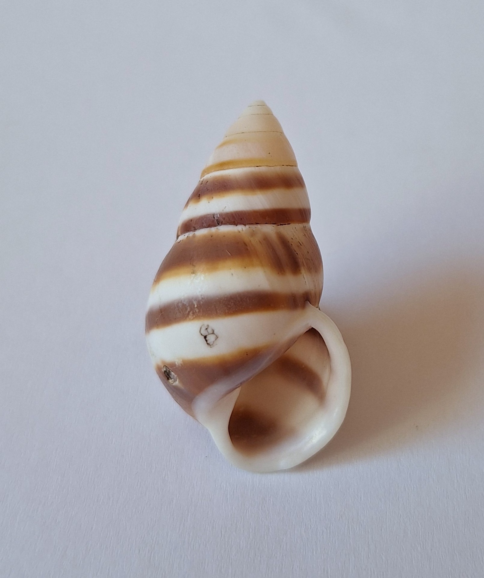 • barevný kus, pravotočivý, dvě menší poškození, nasbíráno v noci na stromě (colored piece, dextral, two minor damages, caught by local resident on tree during the night)