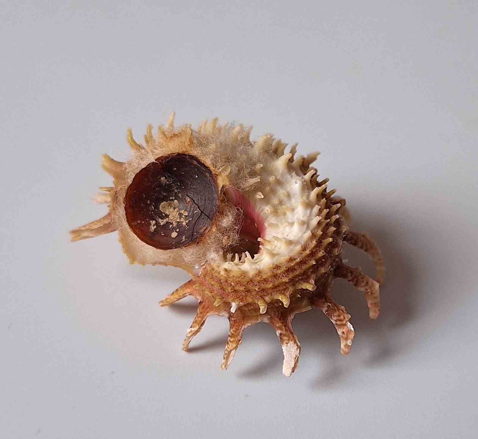 • moc hezký kus s víčkem, pěkná barva, hezké ostny (very nice piece with operculum, nice color, nice spines)