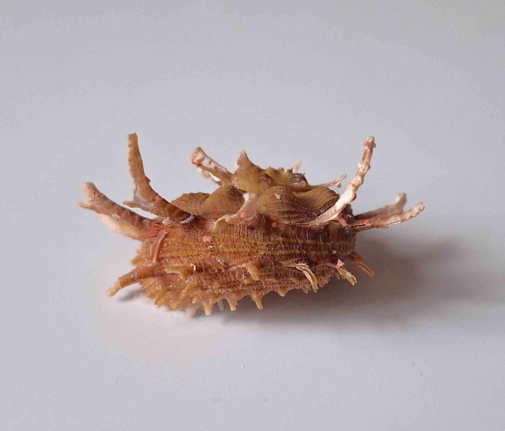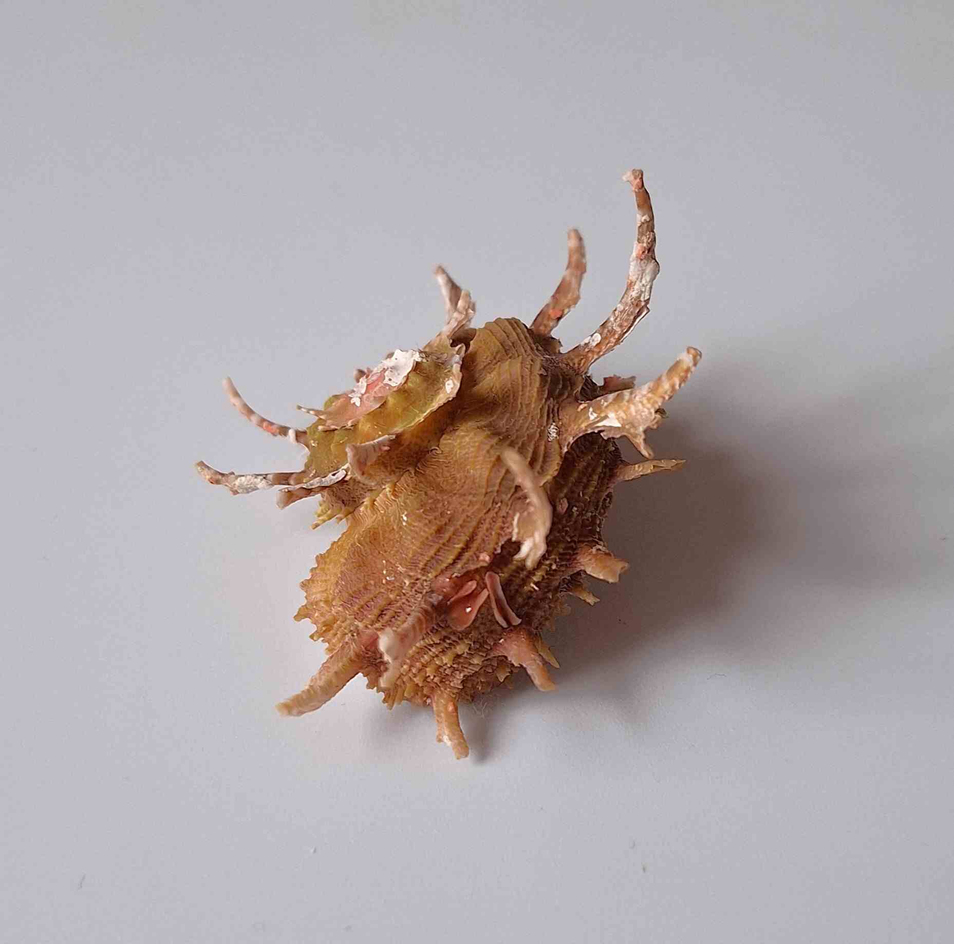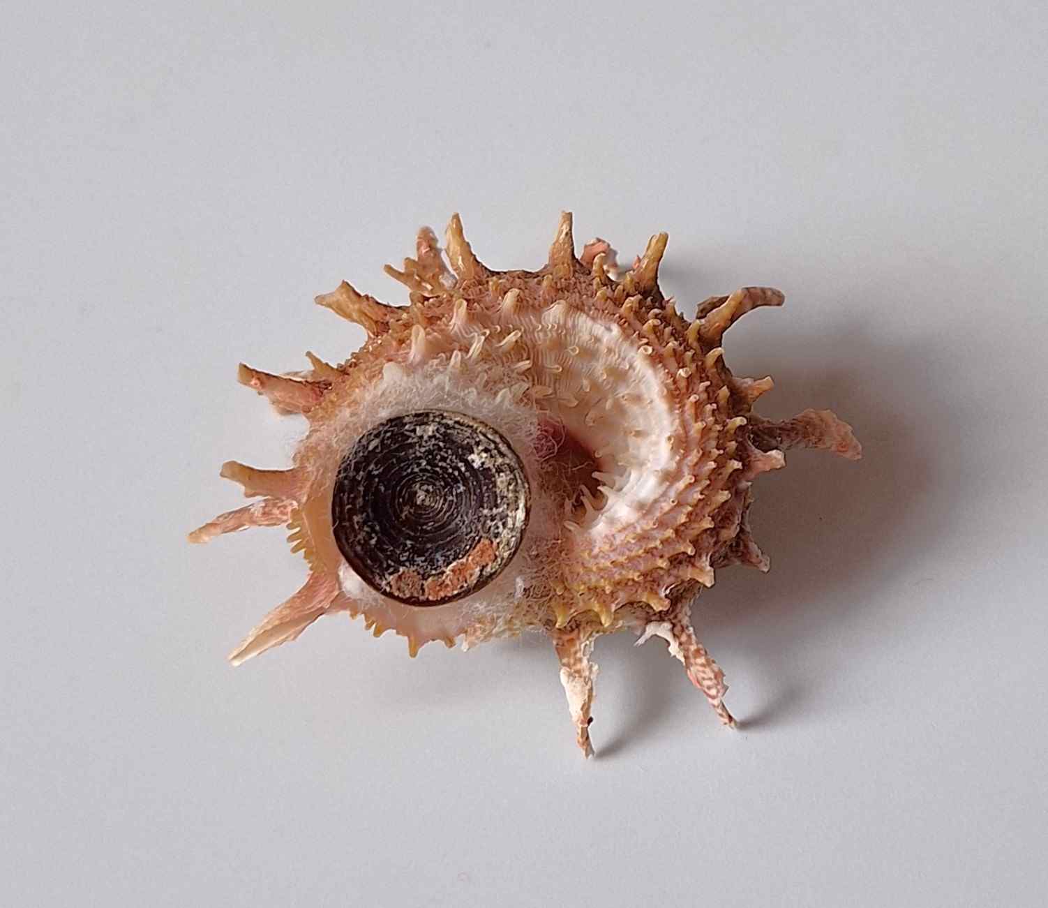 • krásný exemplář s víčkem, nádherné barva, hezké trny, jedna větší dírka od predátora (beautiful specimen with operculum, very nice color, nice spines, one bigger predatorhole)