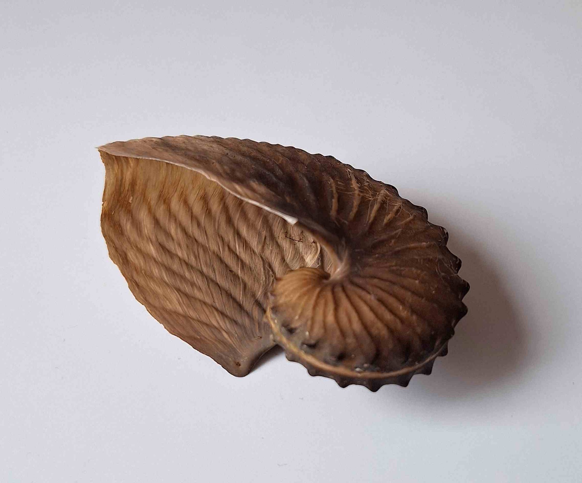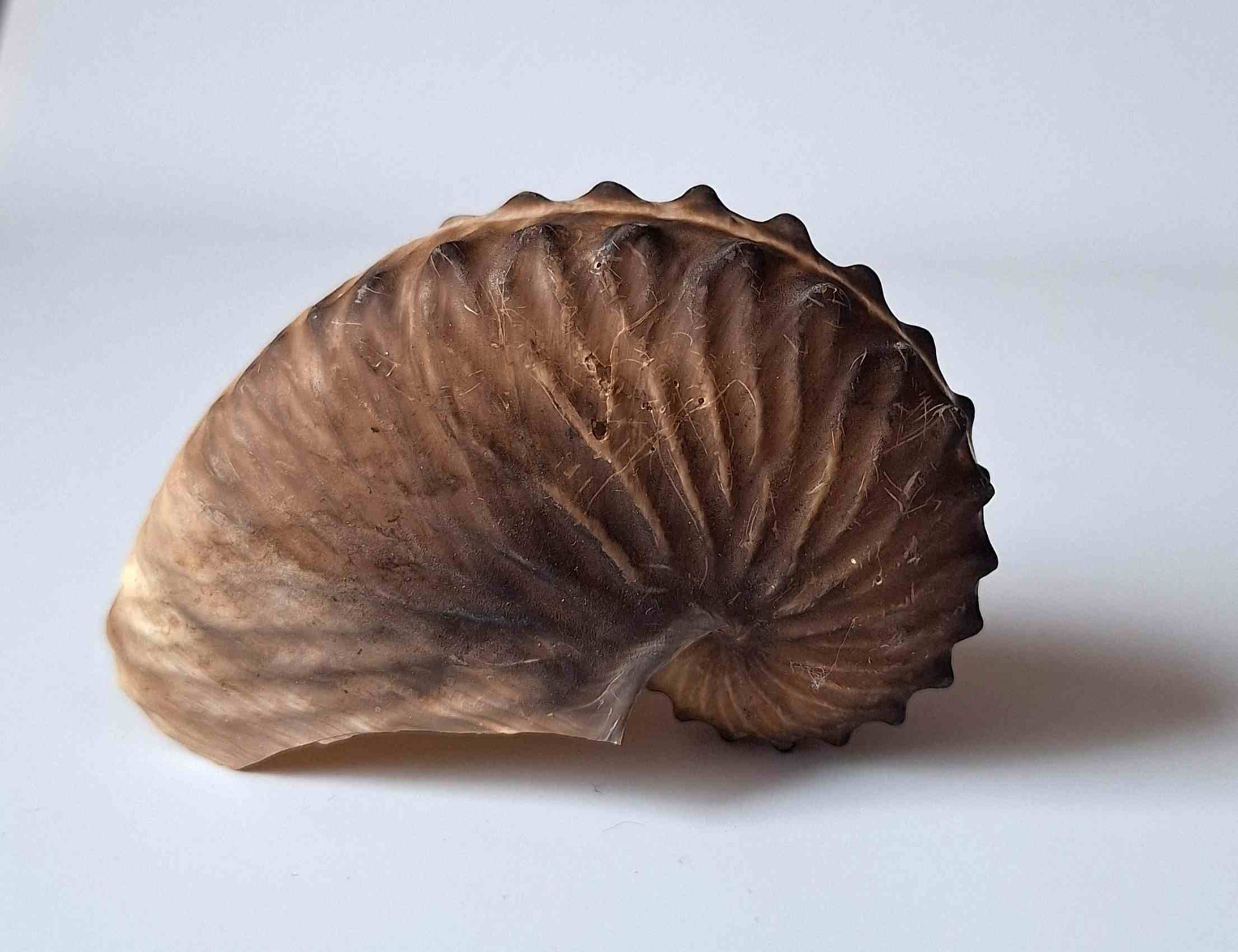 • zajímavý exemplář, hezká barva, několik malých dírek, štípnutí na okraji, je to mořský hlavonožec patřící mezi chobotnice (interesting specimen, nice color, some small holes, chip on lip, it is a sea cephalopod, belonging to the octopuses)