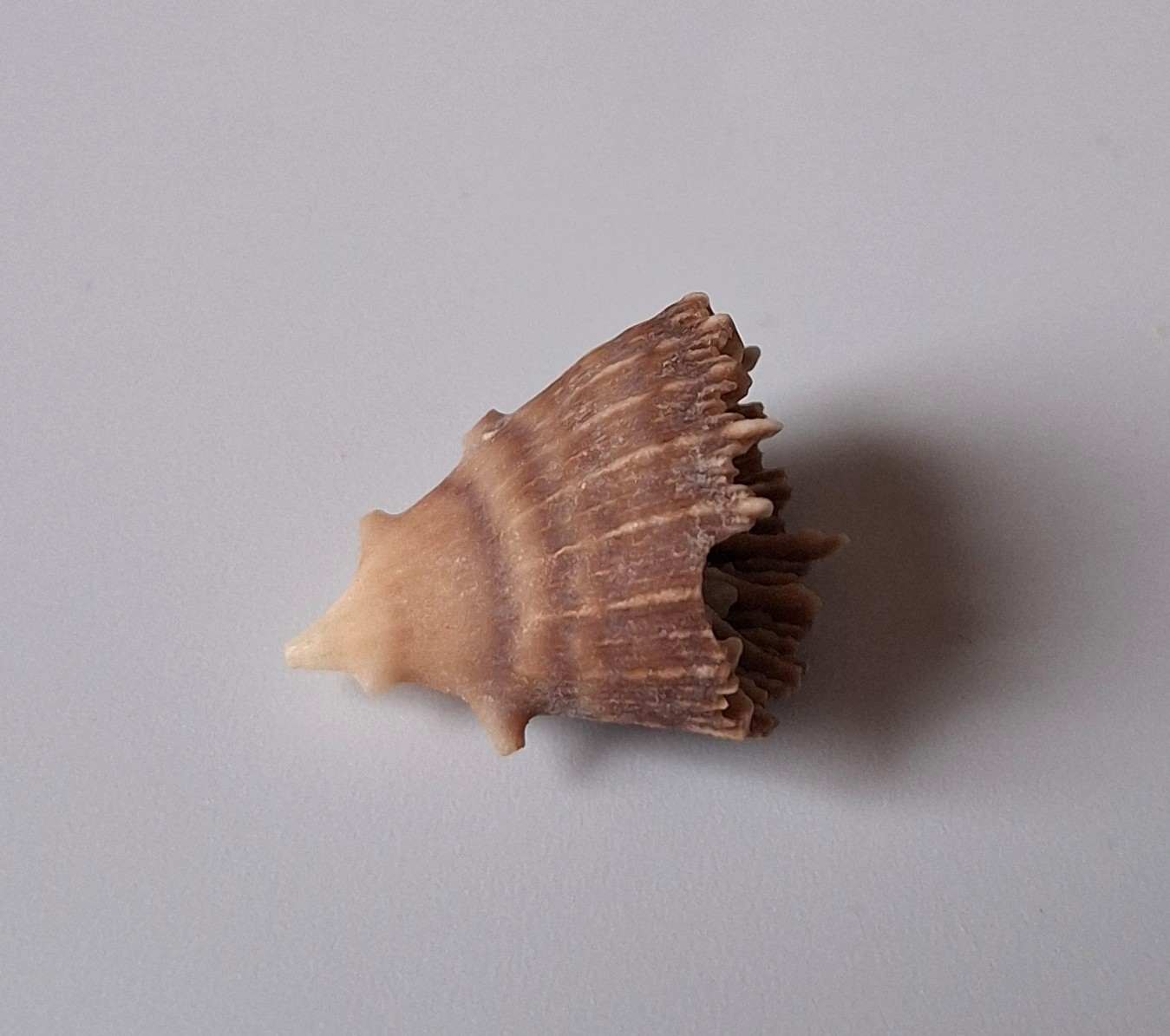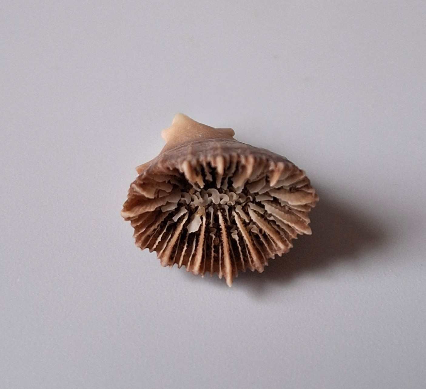 • hezký hnědý kus, kousek štípnutý, patří do family CARYOPHYLLIIDAE, ze staré sbírky (nice brown piece, chipped, from old collection)