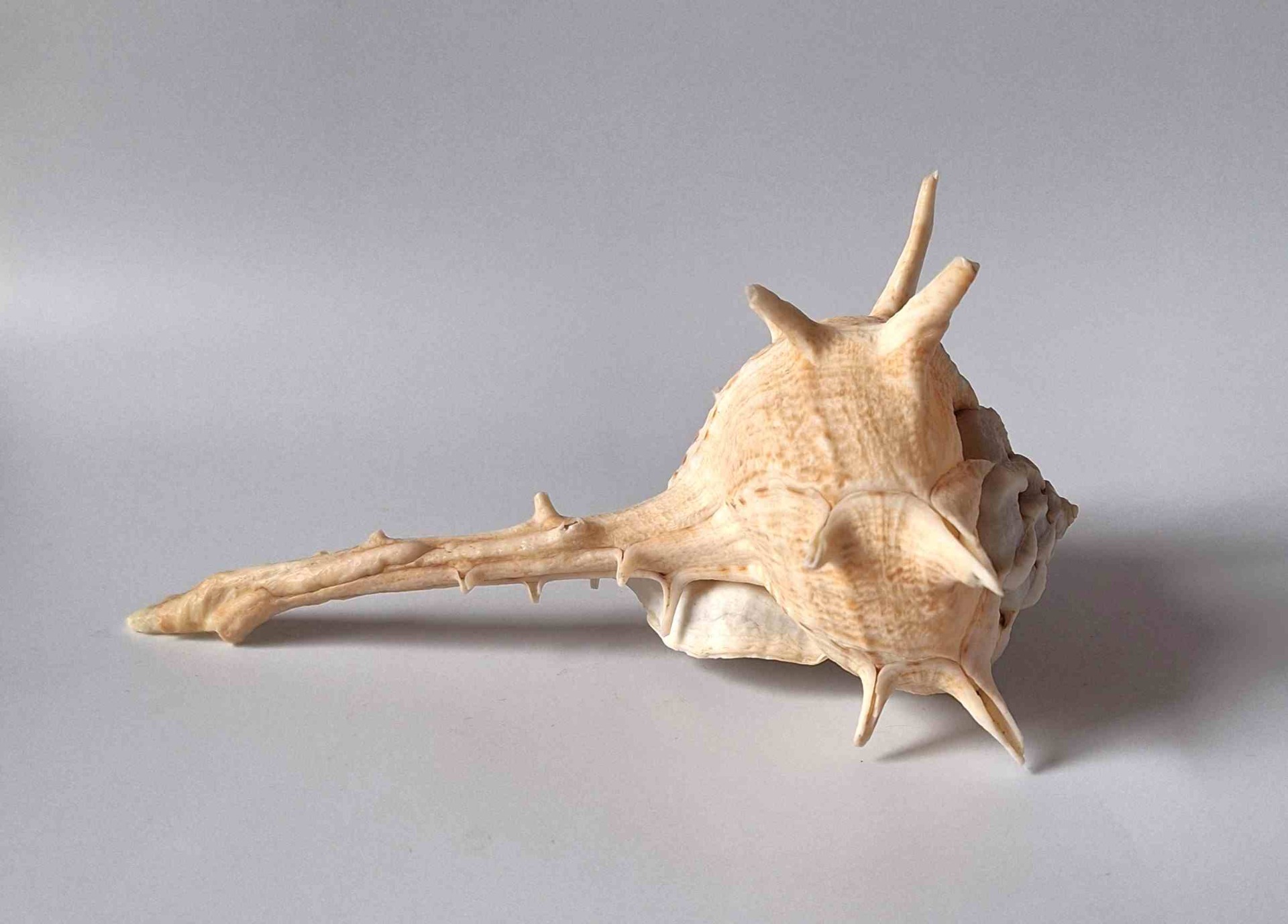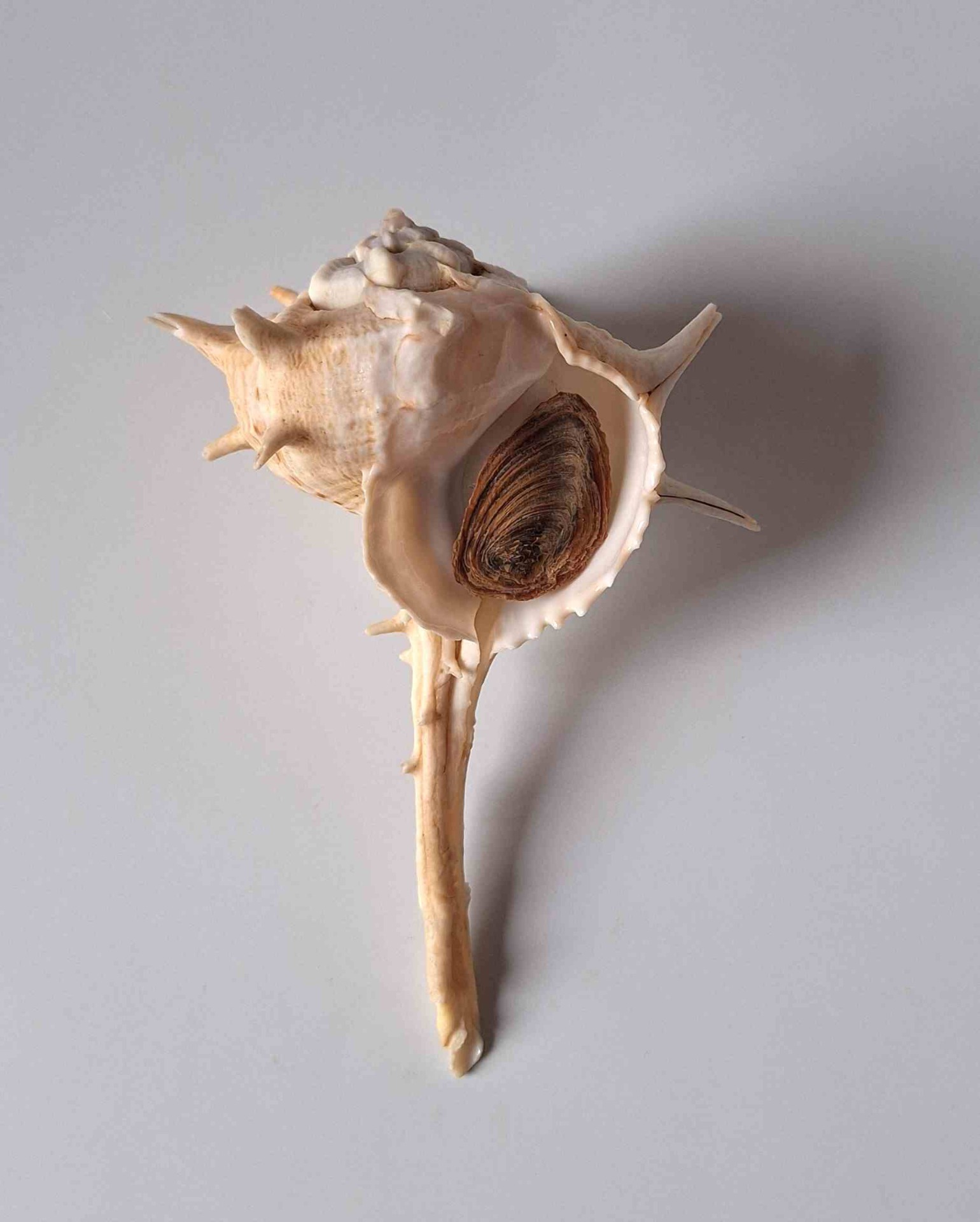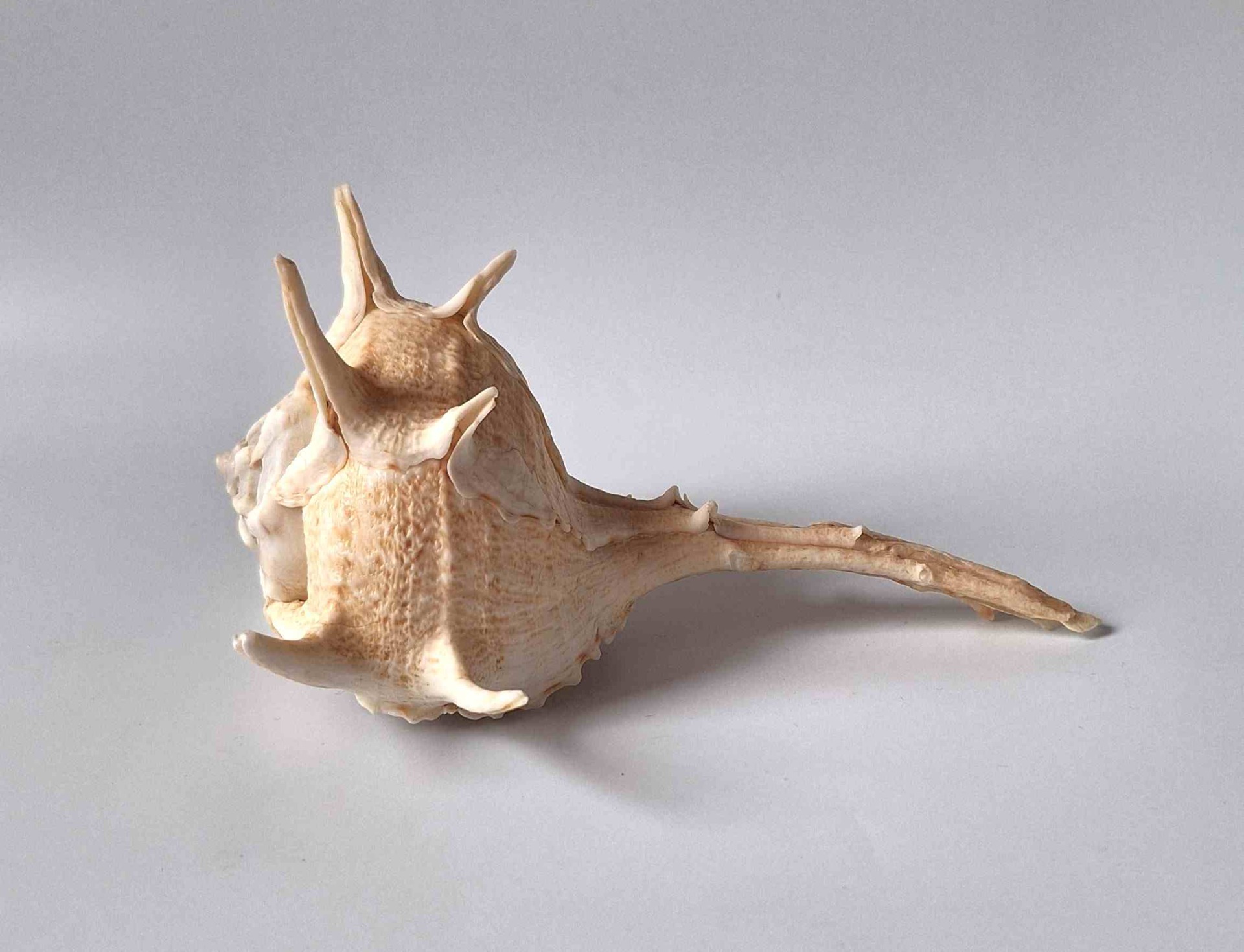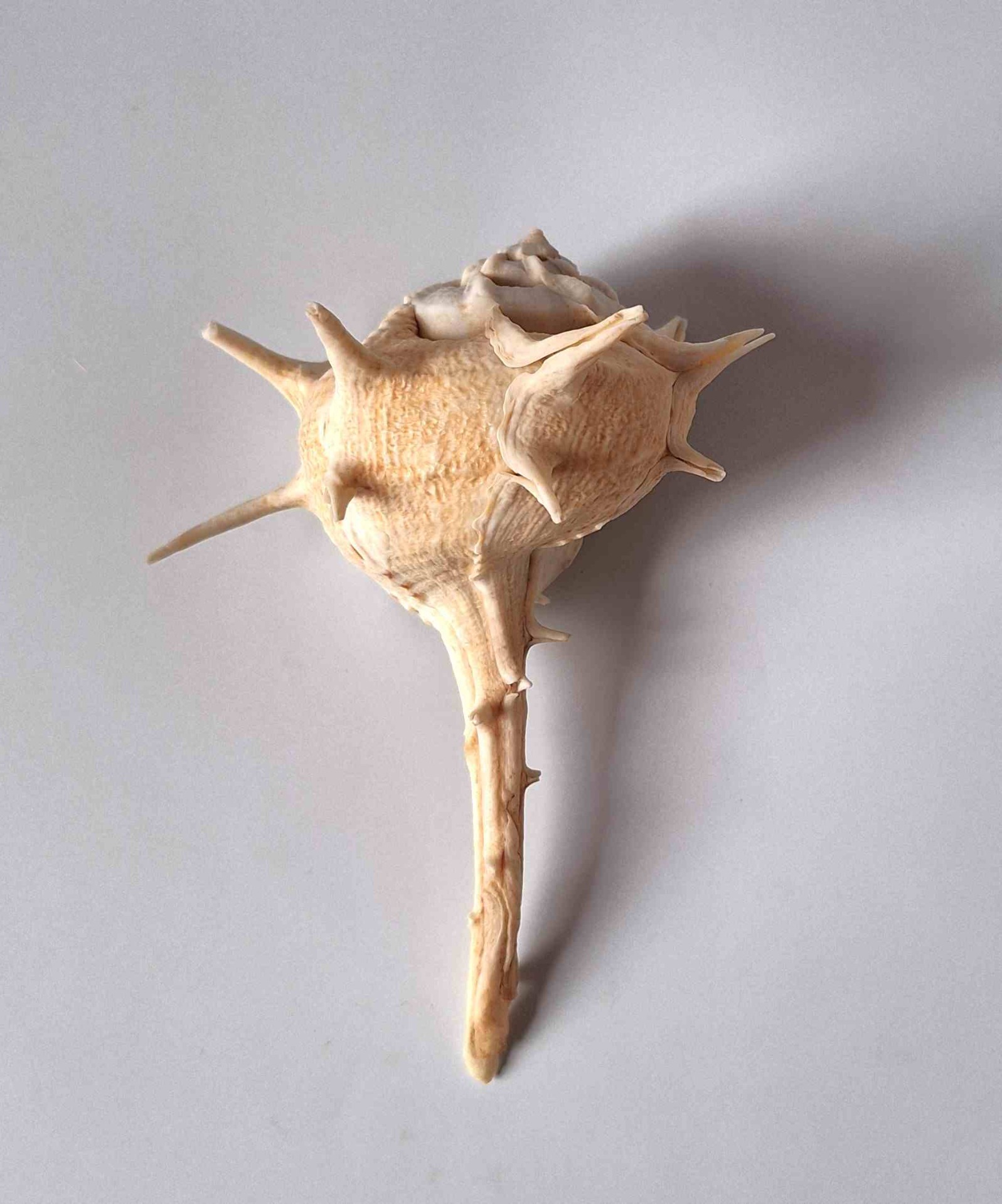 • nádherný velký kus s víčkem, krásná běžová barva, štípnutí na kanálku, nějaká poškození na trnech, ale stále nádherný kus (beautiful big piece with operculum, beautiful beige color, chip on canal, some damages on thorns, but still very nice piece)