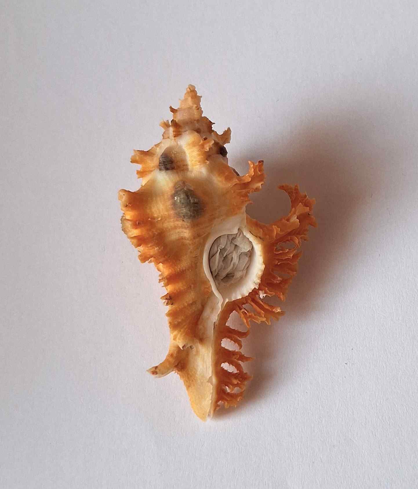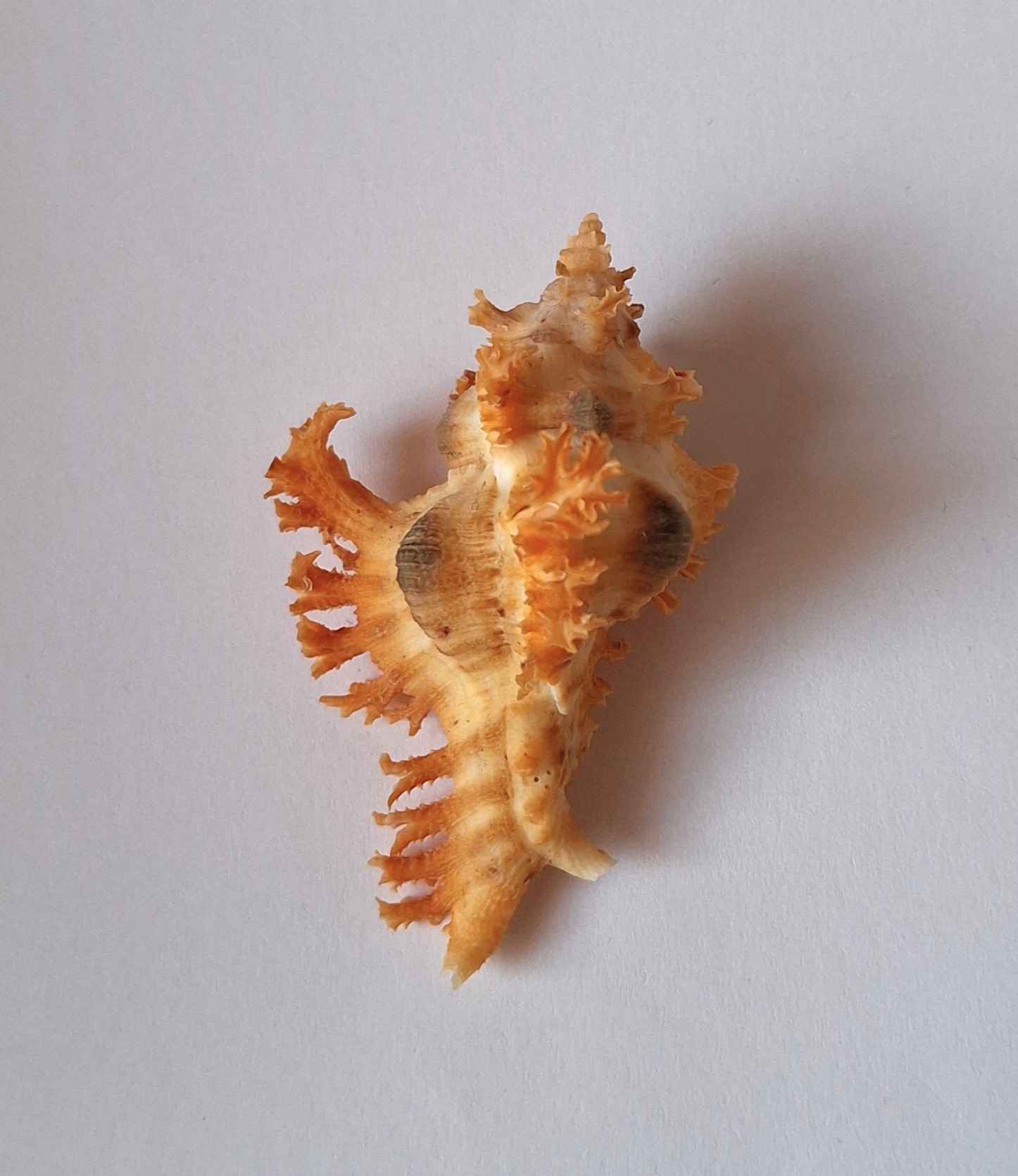 • krásný kus, moc hezká oranžová barva, krásné ostny, štípnutý kanálek, vyloven v hloubce 5 až 10 metrů (beautiful piece, very nice orange color, beautiful spines, canal chipped, taken by diving at a depth of 5 to 10 meters)
