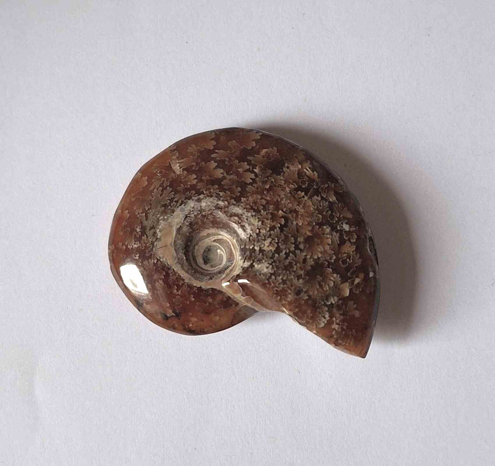 - leštěná zkamenělina celého amonita s krásným vzorem (polished whole ammonite fossil with beautiful pattern)