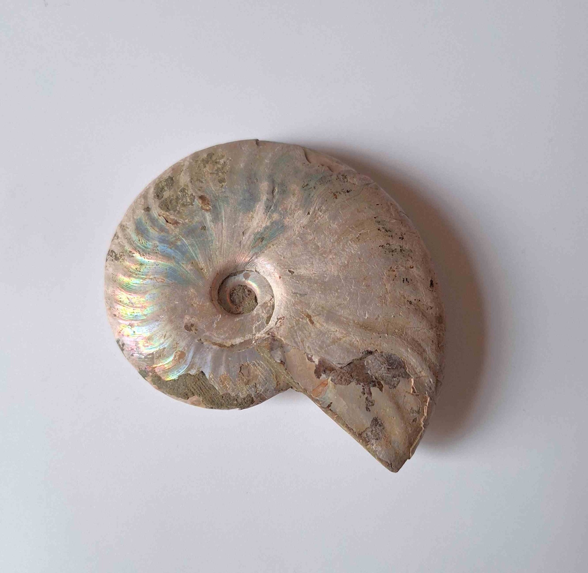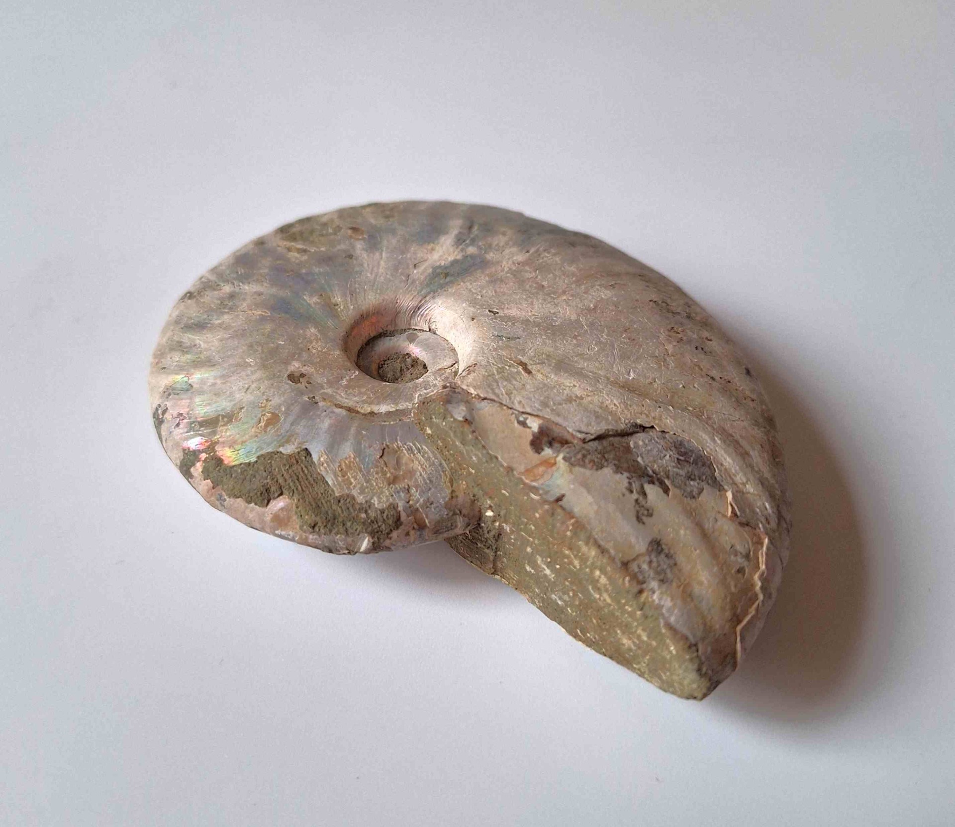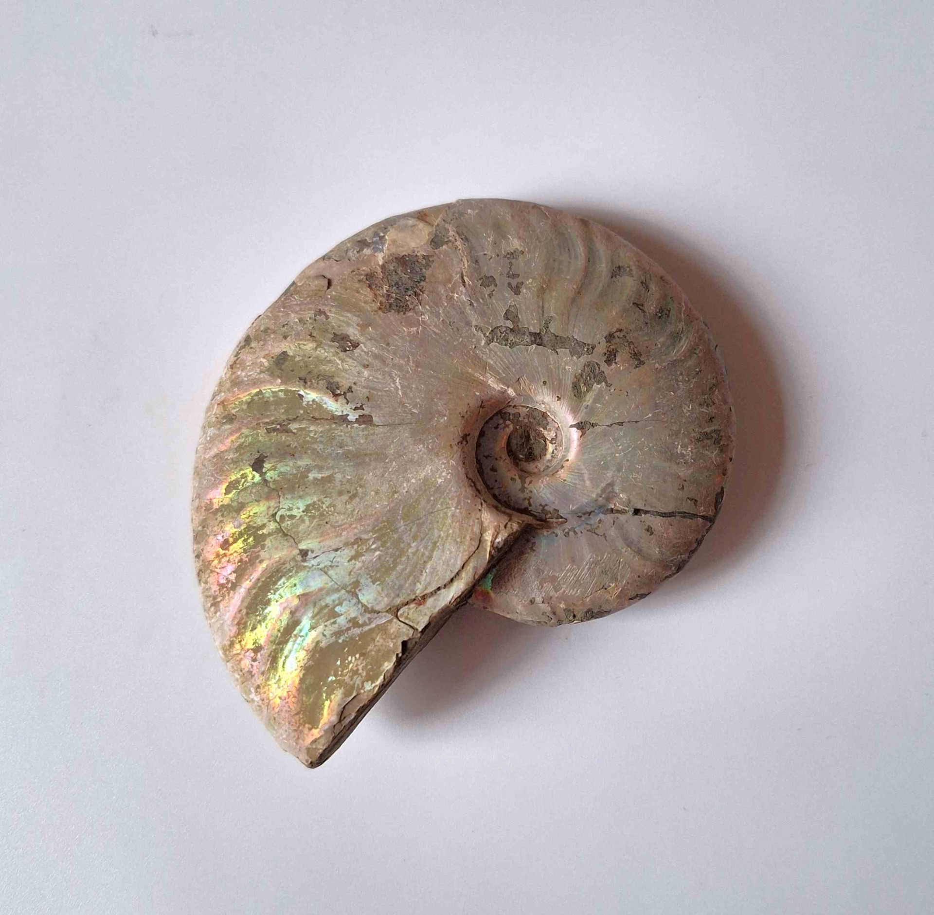 - leštěná zkamenělina celého amonita - krásně perleťový na povrchu (polished whole ammonite fossil - beautiful pearlescent on the surface)