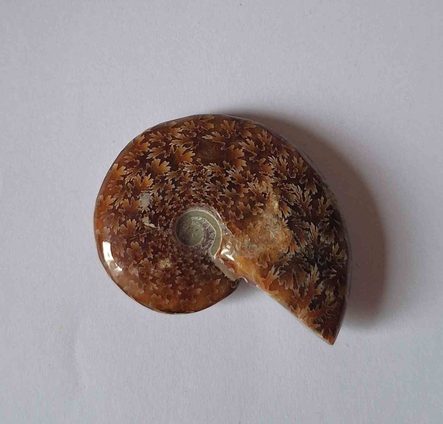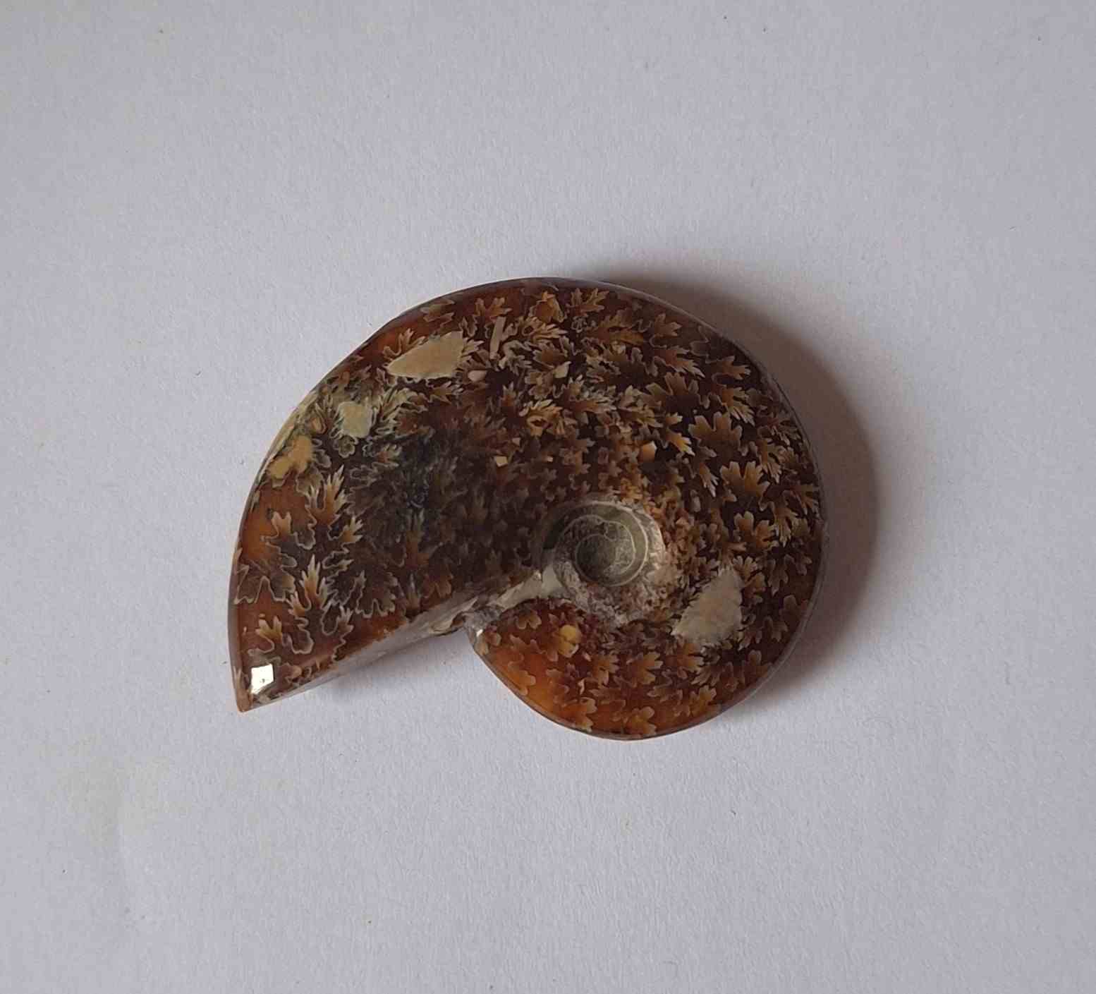 - leštěná zkamenělina celého amonita s krásným vzorem (polished whole ammonite fossil with beautiful pattern)