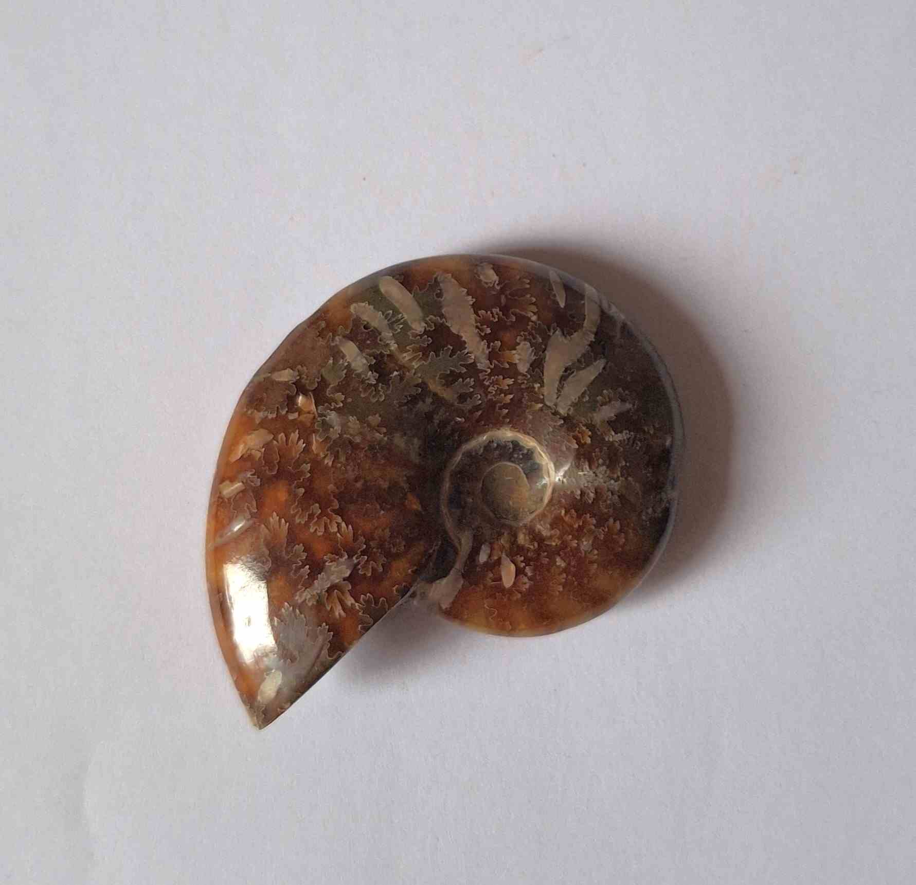 - leštěná zkamenělina celého amonita s krásným vzorem (polished whole ammonite fossil with beautiful pattern)