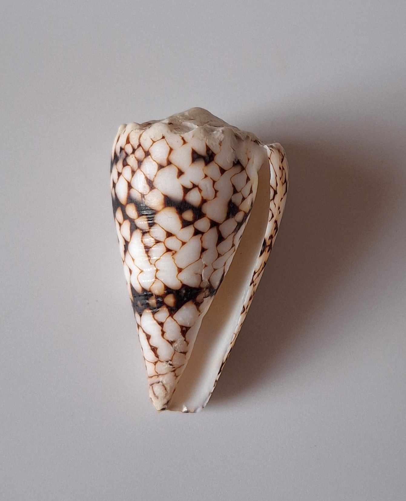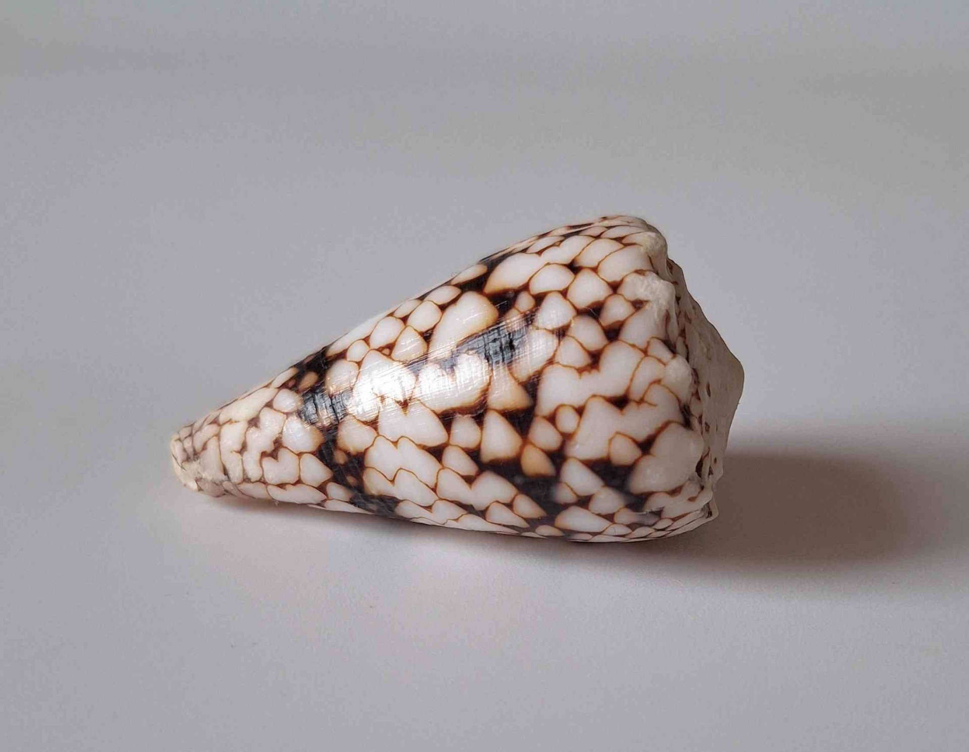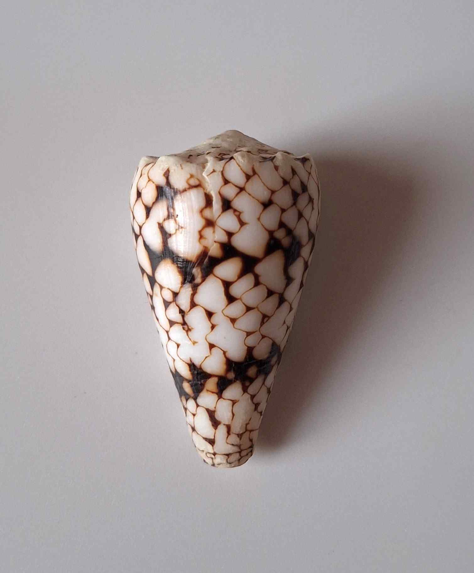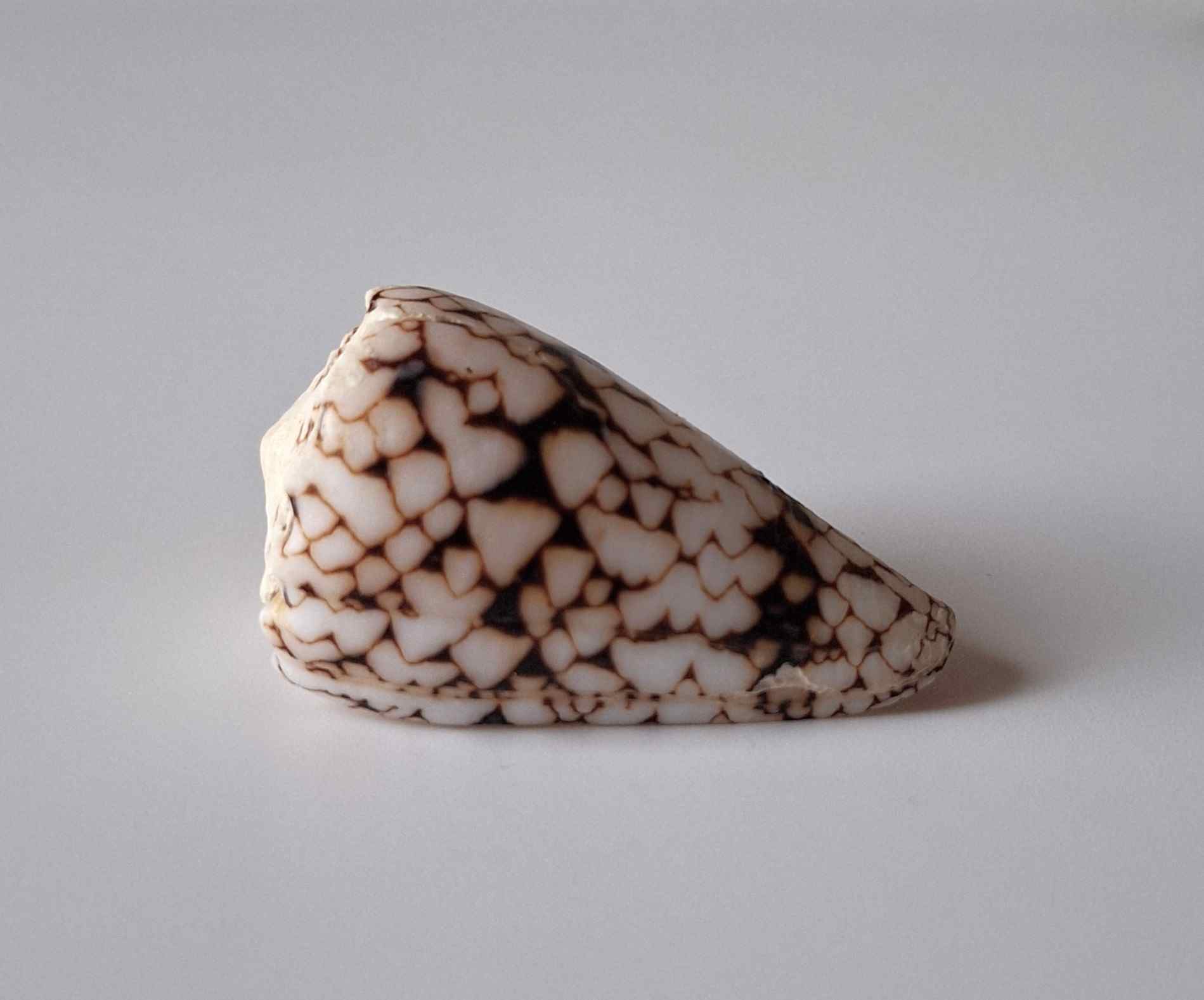 • hezký kus, krásný vzor, dvě zhojené jizvy, drobné štípnutí na okraji, vyloven v hloubce 20 metrů (nice piece, beautiful pattern, two healed scars, minor chip on lip, taken by diving at a depth of 20 meters)