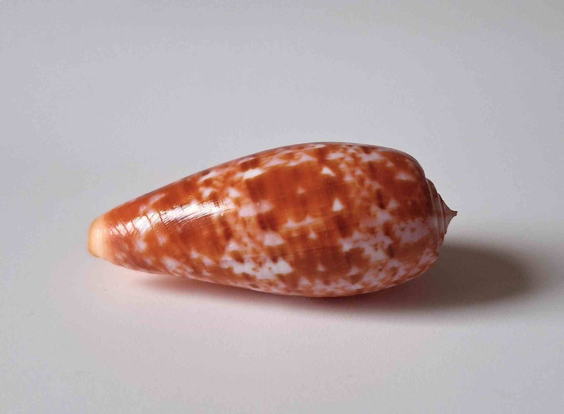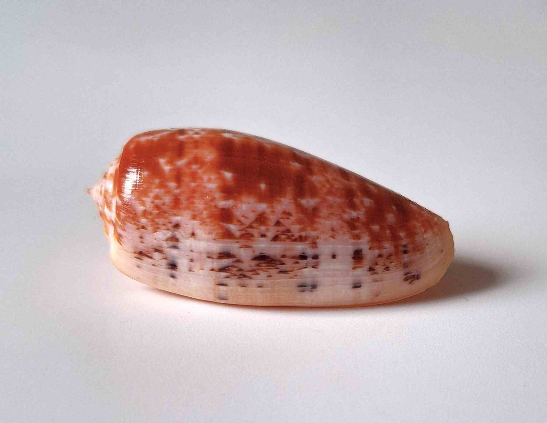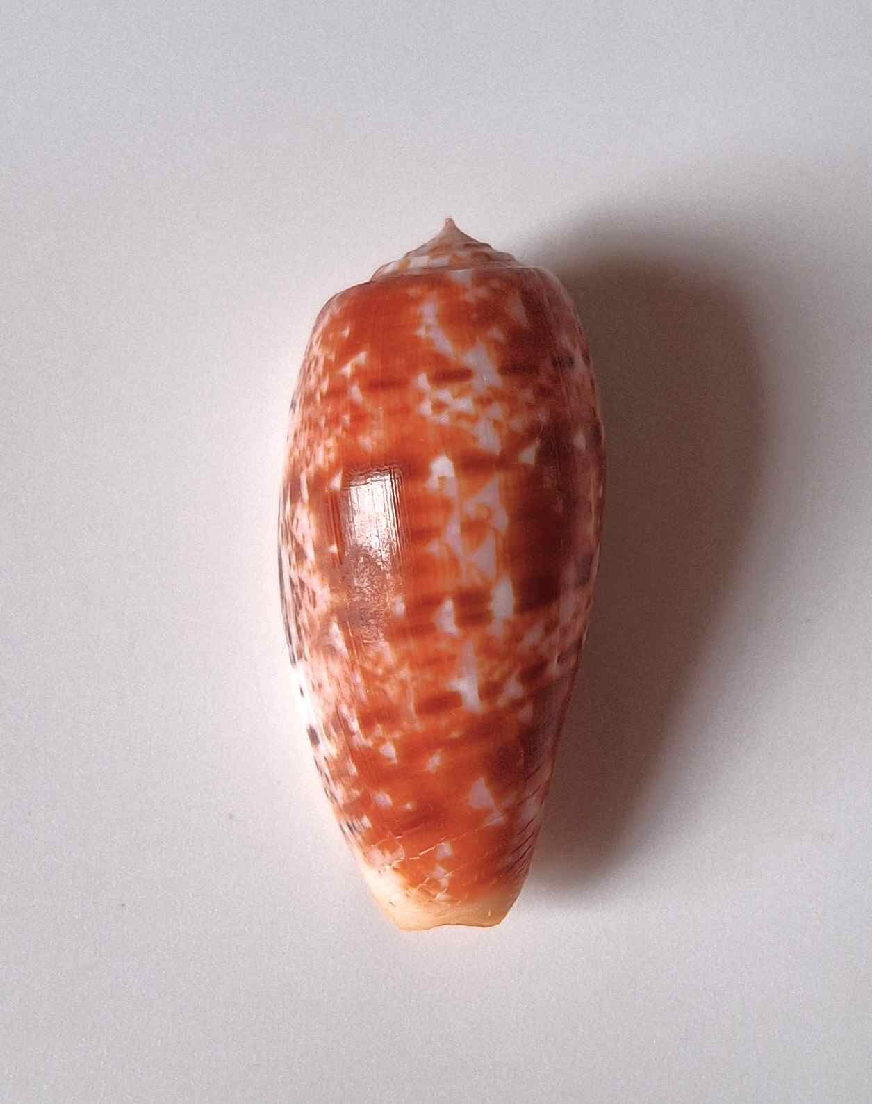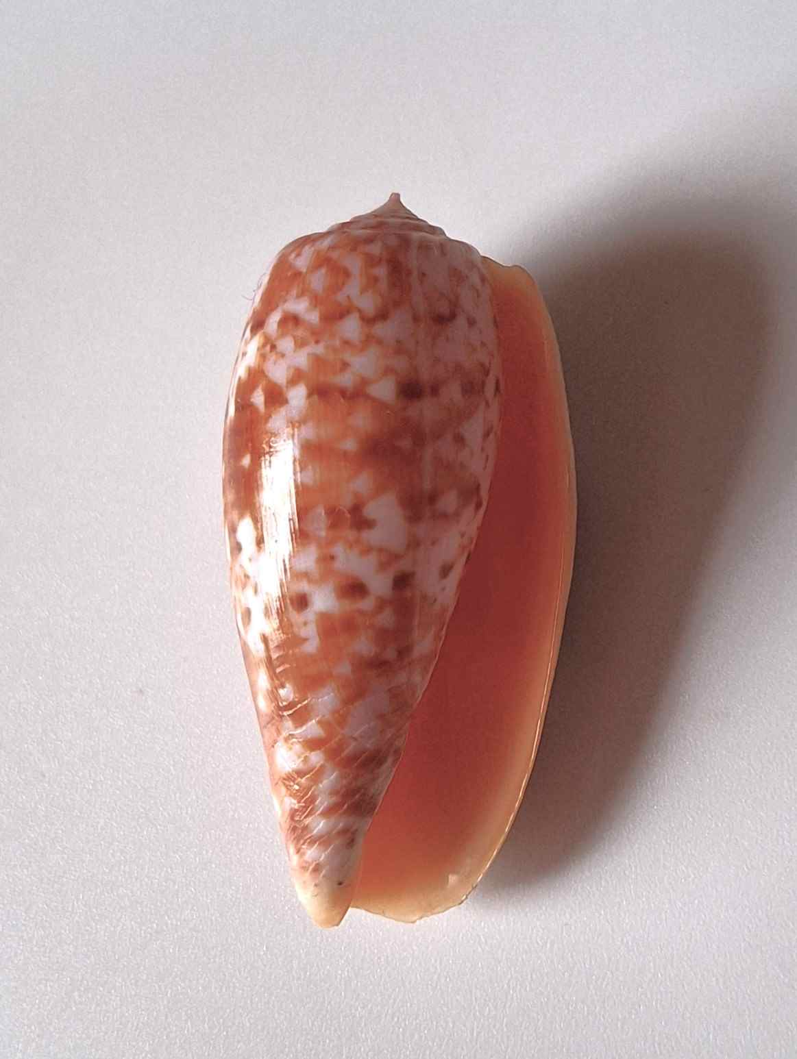 • krásně vybarvený, hezký vzor, maličko štípnutý na okraji, z hloubky 20 metrů (beautiful colored, nice pattern, small chip on lip, from depth of 20 meters)