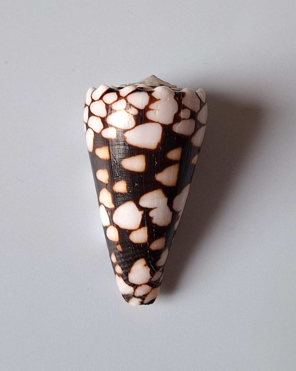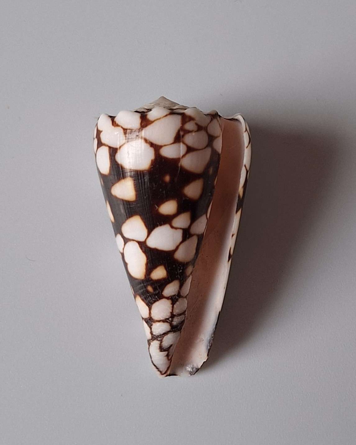 • krásný barevný exemplář, krásný vzor a barva, několik štípnutí na okraji, vyloven v hloubce 20 metrů (beautiful colored specimen, very nice pattern and color, some chips on lip, taken by diving at a depth of 20 meters)