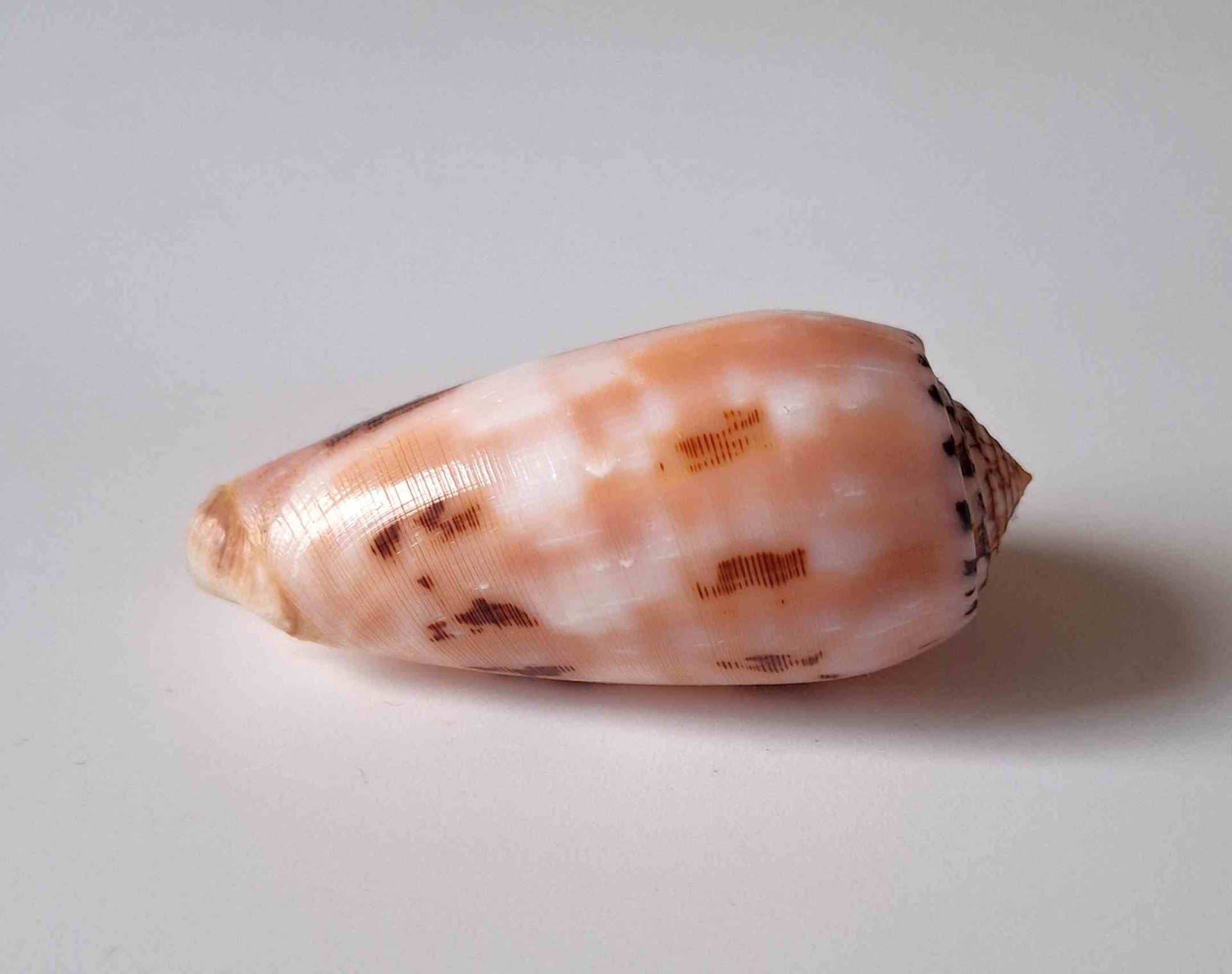 • nádherný vzácný kus, krásný vzor a barva, drobné štípnutí na kanálku, zhojená jizva na boku, vyloven v hloubce 20 metrů (beautiful rare piece, very nice pattern and color, minor chip on canal, healed scar on side, taken by diving at a depth of 20 meters)