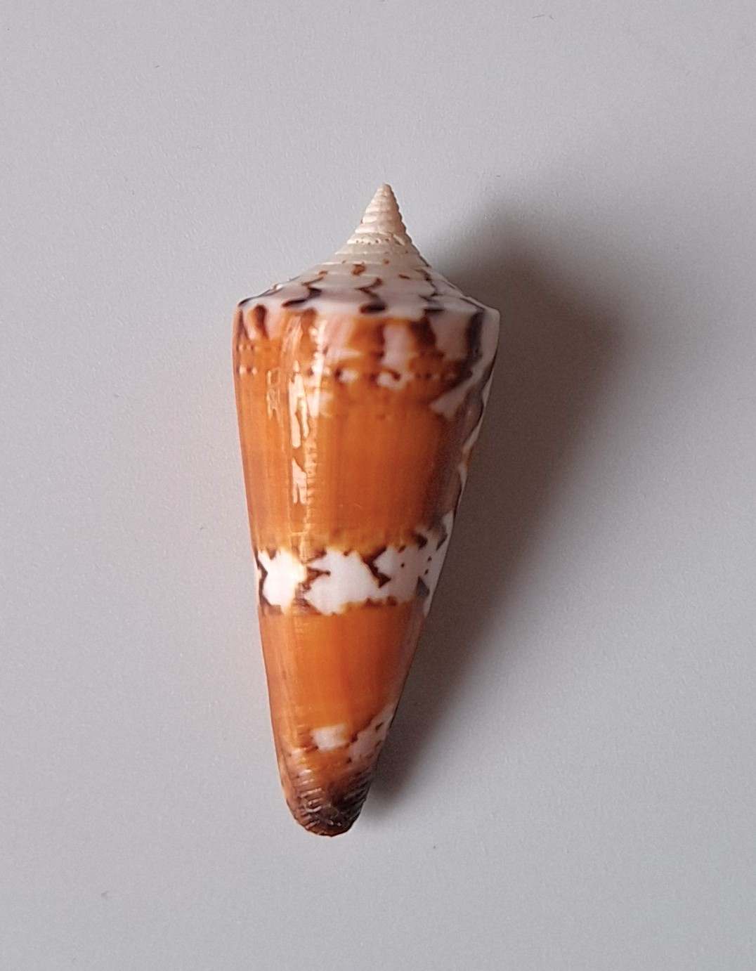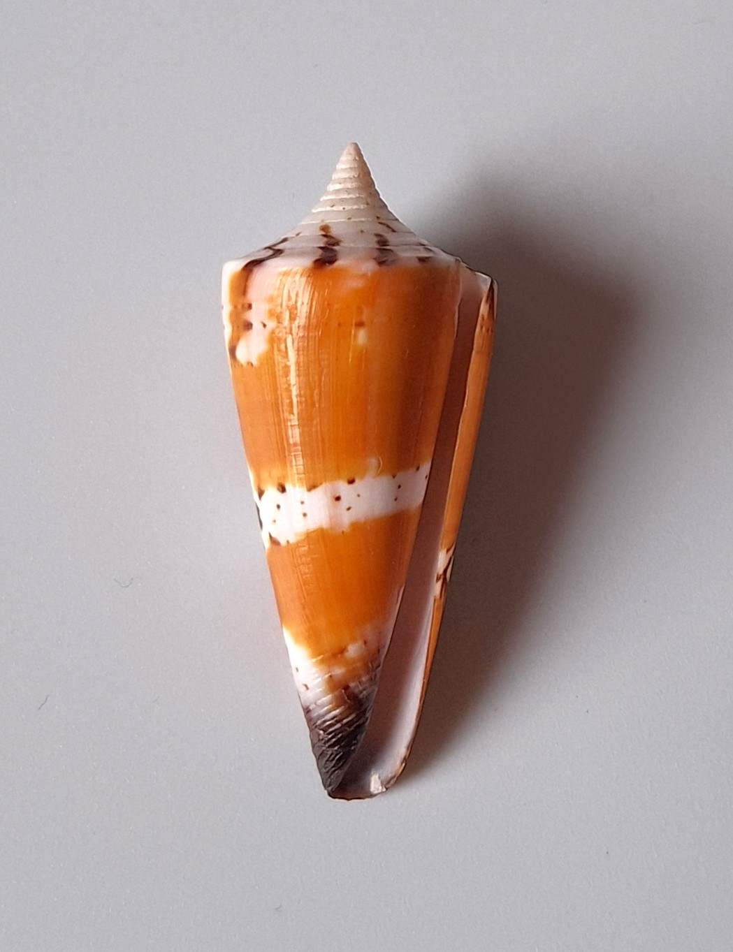 • krásný kus, nádherná barva a vzor, lehce štípnutý okraj, drobná zhojená jizva na horní straně, vyloven v hloubce 10 až 20 metrů (beautiful piece, very nice color and pattern, lightly chip on lip, minor healed scar on dorsum, taken by diving at a depth of 10 to 20 meters)