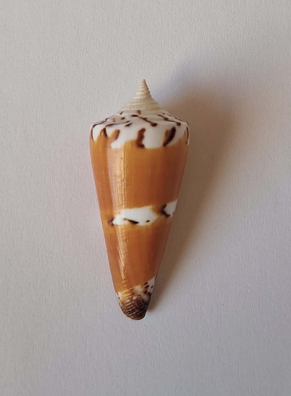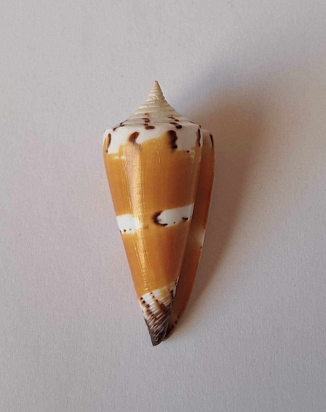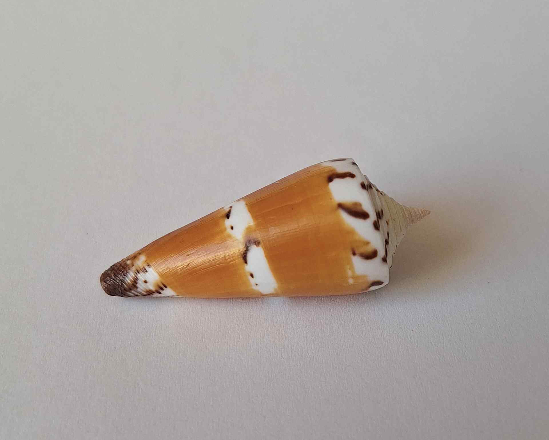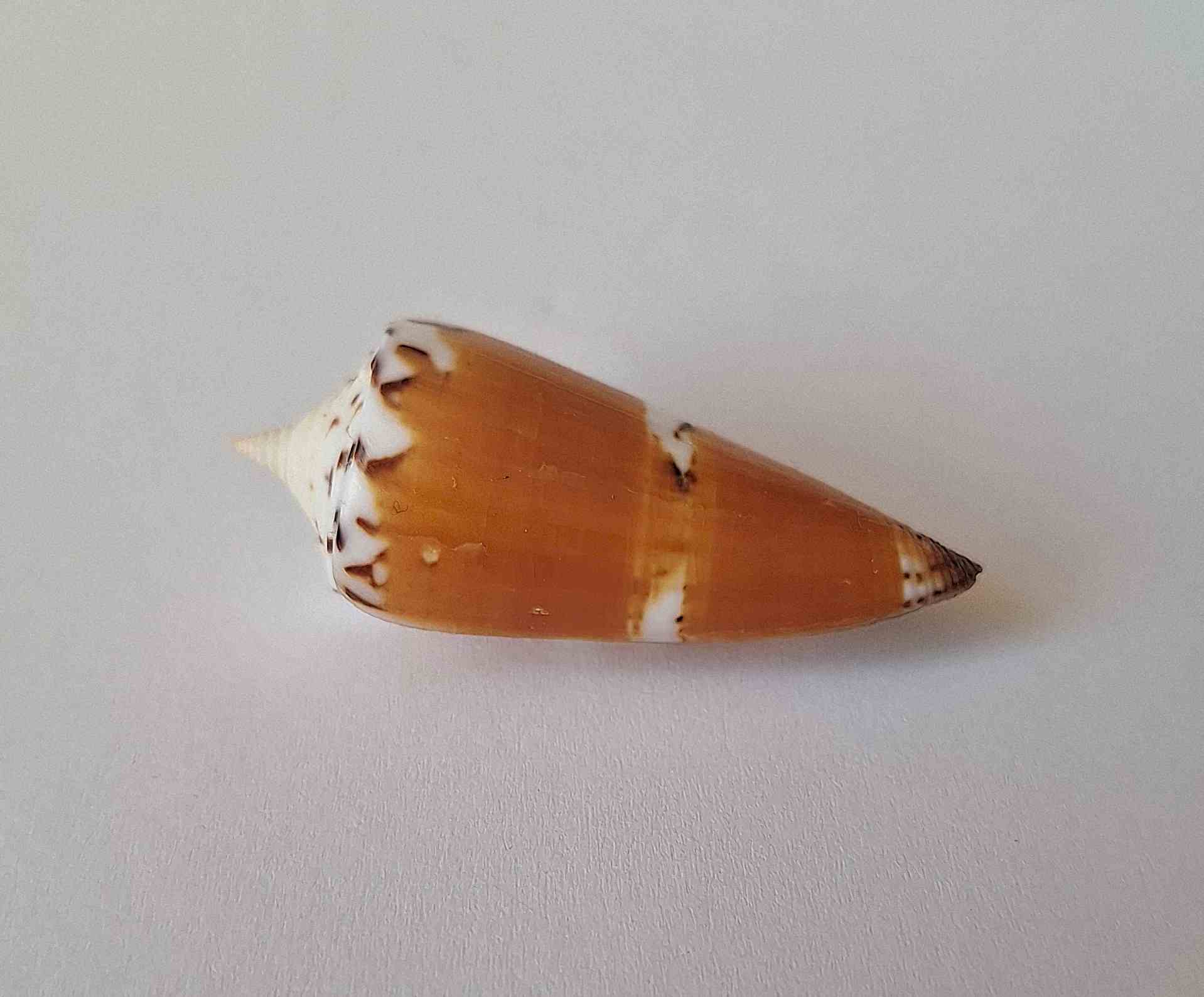 • hezký barevný kus, tmavší hnědo-oranžová barva, hezký vzor, drobné zhojené jizvy, vyloven v hloubce 10 až 20 metrů (nice colored piece, darker brown-orange color, nice pattern, minor healed scars, taken by diving at a depth of 10 to 20 meters)