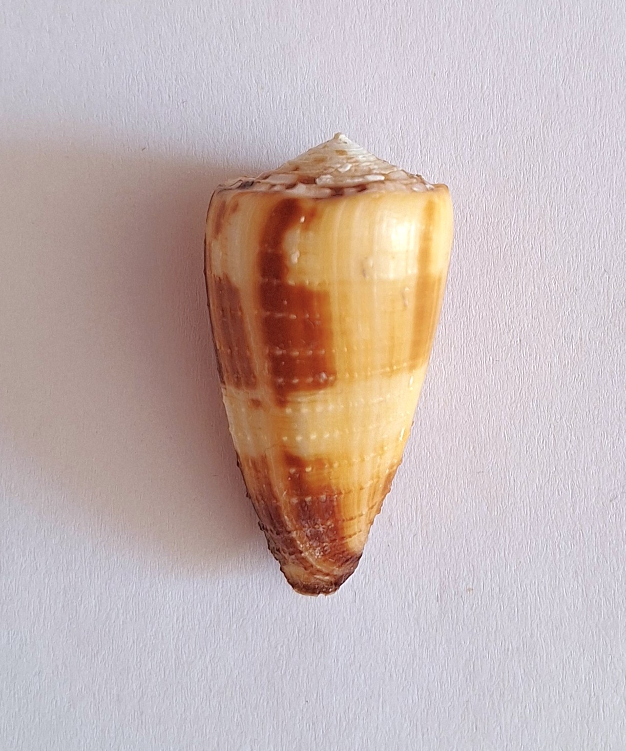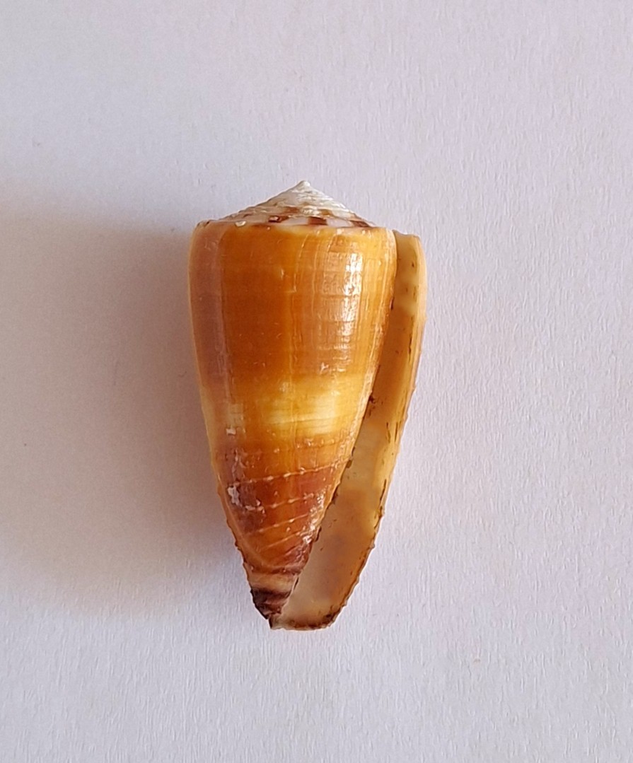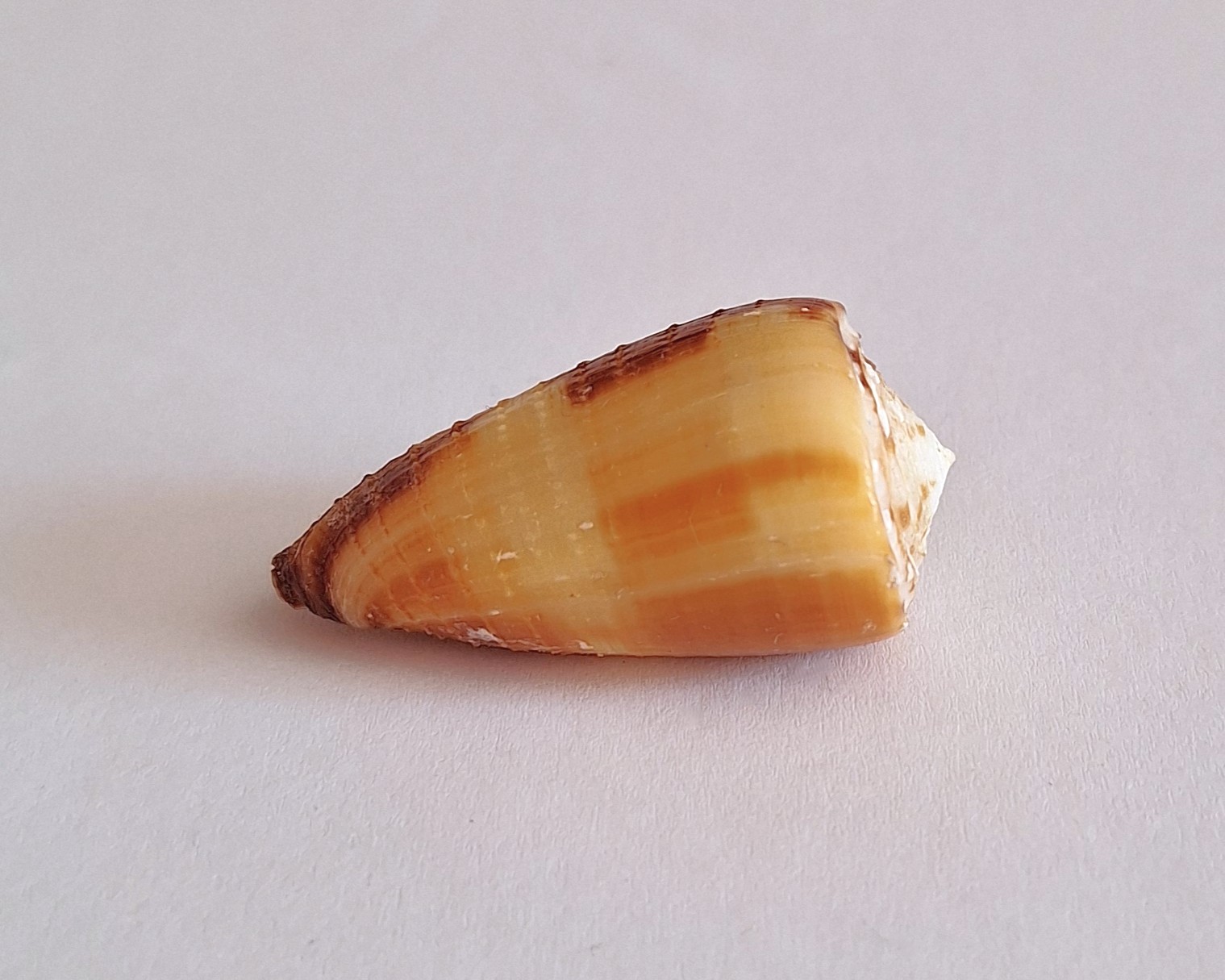 • hezký barevný exemplář, krásný vzor, granulovaný, maličké štípnutí u okraje, z hloubky 20 metrů (beautiful colored specimen, nice pattern, granulated, minor chip on lip, from depth of 20 meters)