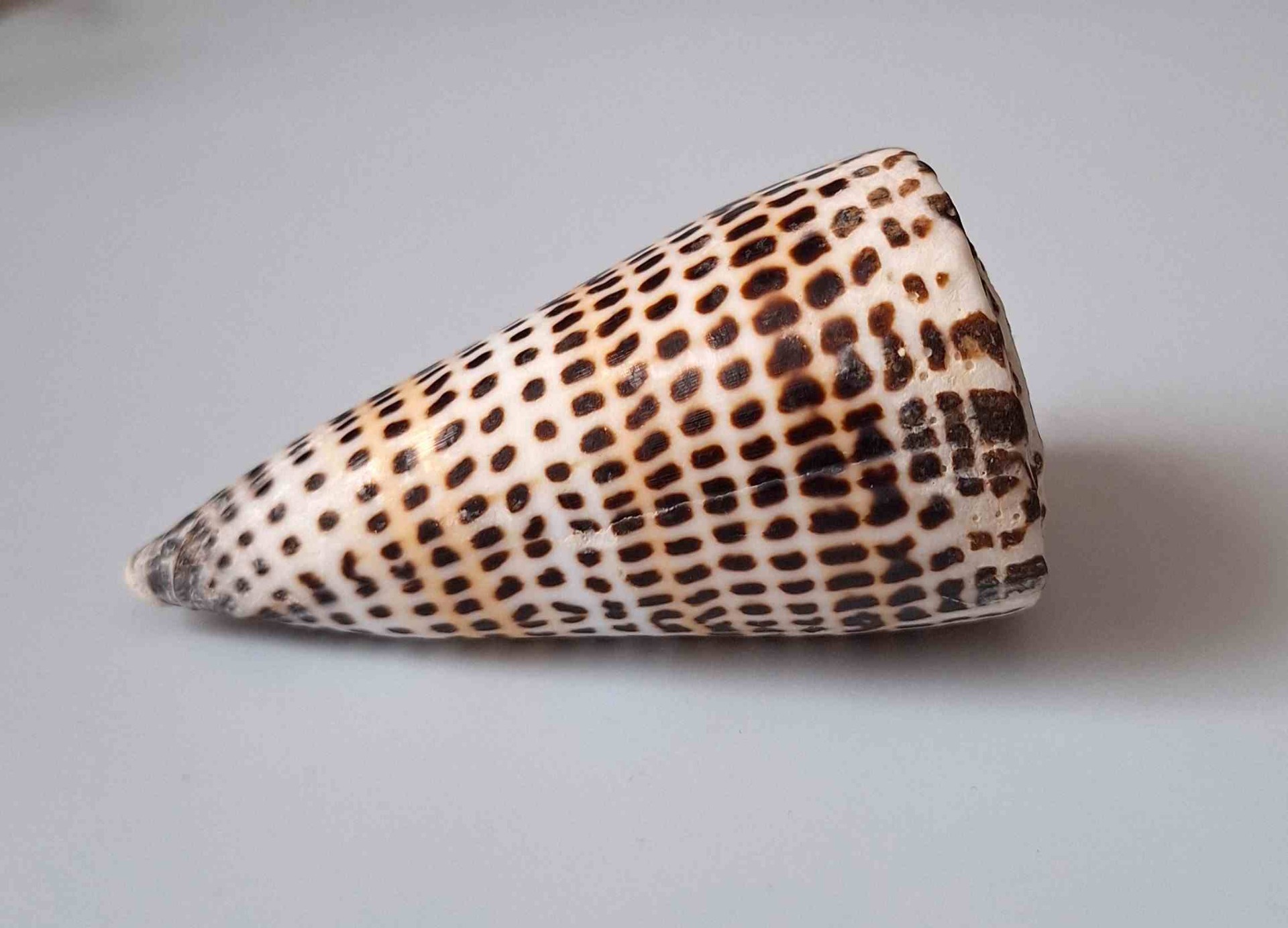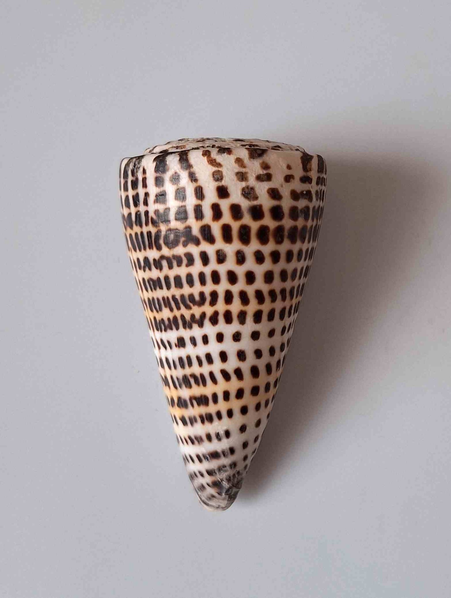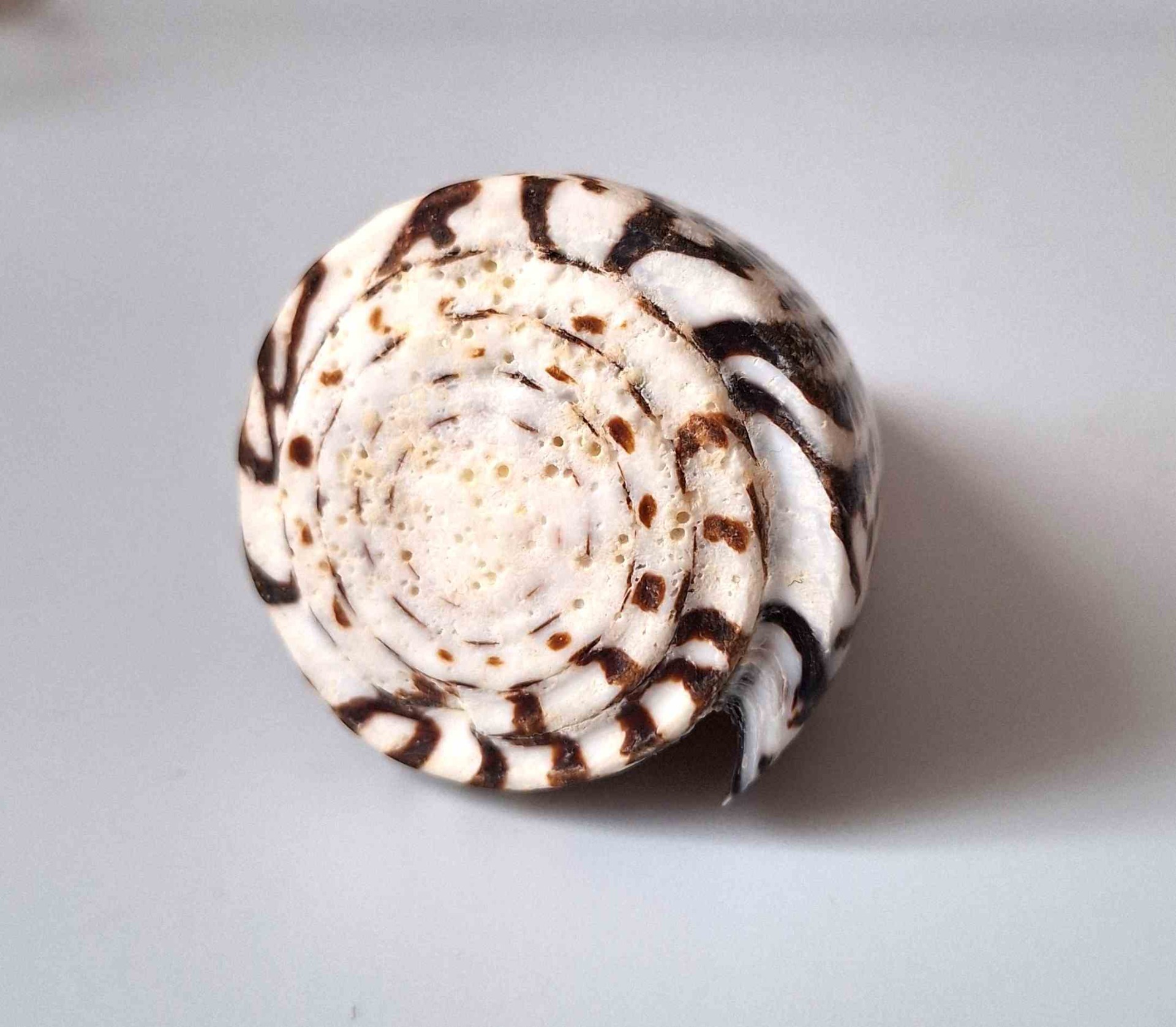 • hezký větší kus, pěkný vzor, několik štípnutí na okraji, špička poničená, z hloubky 5 až 20 metrů (nice bigger piece, nice pattern, some chips on lip, damaged apex, from depth of 5 to 20 meters)