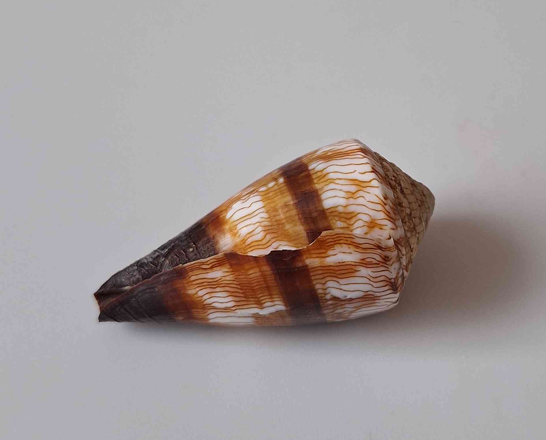 • krásný vzor a barva, dvě velké štípnutí na okraji, zhojená jizva, z hloubky 20 metrů (beautiful pattern and color, two bigger chips, healed scar, from depth of 20 meters)