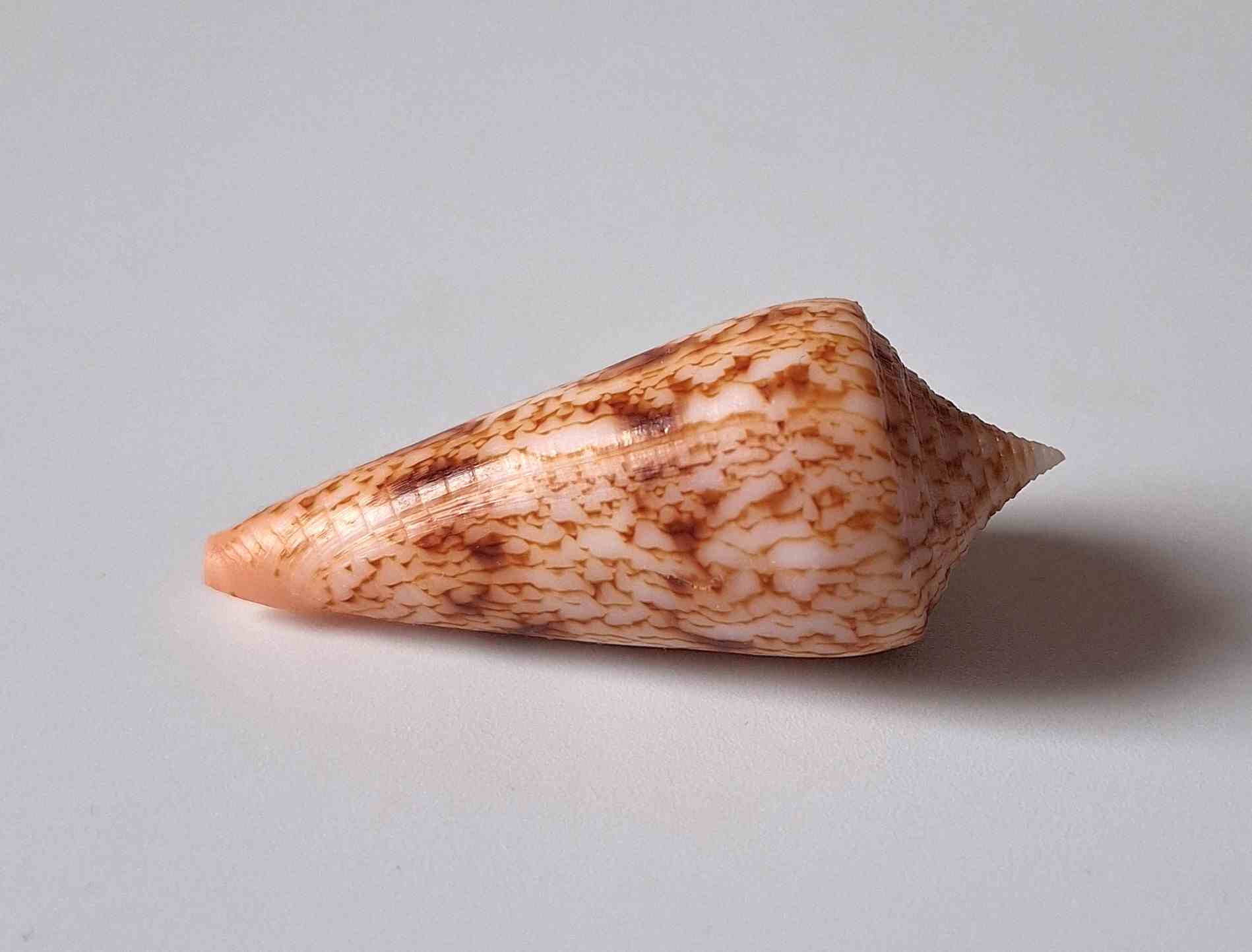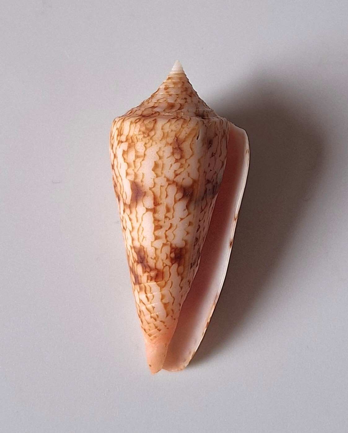 • krásný kus, hezká barva a vzor, neběžný, micro štípnutí na okraji, z hloubky 150 metrů (beautiful piece, nice color and pattern, uncommon, micro chip on lip, from depth of 150 meters)