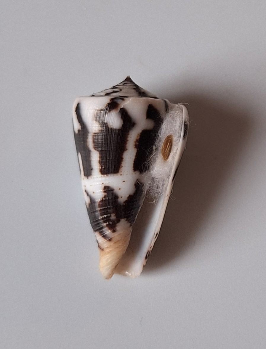 • nádherný vzácný kus s víčkem, hezká tmavá barva, pouze drobná nedokonalosti, drobná zhojená jizva, vyloven v hloubce 5 až 20 metrů (beautiful rare piece with operculum, nice dark color, only minor imperfection, little healed scar, taken by diving at a depth of 5 to 20 meters)