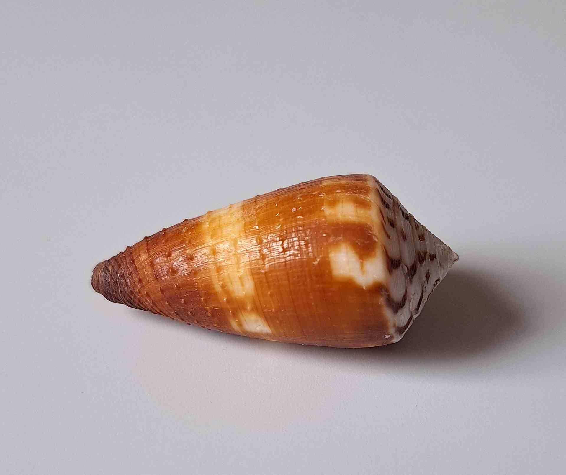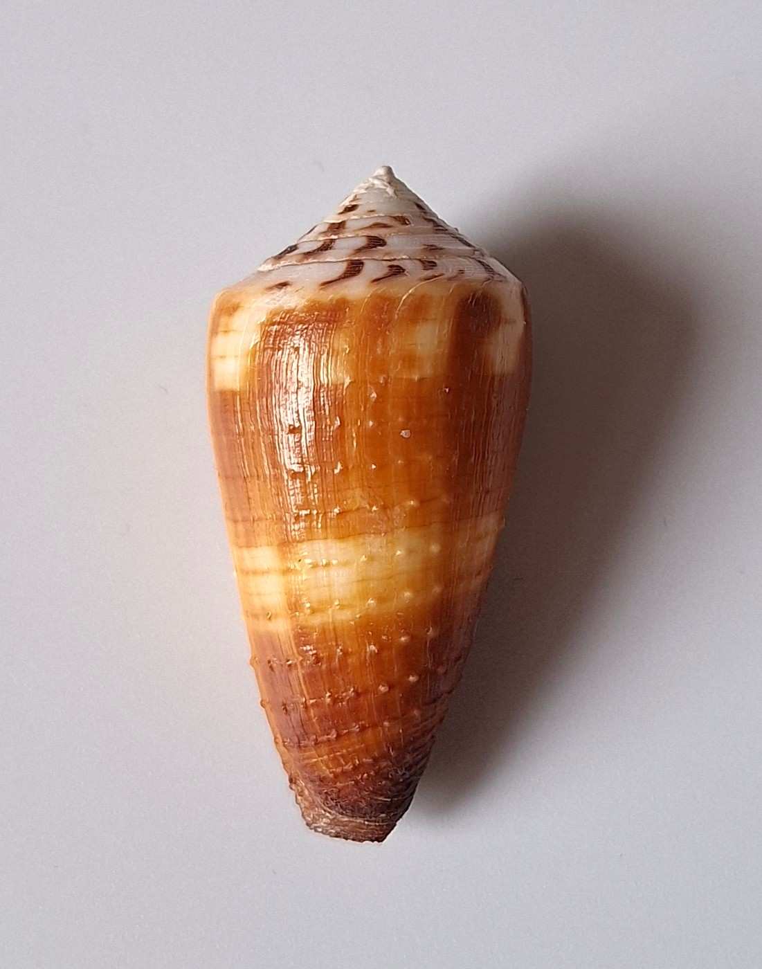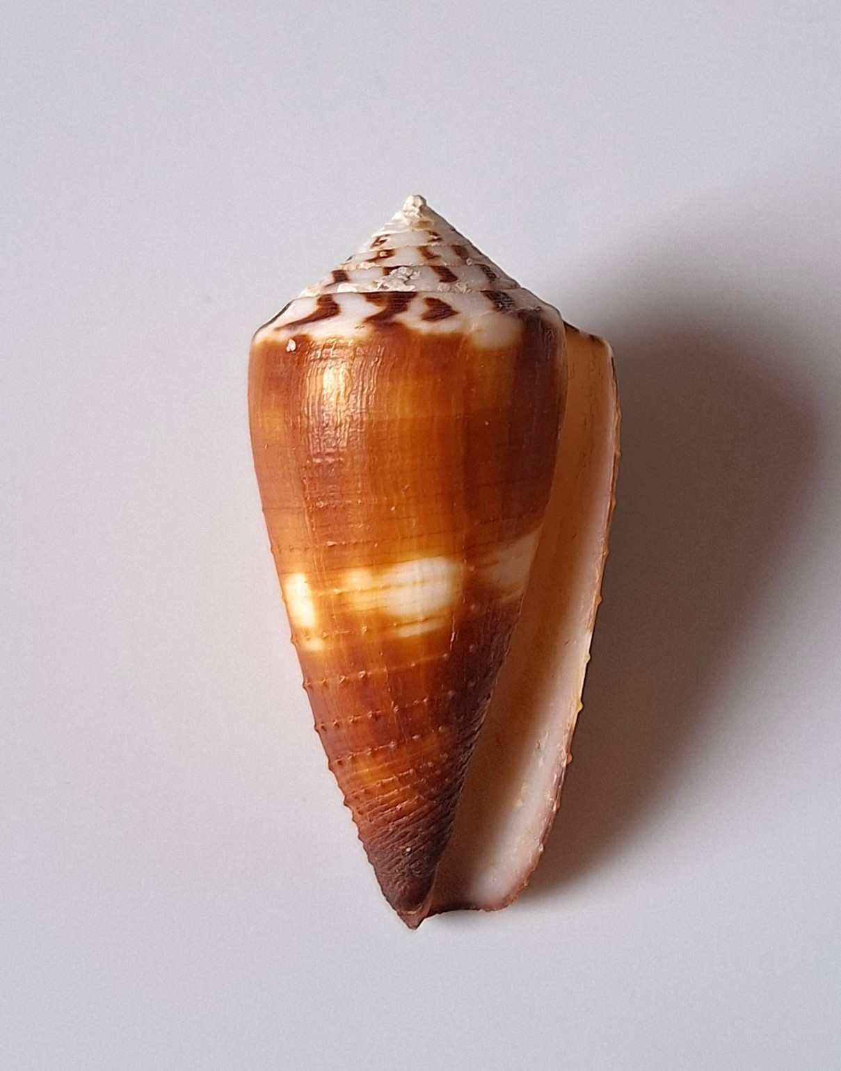• krásná barva, malé štípnutí na okraji, částečně granulovaný, z hloubky 20 metrů (beautiful color, minor chip on lip, partially granulated, from depth of 20 meters)