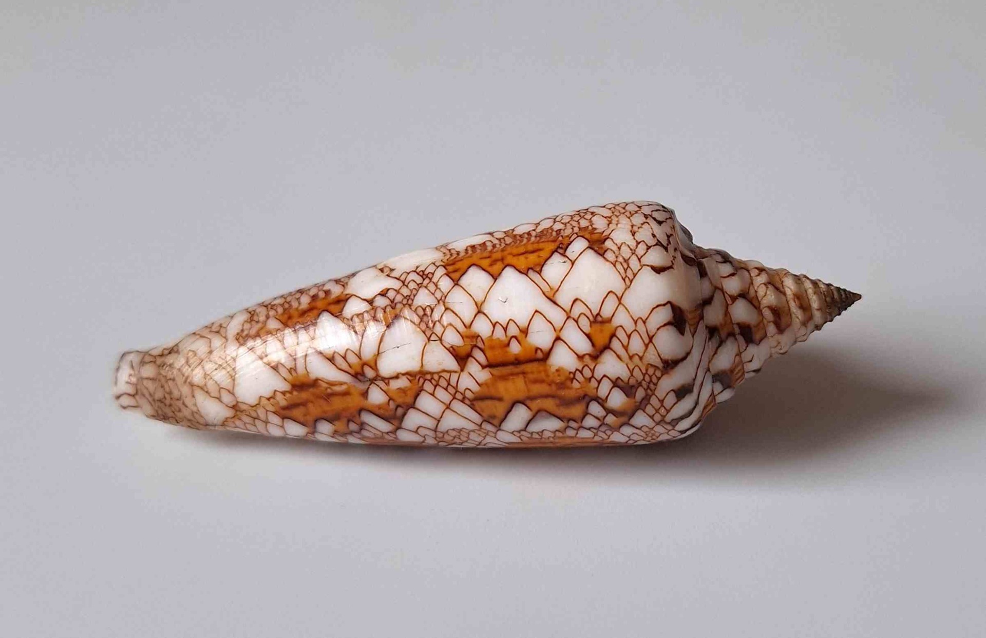 • krásný vzácný exemplář, krásná barva a vzor, pouze růstové linie, drobné nedokonalosti, okraj trošku prohnutý, vyloven v hloubce 5 až 20 metrů (beautiful rare specimen, very nice color and pattern, only growth line, minor imperfections, lip slightly curved, taken by diving at a depth of 5 to 20 meters)