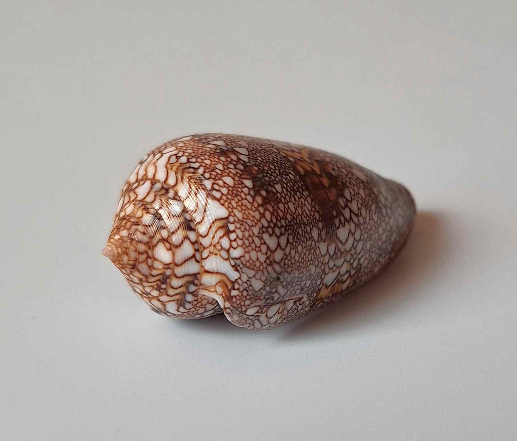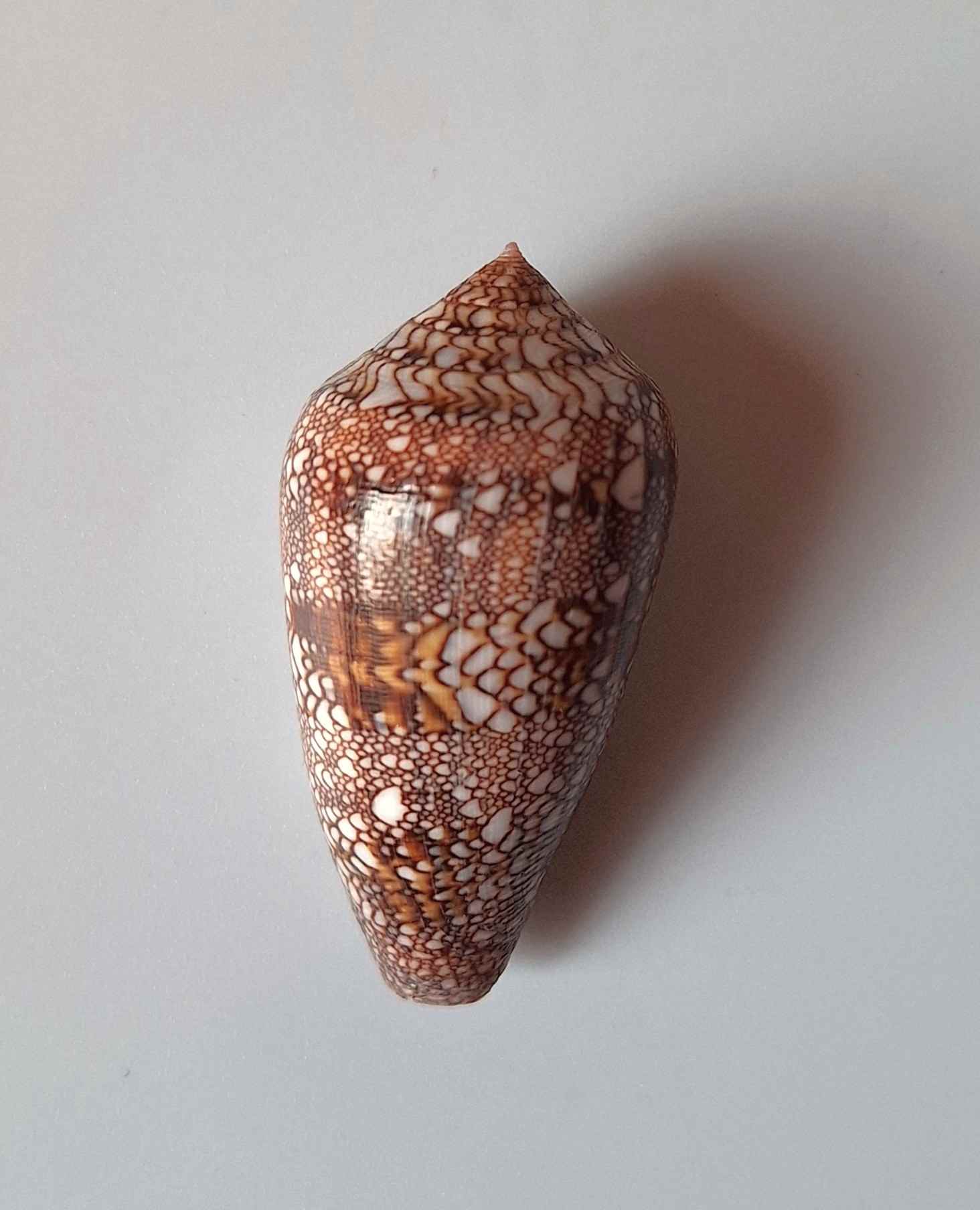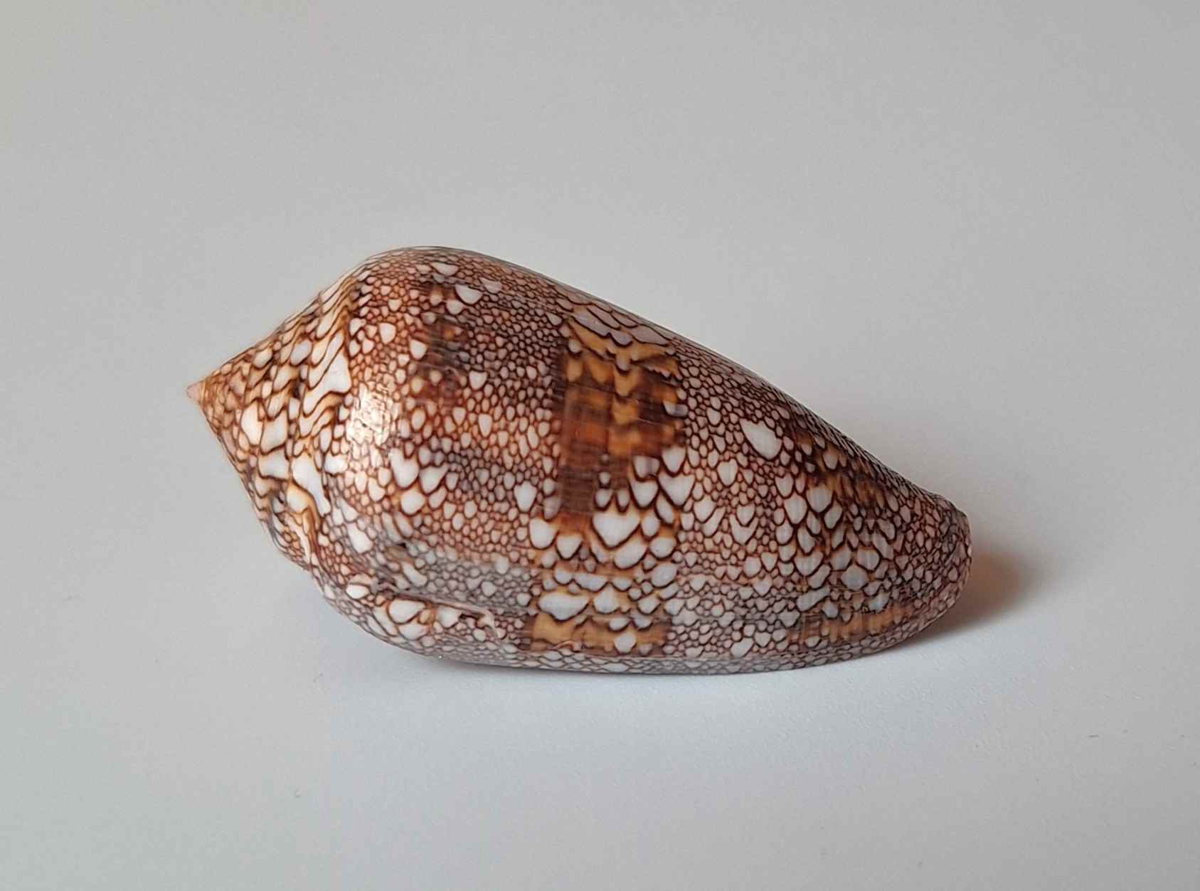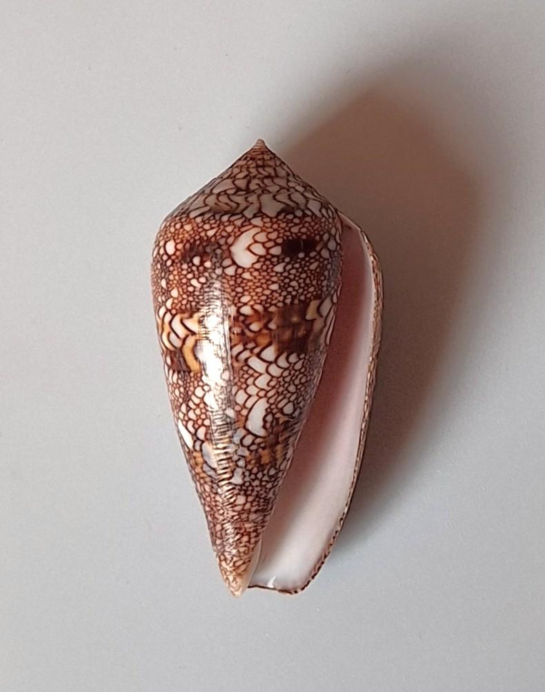 • nádherný exemplář, krásné tmavé barvy a nádherný vzor, endemický, nepatrná zhojená jizva v blízkosti okraje, z hloubky 2 až 5 metrů pod skalami (beautiful specimen, beautiful dark colors and pattern, endemic, slightly healed scar near the lip, live taken at 2-5 meters under rocks)