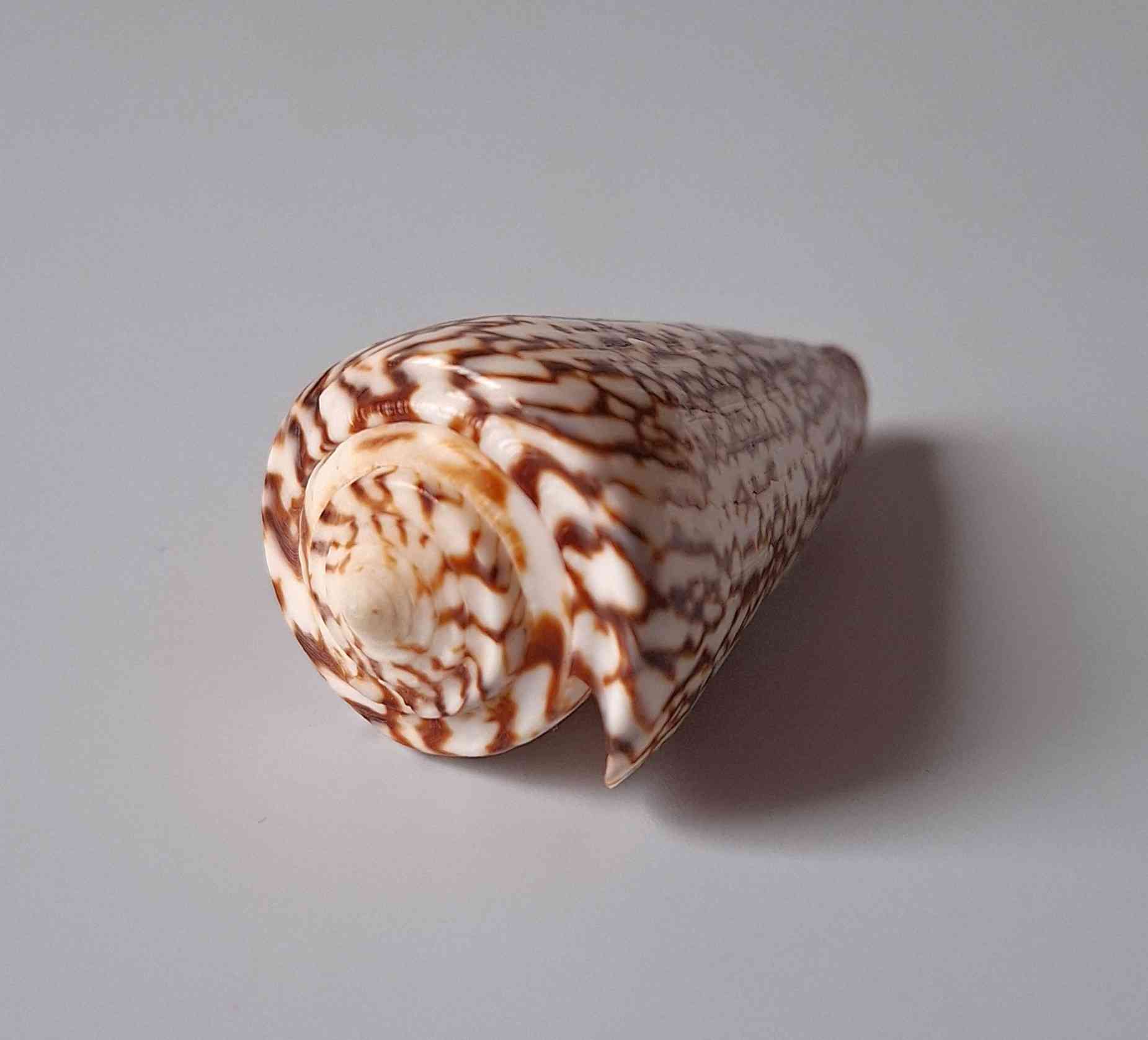 • moc hezký exemplář, krásná hnědá barva a vzor, část okraje zabroušen, drobná zhojená jizva (very nice specimen, beautiful brown color and pattern, partly lip abrazed, healed scar)