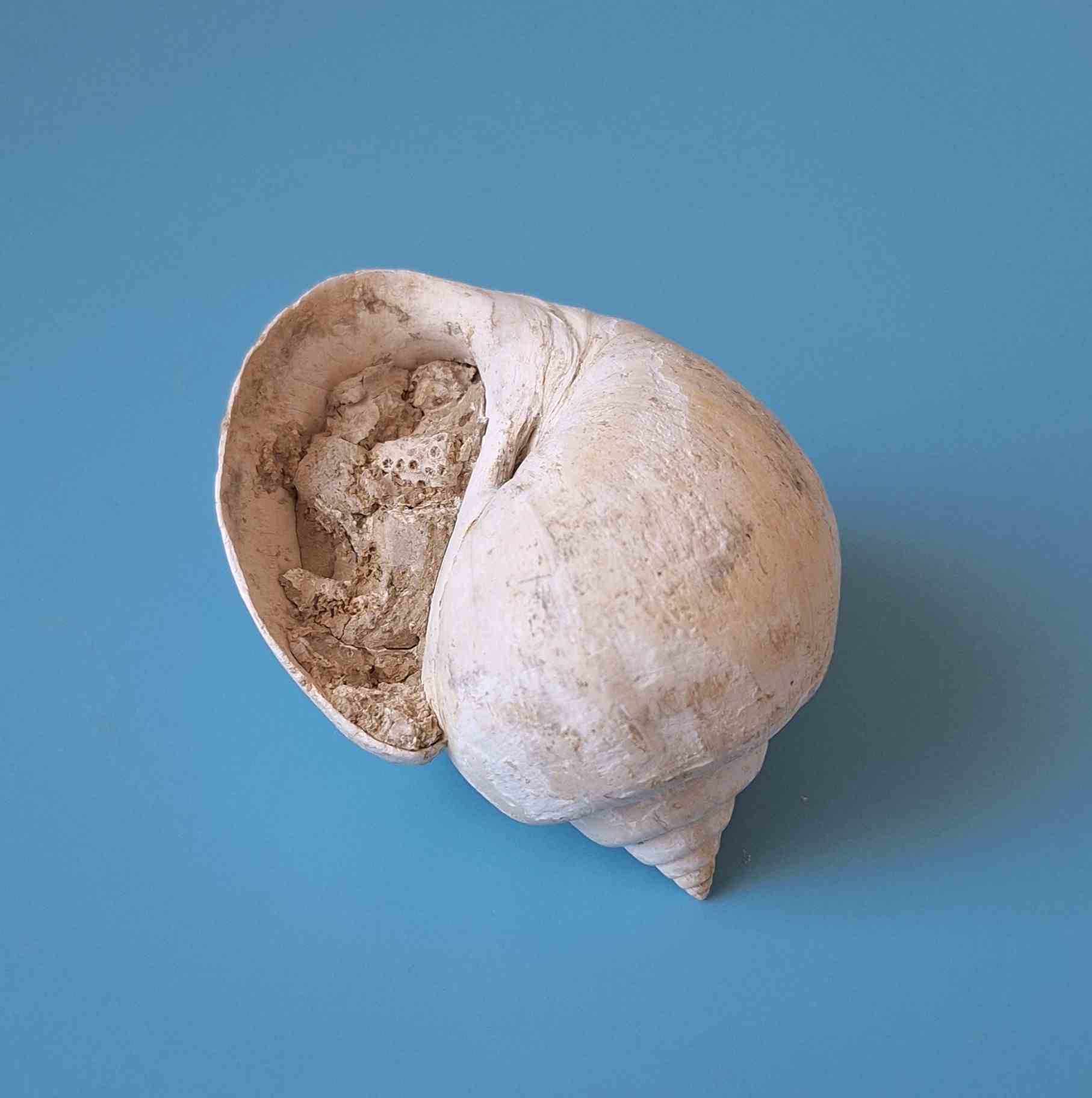 • fosilní šnečí ulita, vyhynulý druh, znám pouze z fosilií, těžký kus (fossil snail shell, now extinct, it is known only from fossils, heavy piece)