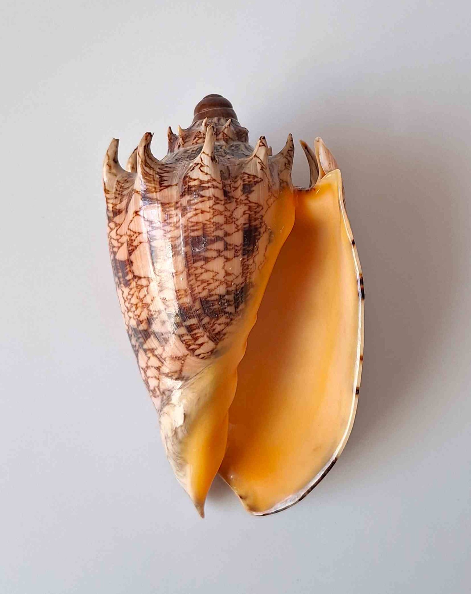 • nádherný velký exemplář, krásný vzor a barva, drobné štípnutí na některých trnech, krásně oranžová barva uvnitř, drobné nedokonalosti (beautiful big specimen, very nice pattern and color, minor chip on some thorns, beautiful orange color inside, minor imperfections)