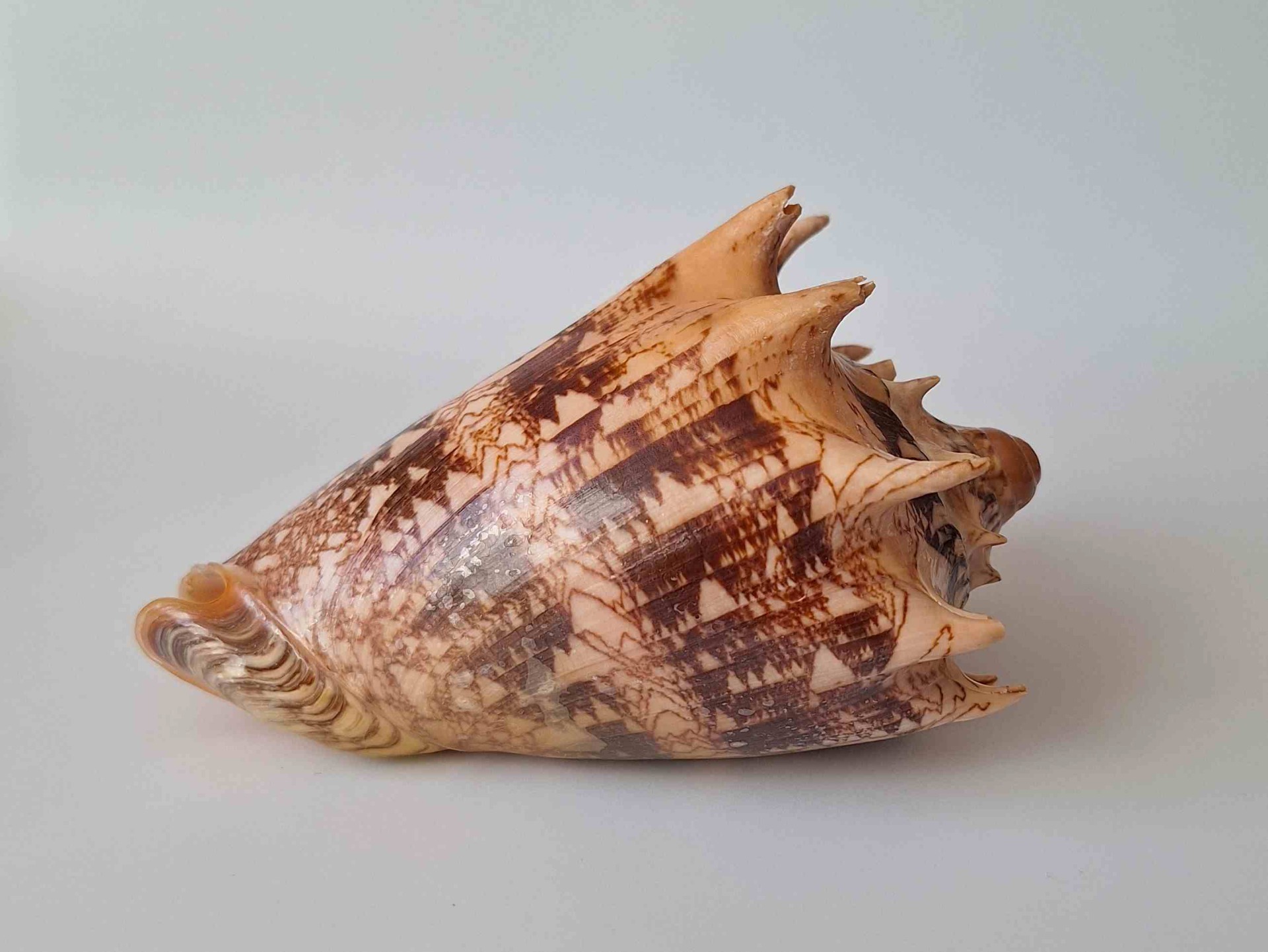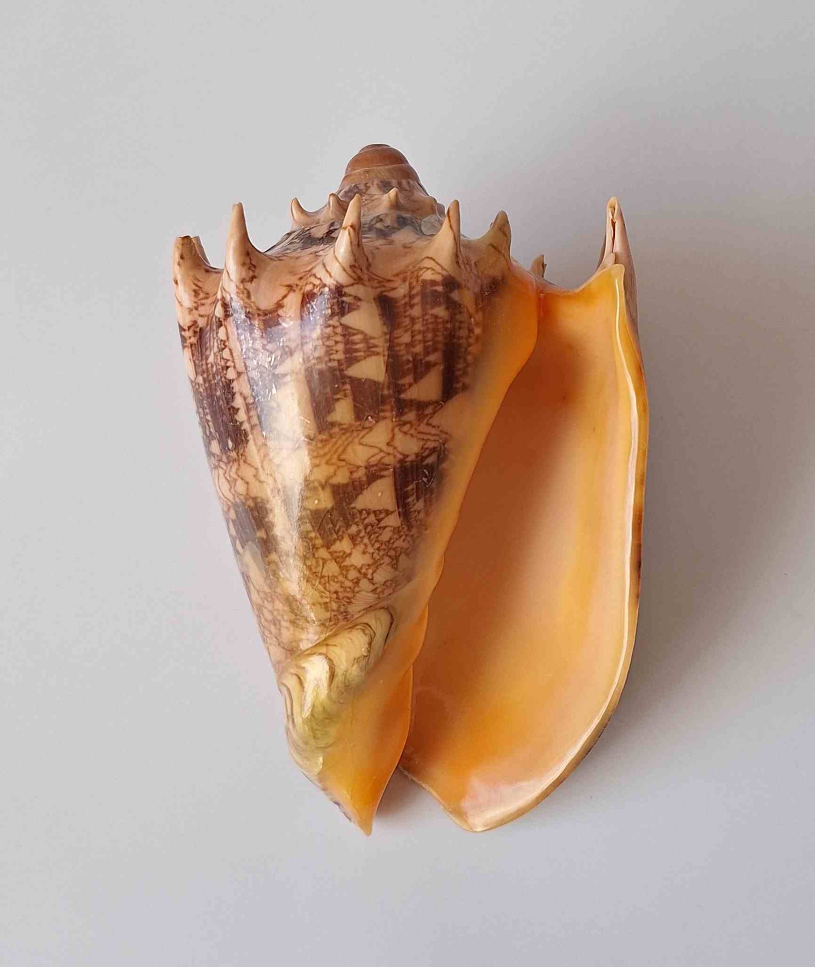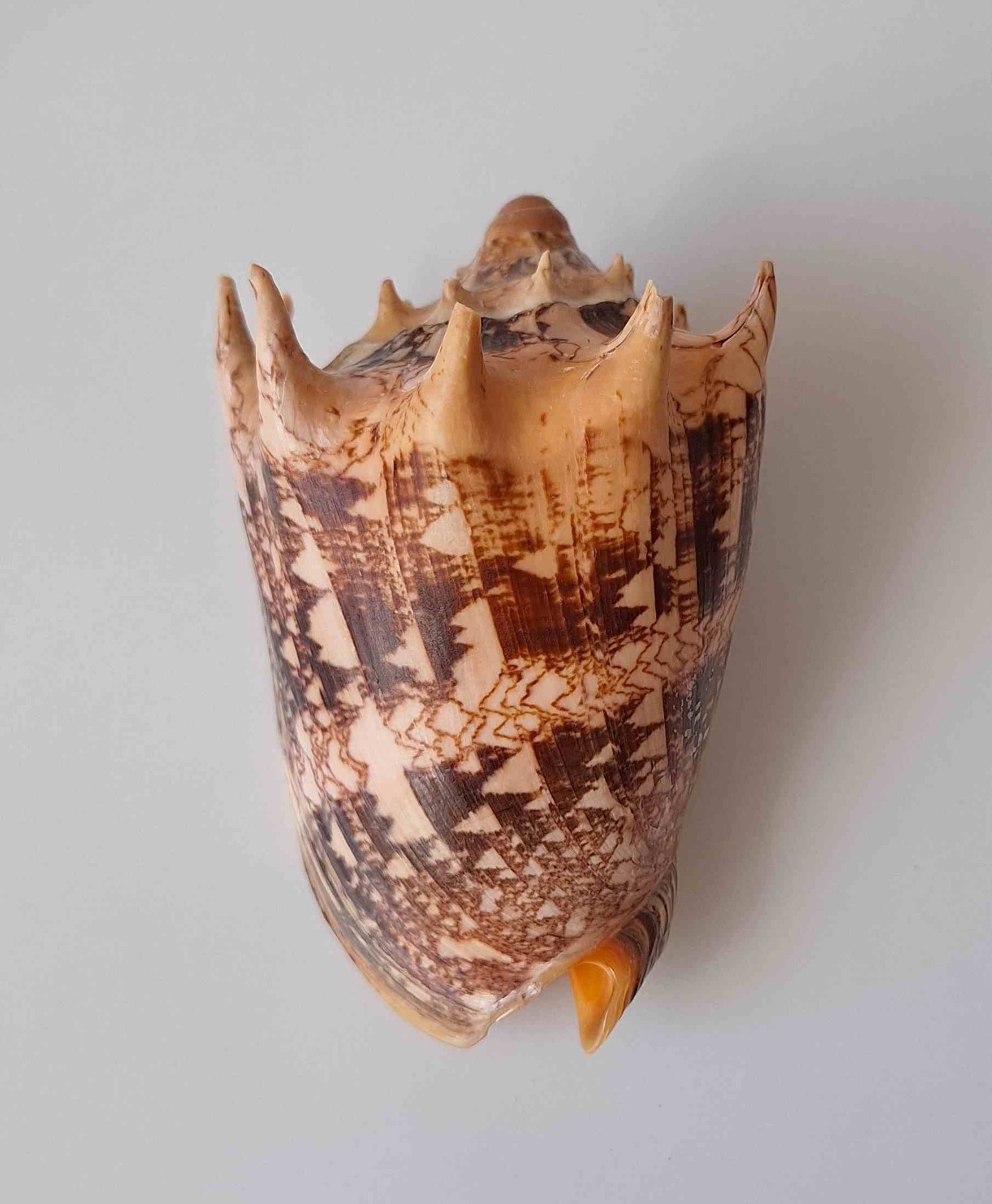 • nádherný velký exemplář, krásný vzor a barva, některé trny poškozeny, krásně oranžová barva uvnitř, štípnutý kanálek (beautiful big specimen, very nice pattern and color, some thorns damaged, beautiful orange color inside, chip on canal)