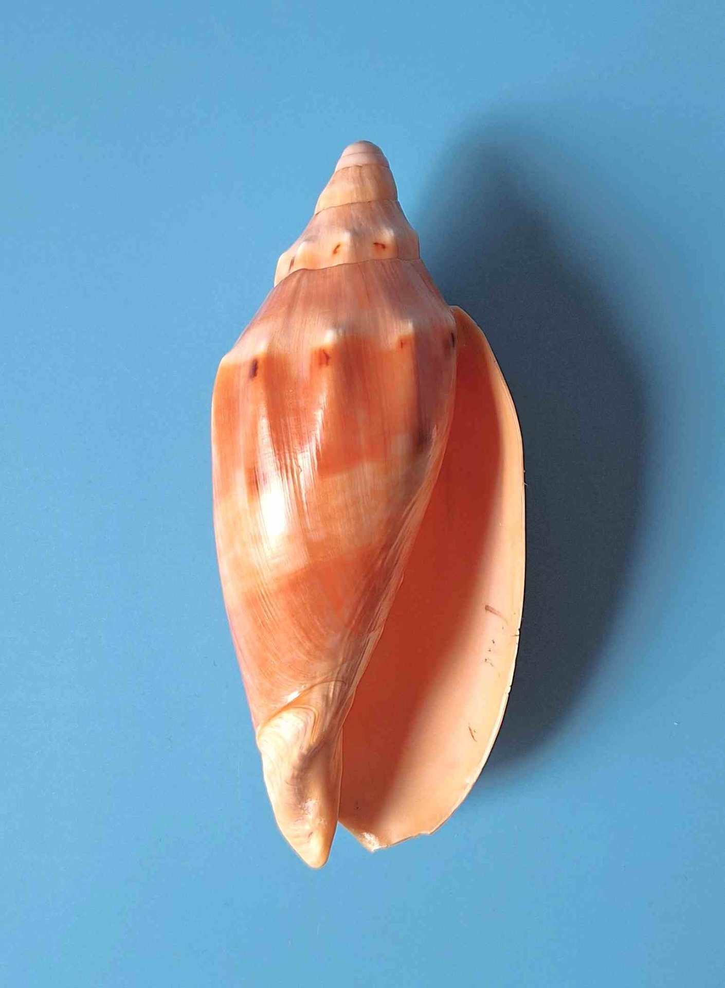 • velký barevný exemplář, pěkný vzor, jizva na jednom boku, poškození na konci okraje (big colored specimen, nice pattern, scar on one side, damaged on end of lip)