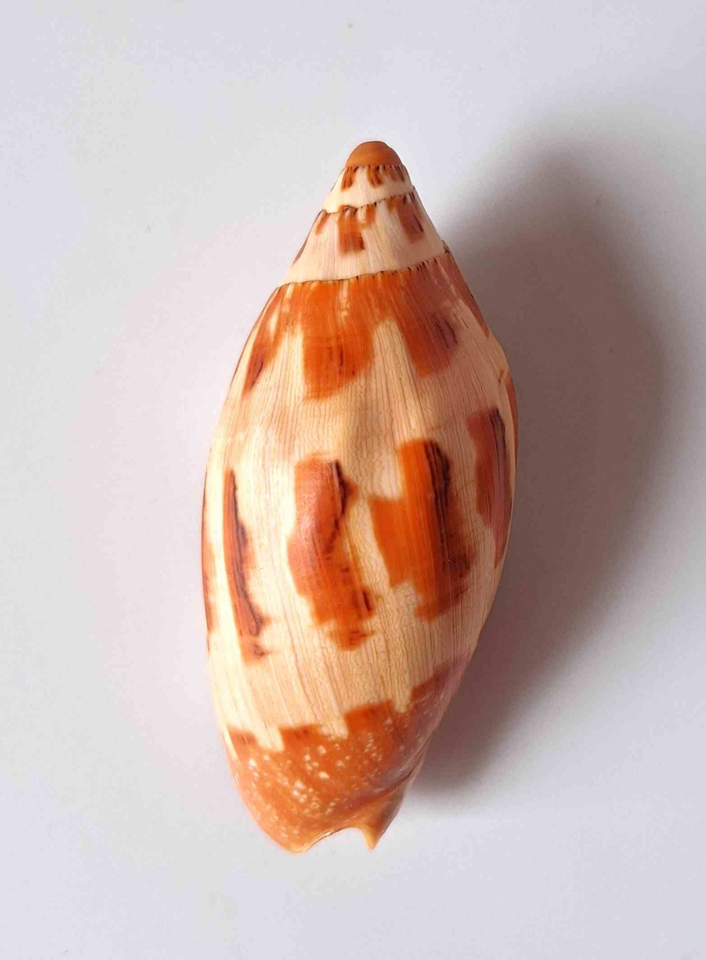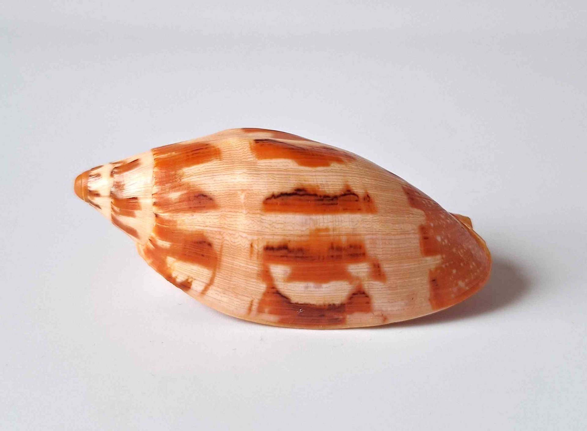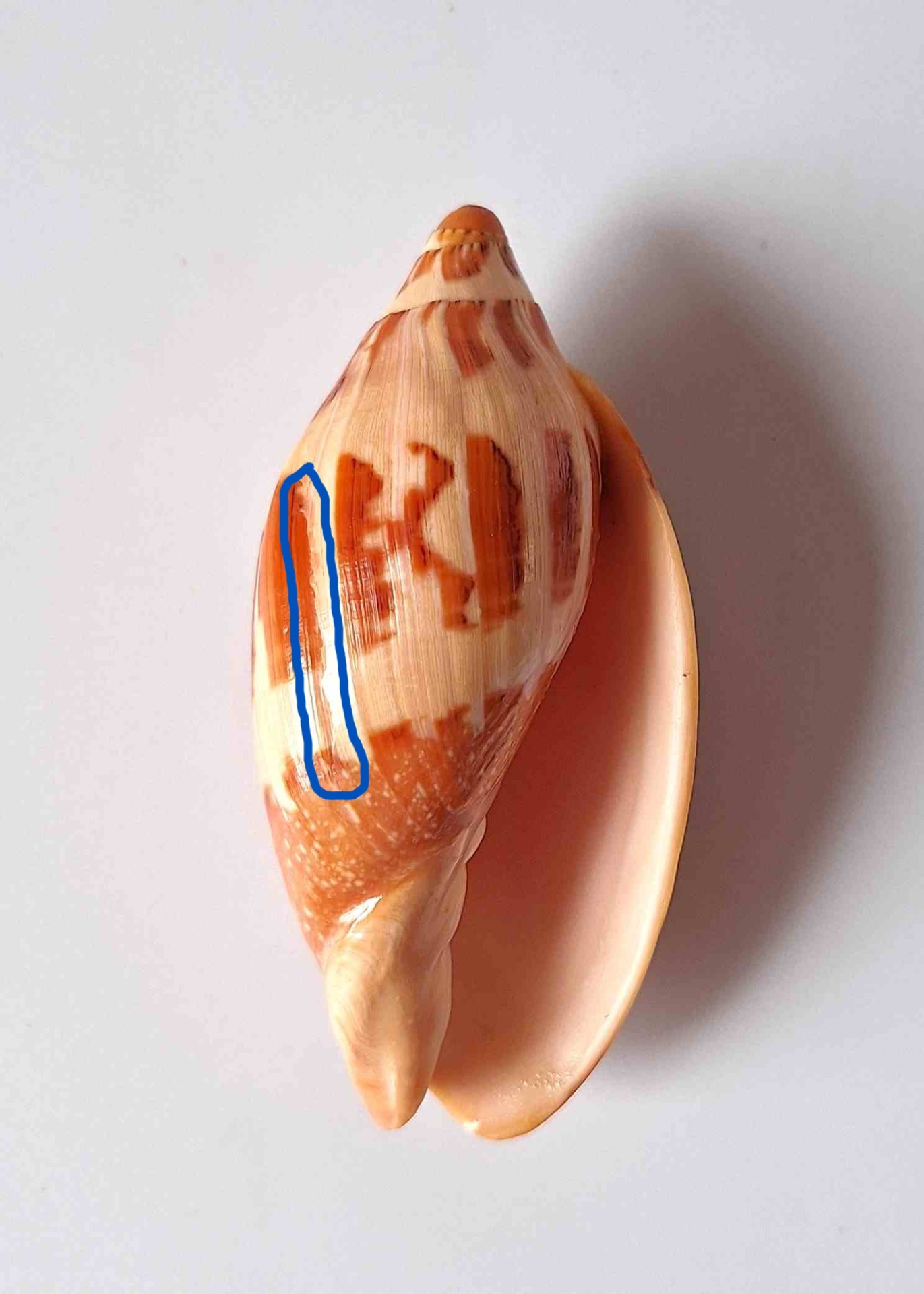 • moc hezký exemplář vzácného druhu, těžko se získává v dnešní době, hezká oranžovo-hnědá barva, nádherný vzor, jizva na spodní straně, z hloubky 12 metrů (very nice specimen of rare specie, very hard to get nowdays, nice orange-brown color, very nice pattern, scar on backside,  live taken from 12 m)