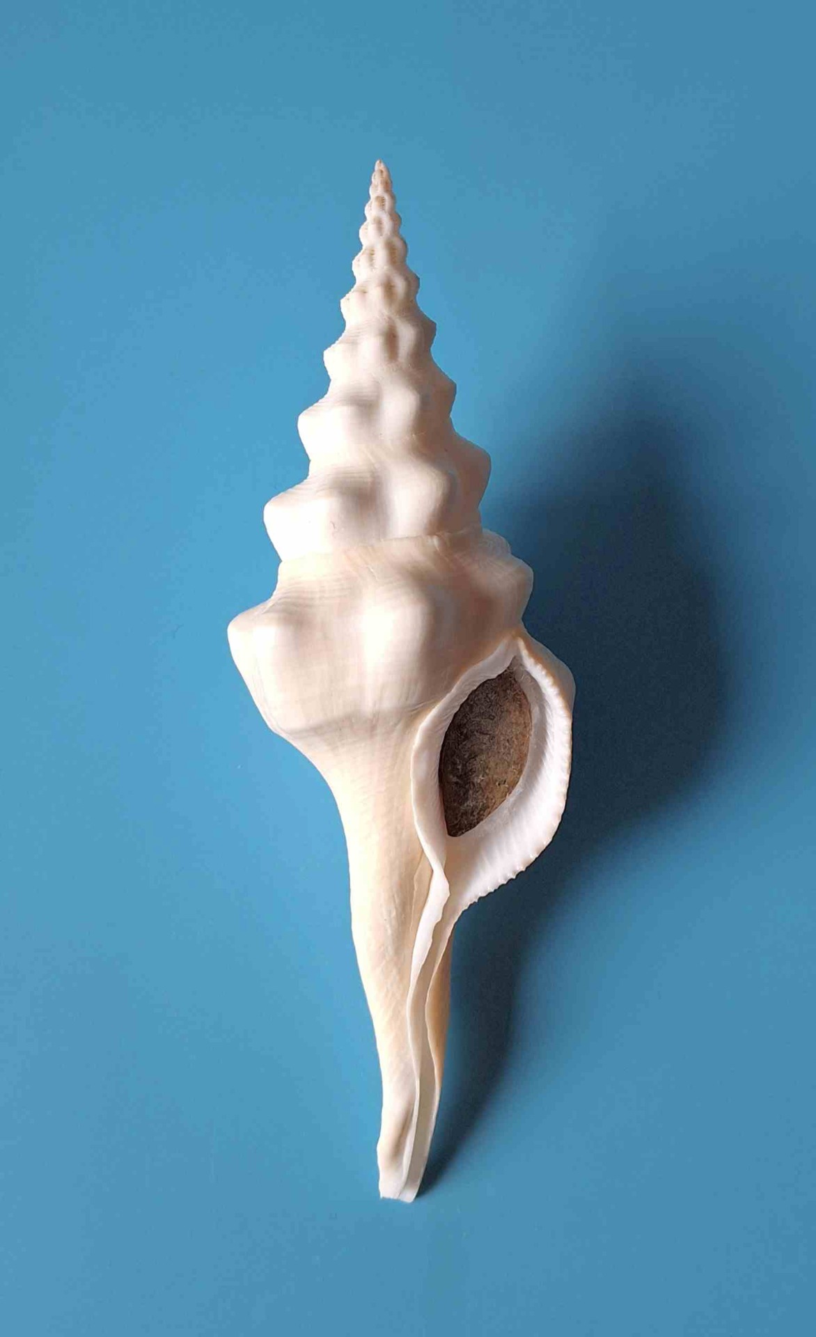 • nádherný velký kus s víčkem, krásná světle krémová barva, lehce štípnutý kanálek, dvě zhojené jizvy, ale přesto stále krásný kus, z hloubky 20 metrů (beautiful big piece with operculum, beautiful light creamy color, minor chip on canal, two healed scars but still very nice piece, from depth of 20 meters)