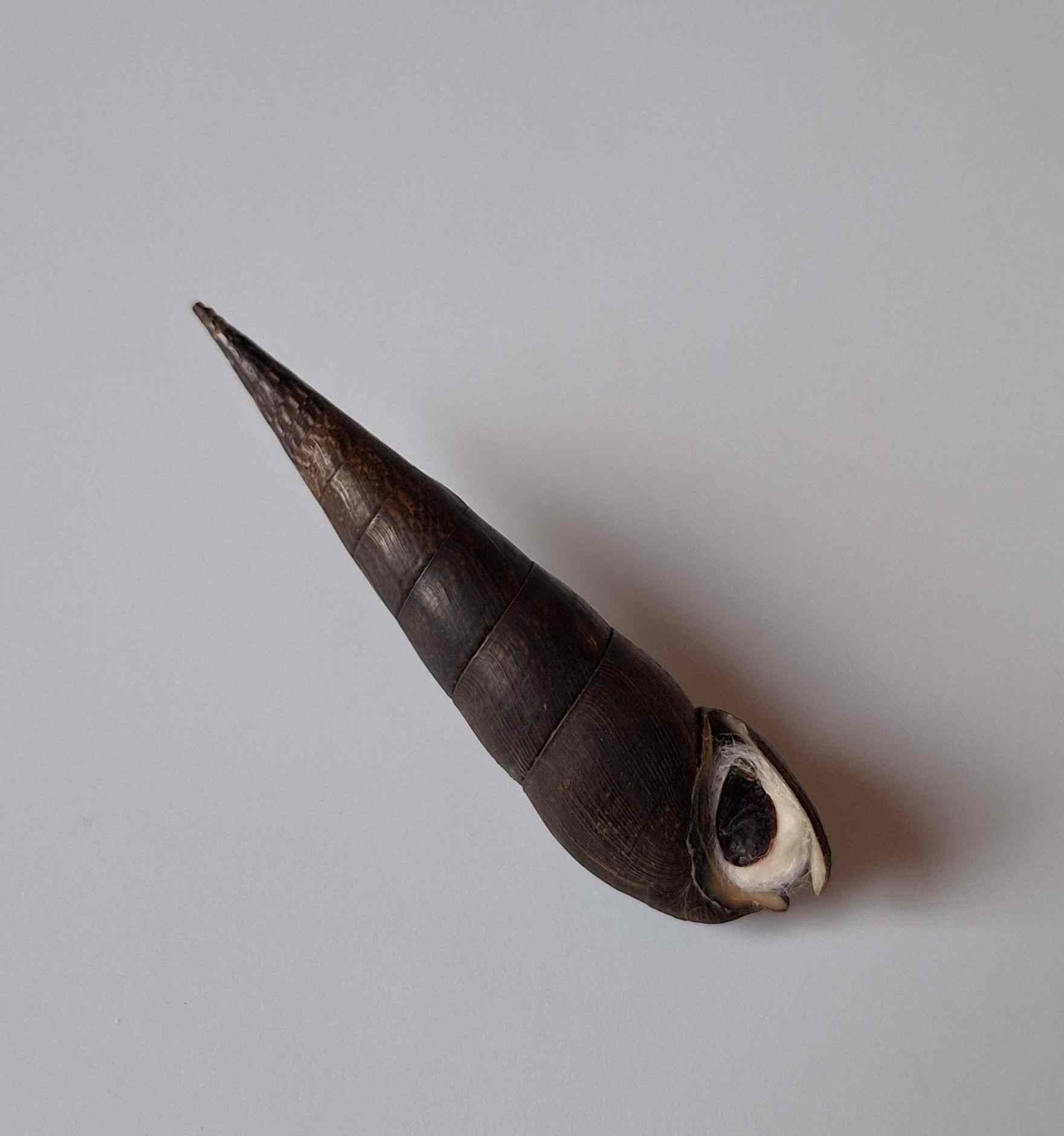 • tmavý kus s víčkem, jedna zhojená jizva, vyloveno v hloubce 2 až 5 metrů, family PACHYCHILIDAE (dark piece with operculum, one healed scar, taken by diving at a depth of 2 to 5 meters)