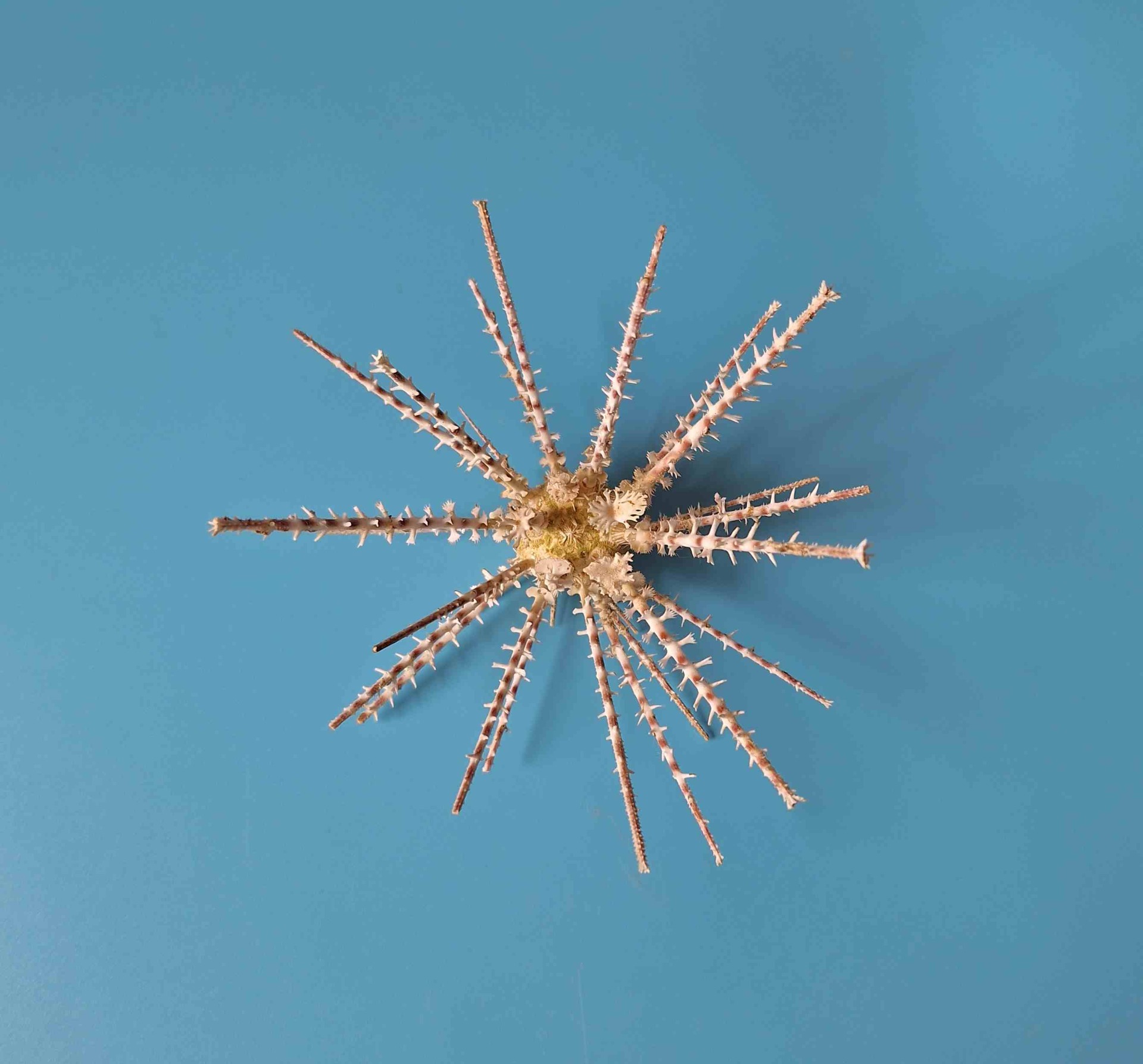 • Jedinečný exemplář, top trny, velmi krásný. Velmi křehký, některé trny mohou být přilepené, ale je to viditelné pouze v detailu, těžké dostat nepoškozený z 300 m, patří do family ECHINOIDEA (Unique specimen, top thorns, very beautiful. Very fragile, some thorns can be reglued, but its visible in big detail only, hard to get from 300 m undamaged)