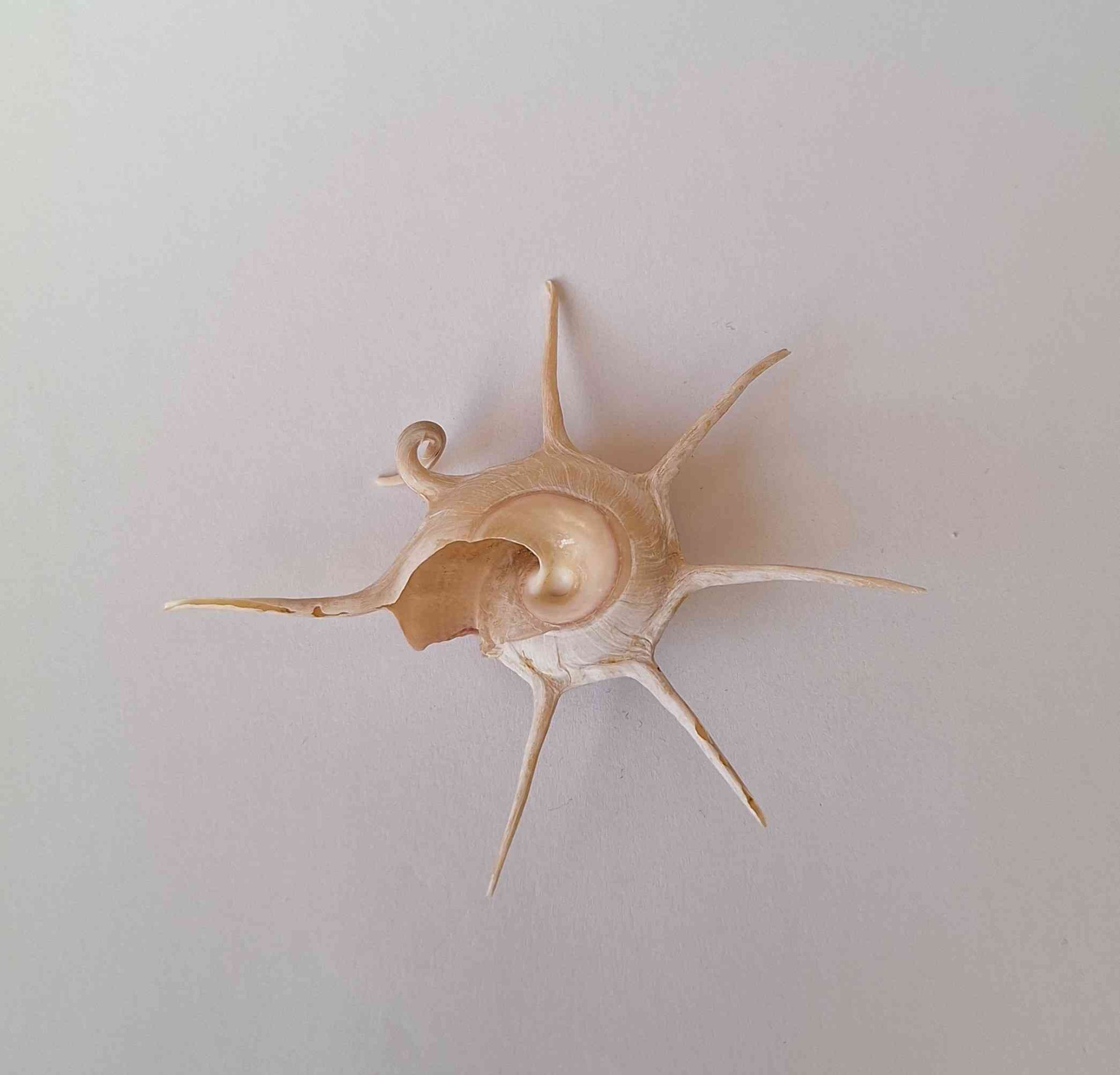 • hezký barevný kus, drobné štípnutí na trnech a okraji, z hloubky 100 metrů (nice colored piece, minor chips on spines and lip, from depth of 100 meters)