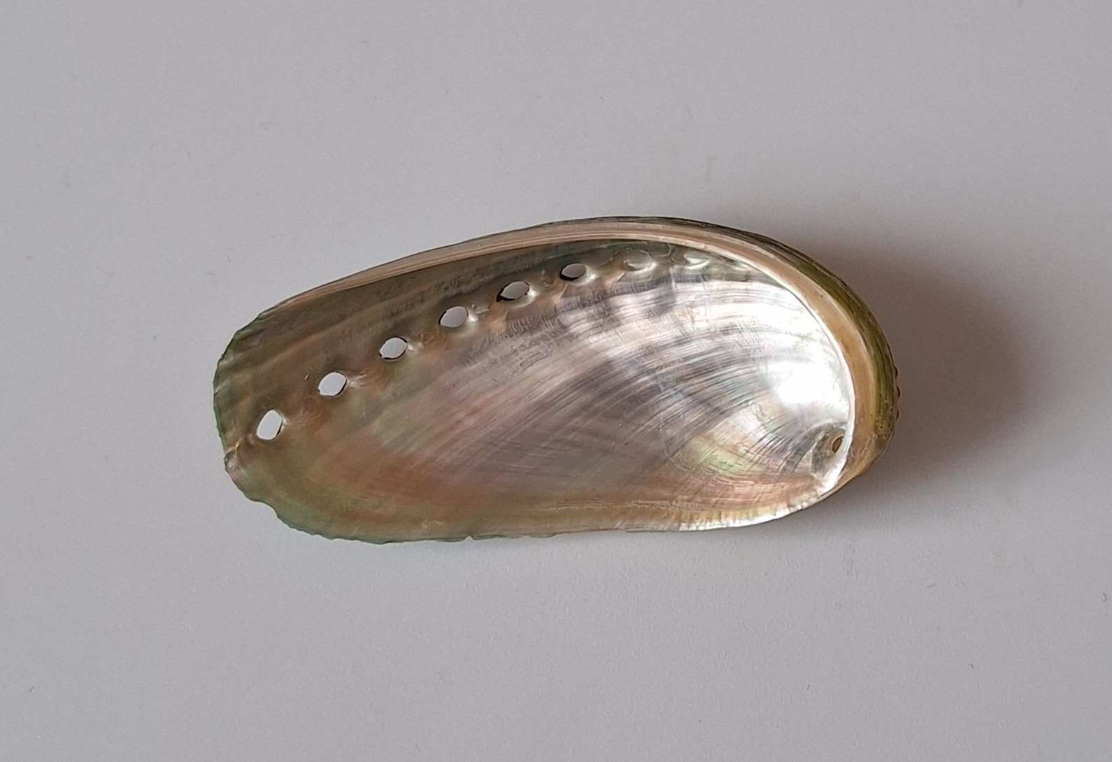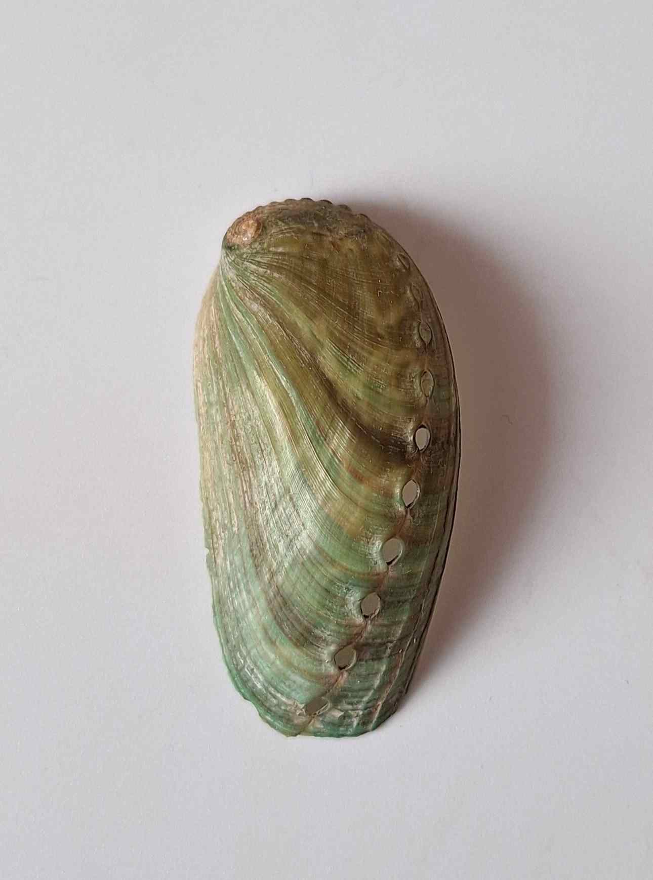 • hezký kus, nazelenalá barva, vevnitř perleťový, drobná štípnutí na okraji, vyloven v hloubce 3 až 5 metrů (nice piece, greenish color, pearlescent color inside, minor chips on lip, taken by diving at a depth of 3 to 5 meters)