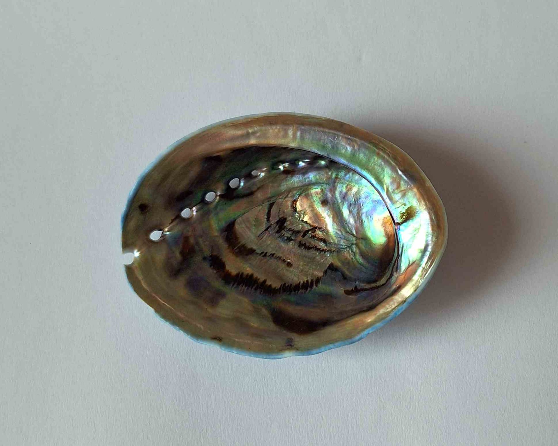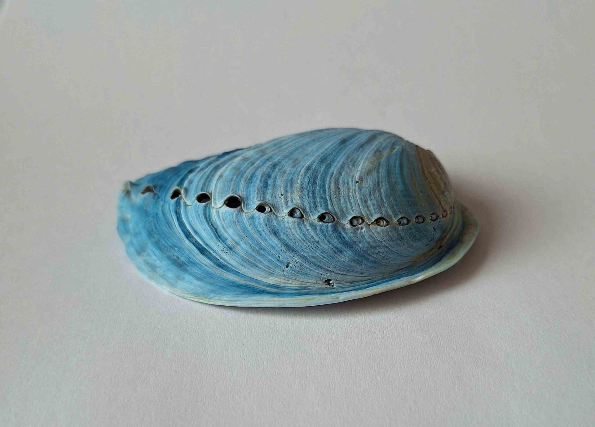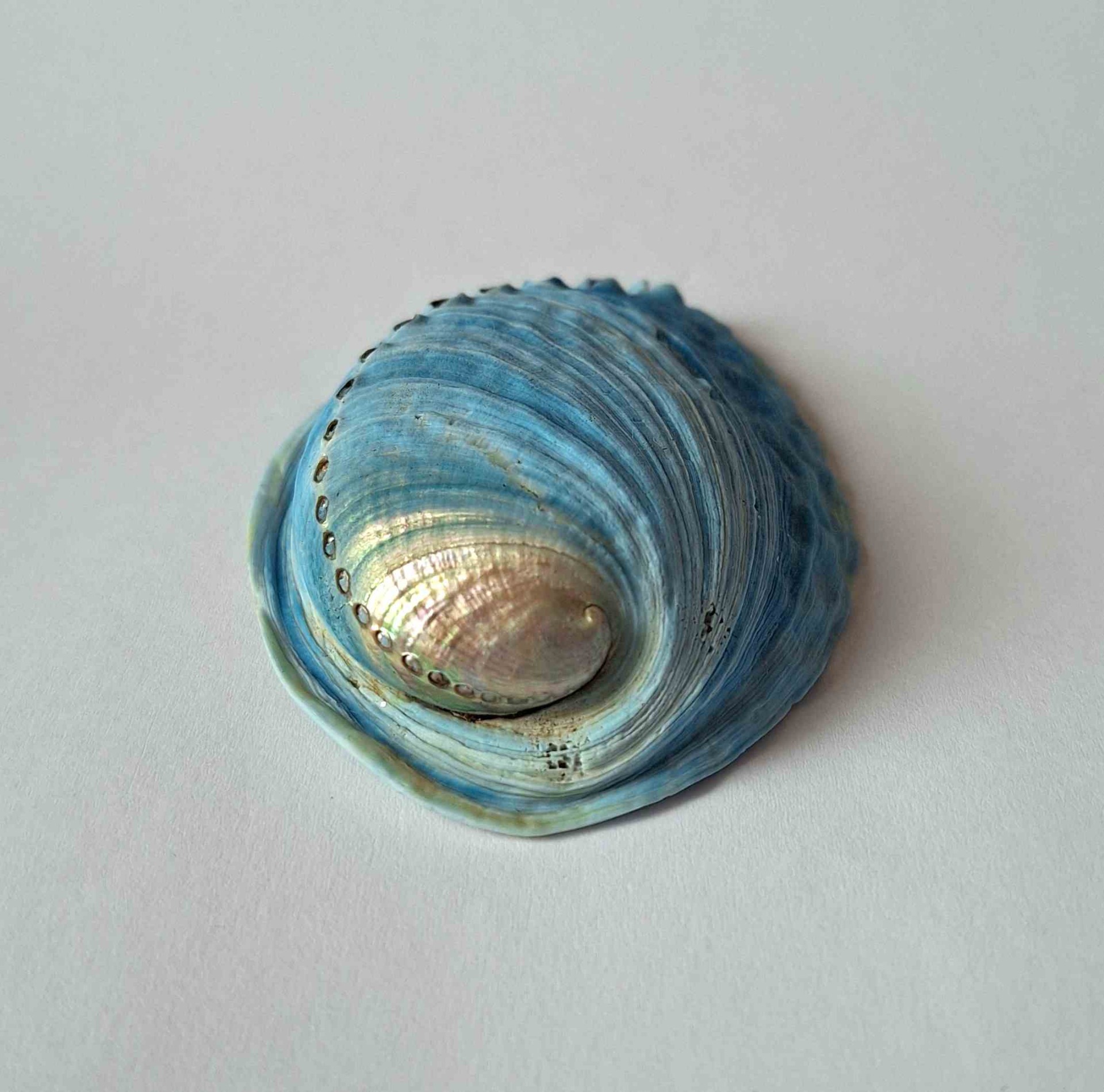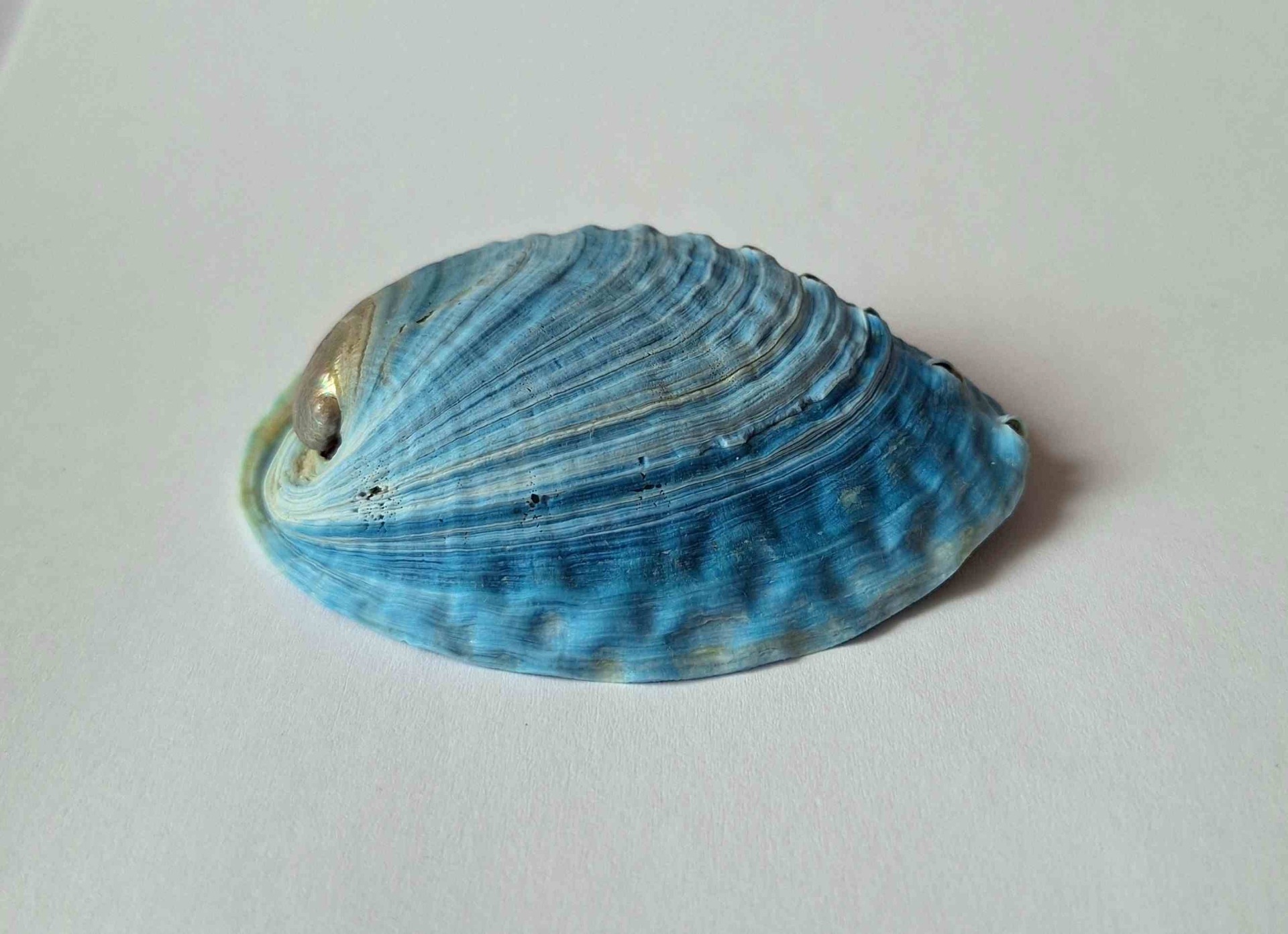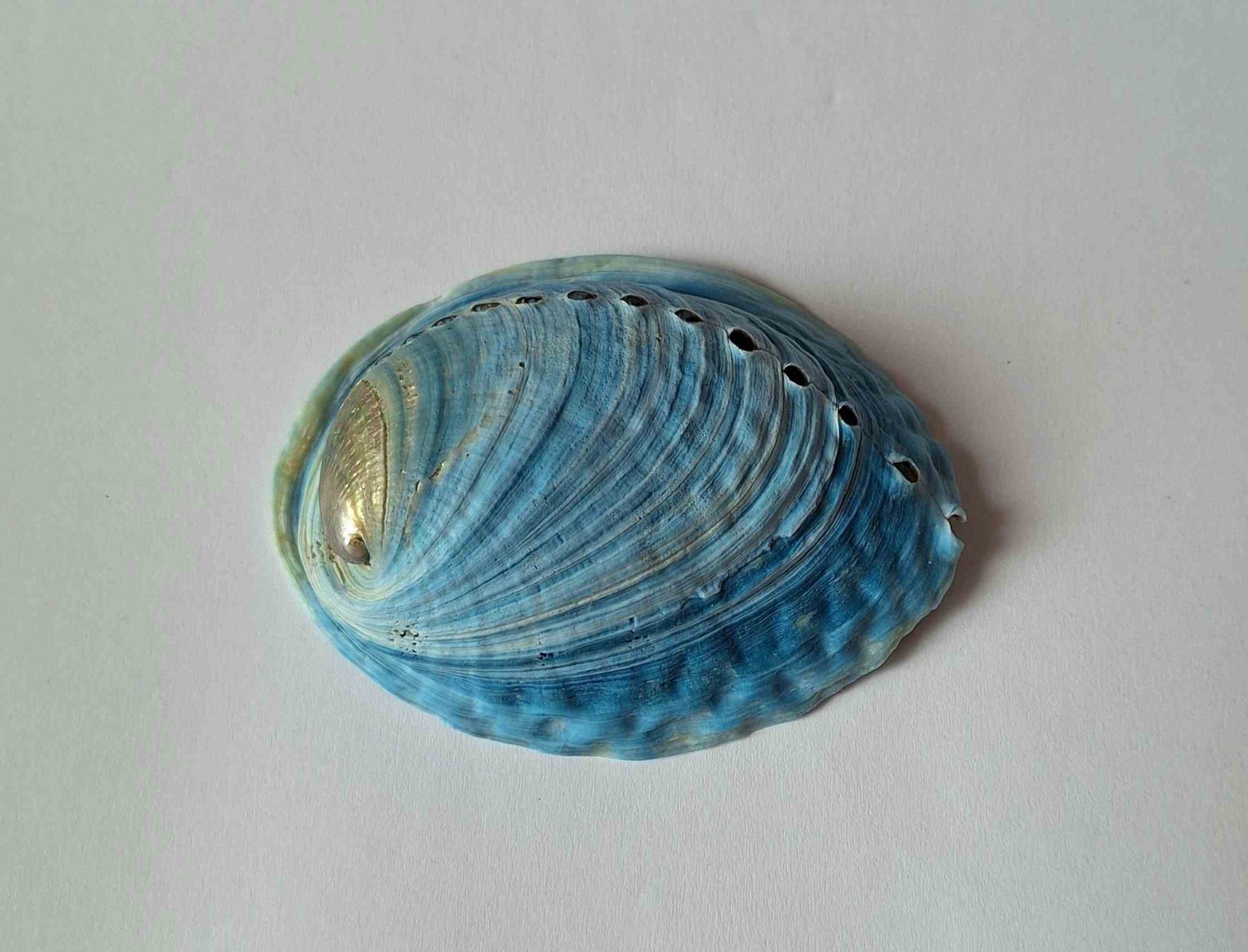 • nádherný barevný exemplář, krásné odstíny modrá - tyrkysová (těžko se zachycuje skutečný odstín), perleťová vevnitř, drobné nedokonalosti (beautiful colored specimen, beautiful shades of blue - turquoise (hard to capture the real shade), pearlescent inside, minor imperfections)