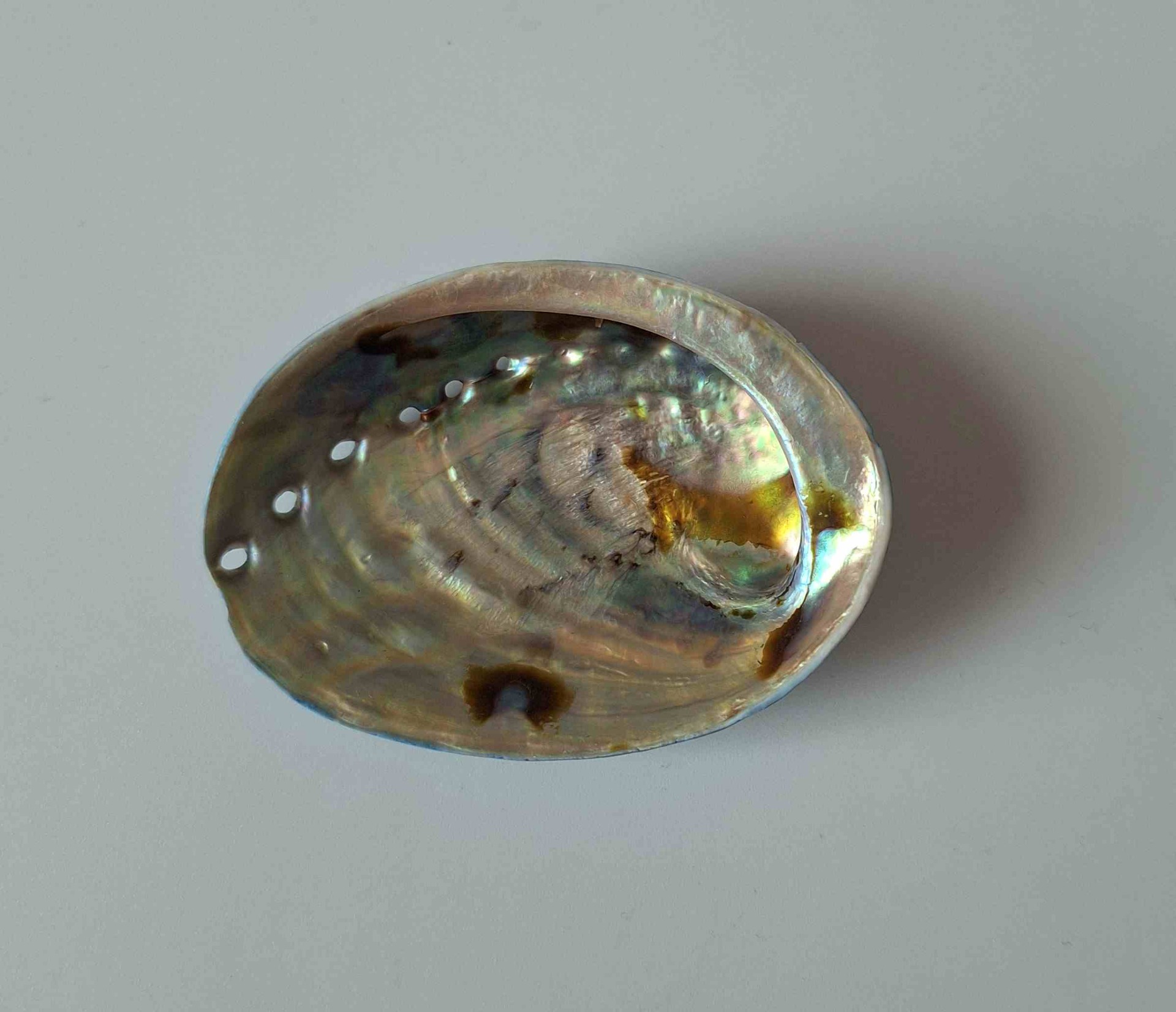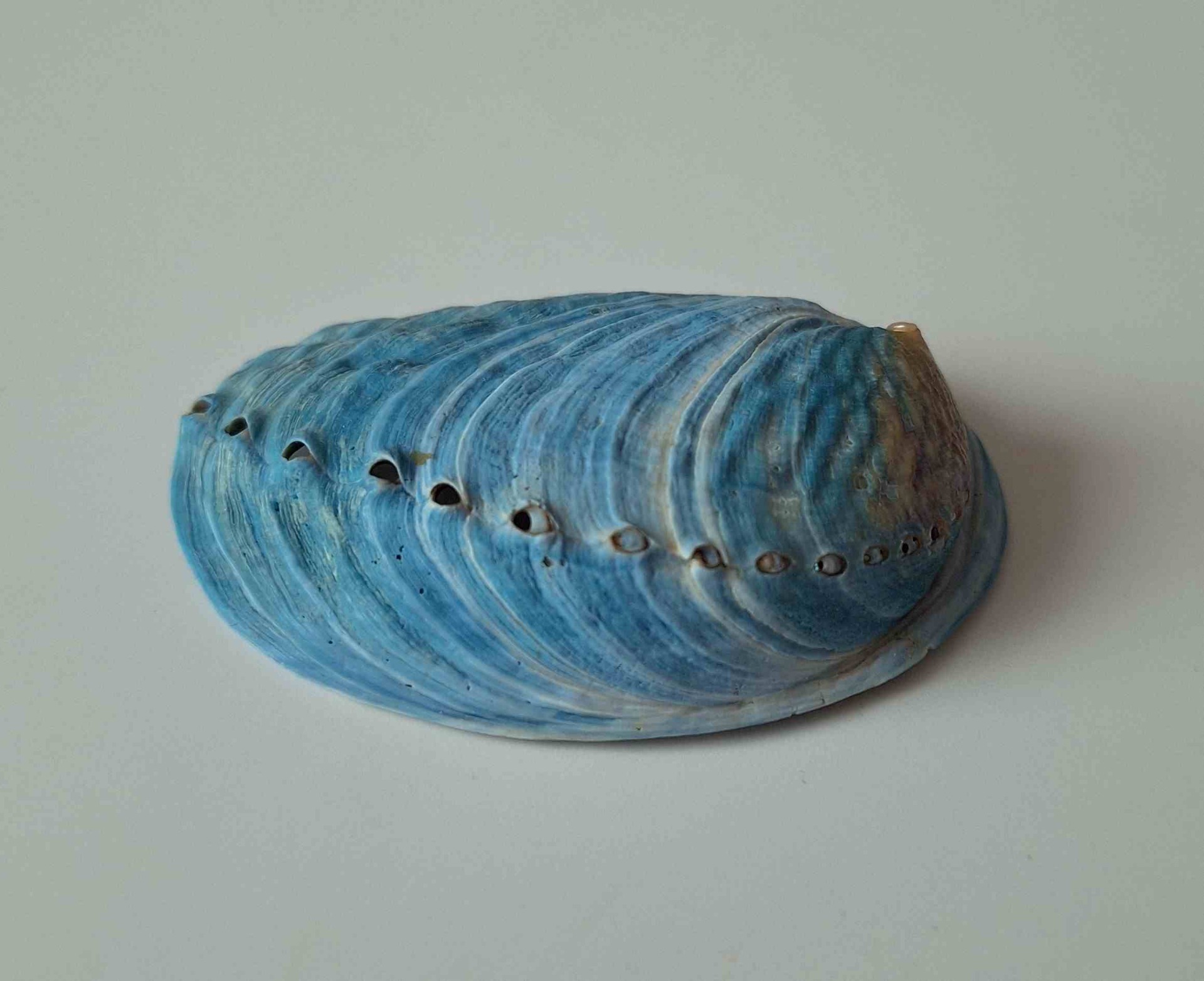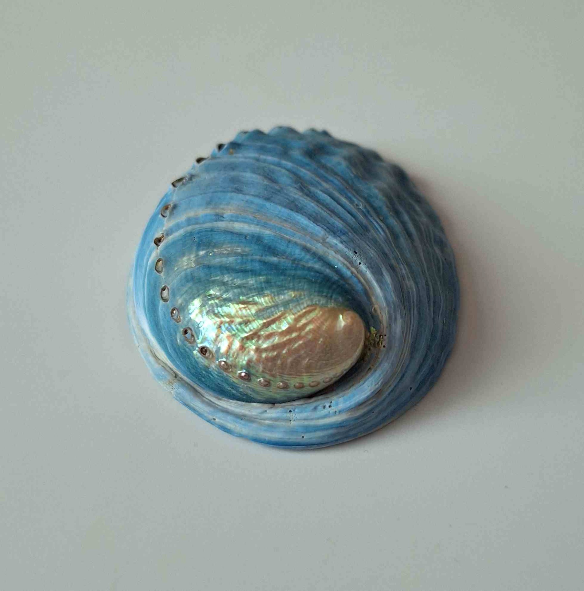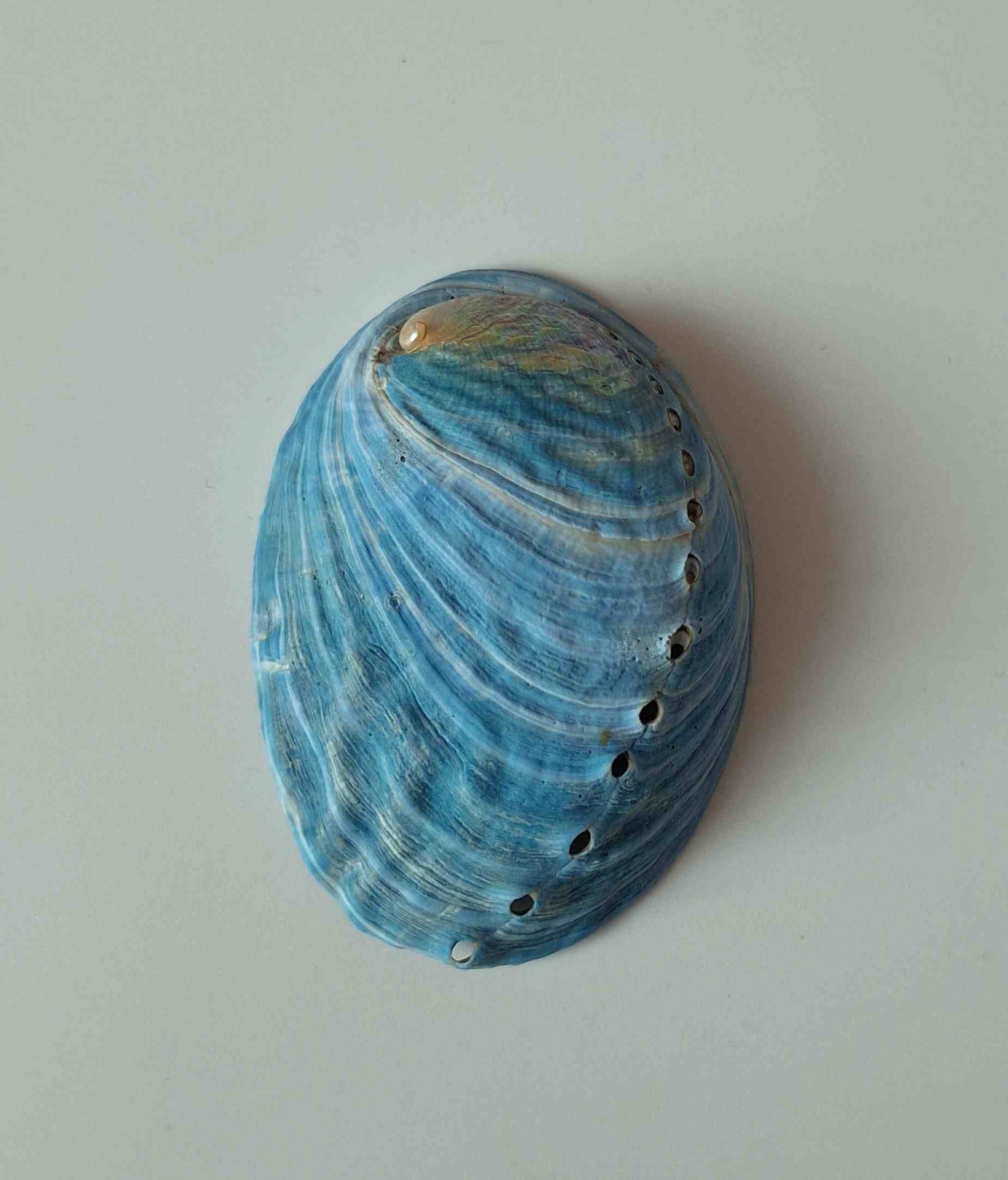• nádherný barevný exemplář, krásné odstíny modrá - tyrkysová (těžko se zachycuje skutečný odstín), perleťová vevnitř, drobná jizva (beautiful colored specimen, beautiful shades of blue - turquoise (hard to capture the real shade), pearlescent inside, minor scar)