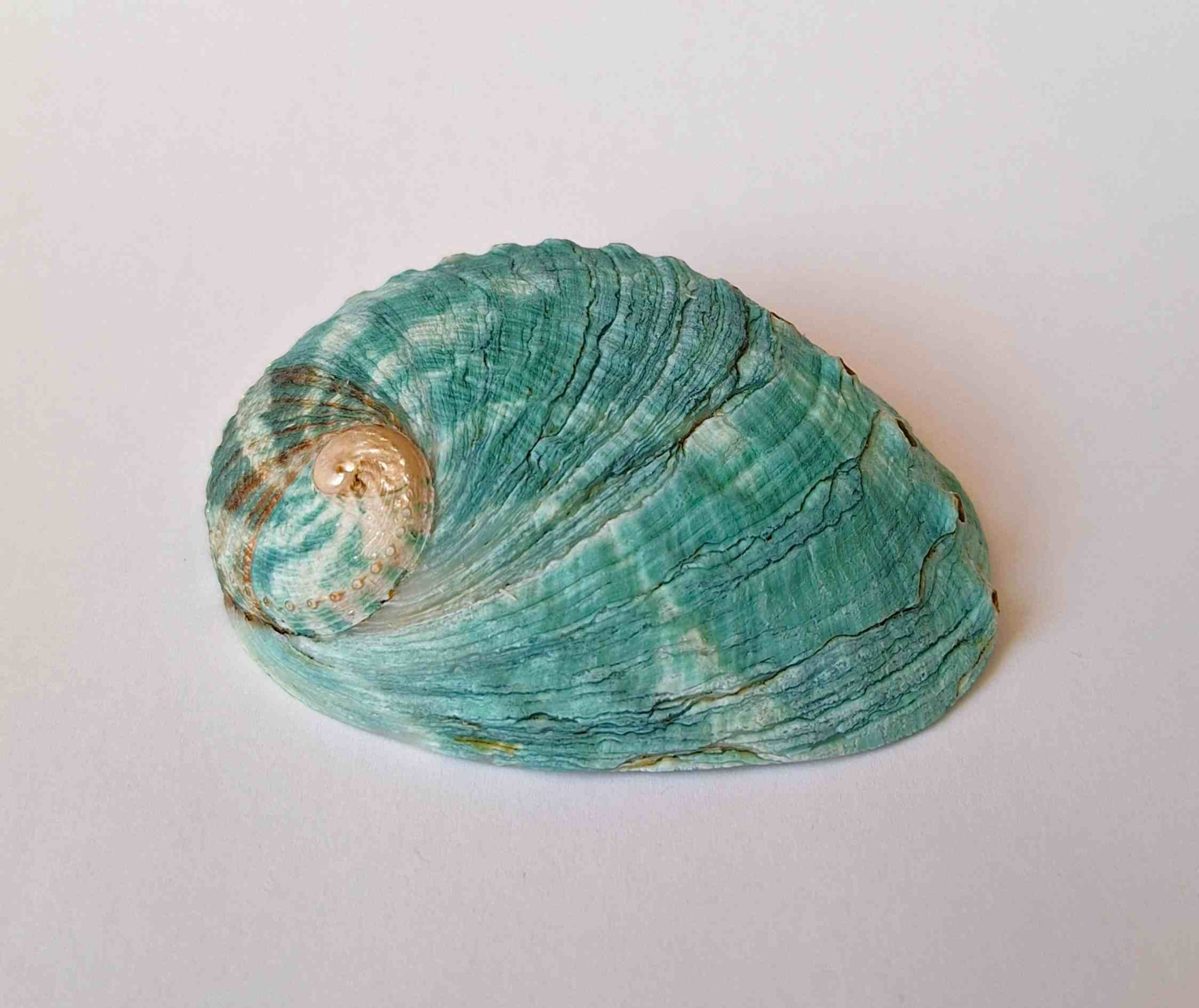 • hezký velký exemplář, krásná zelená barva, těžko se zachycuje skutečný odstín, uvnitř perleťová, lehce na jednom okraji zabroušená (nice big specimen, very nice green color (hard to capture the real shade), pearlescent inside, minor abrased on one lip)