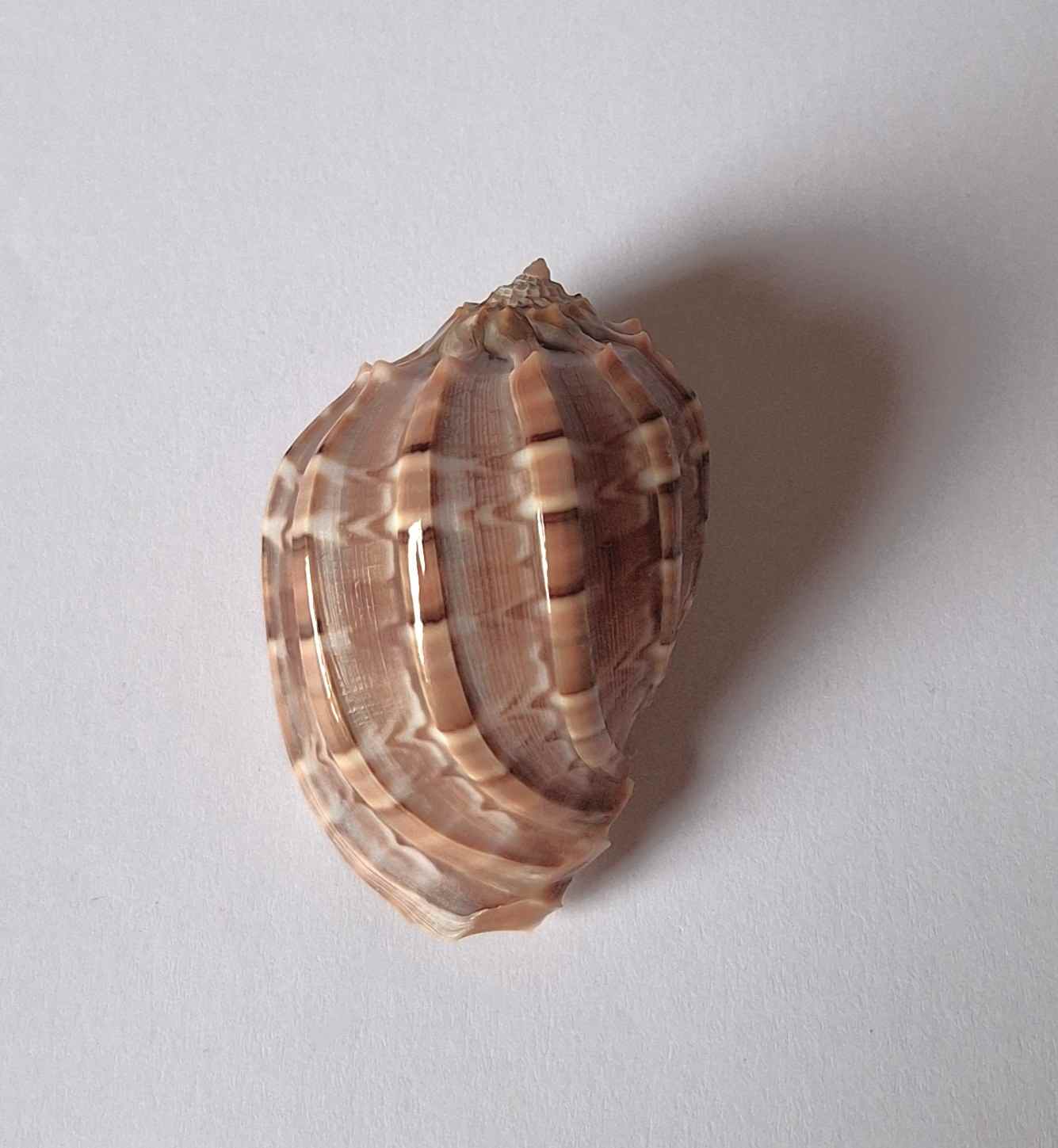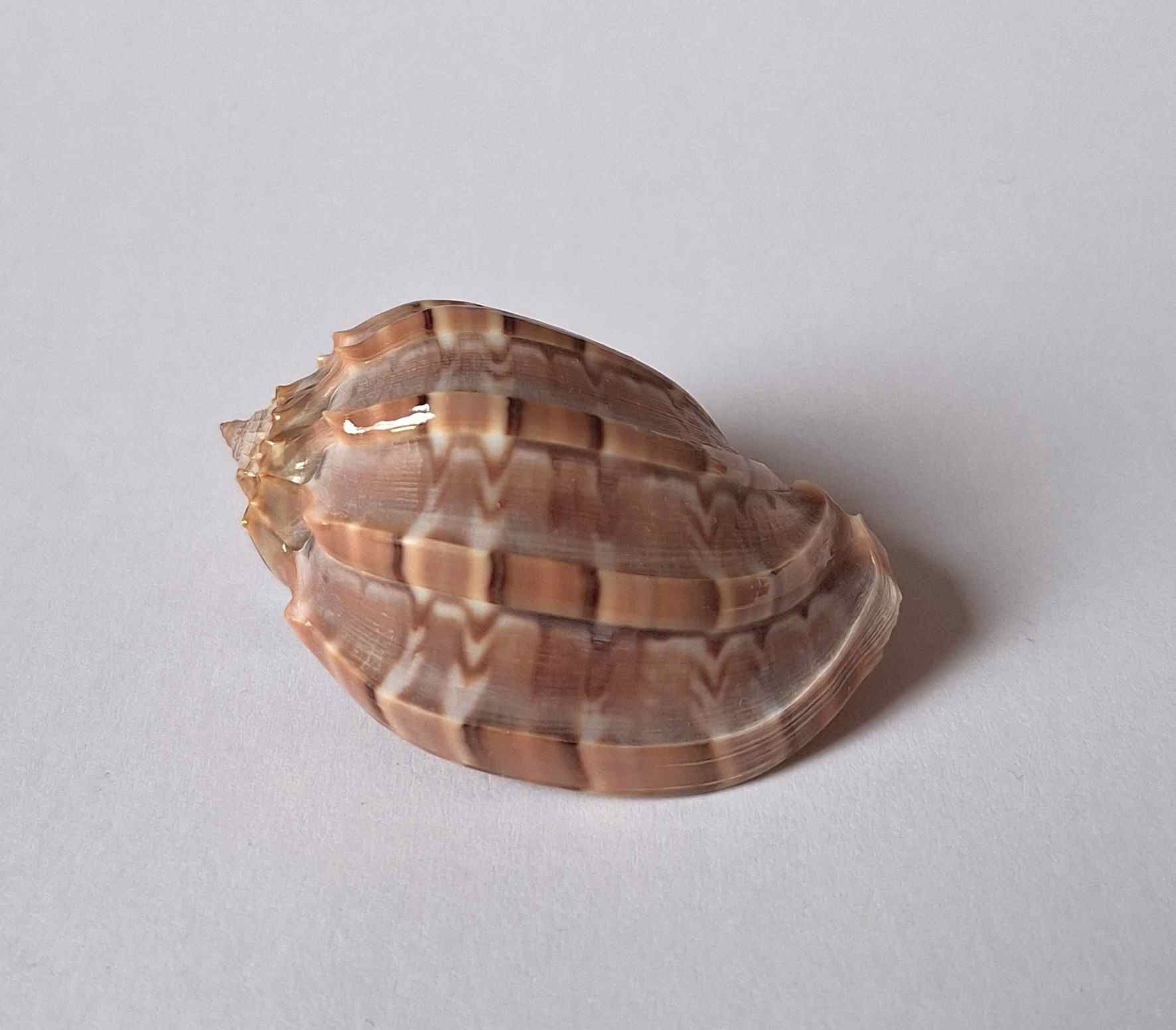 • hezký kus, pěkná barva a vzor, zespodu tmavá, lehce štípnutý kanálek, vyloven v hloubce 20 metrů (nice piece, nice color and pattern, dark underneath, minor chip on canal, taken by diving at a depth of 20 meters)