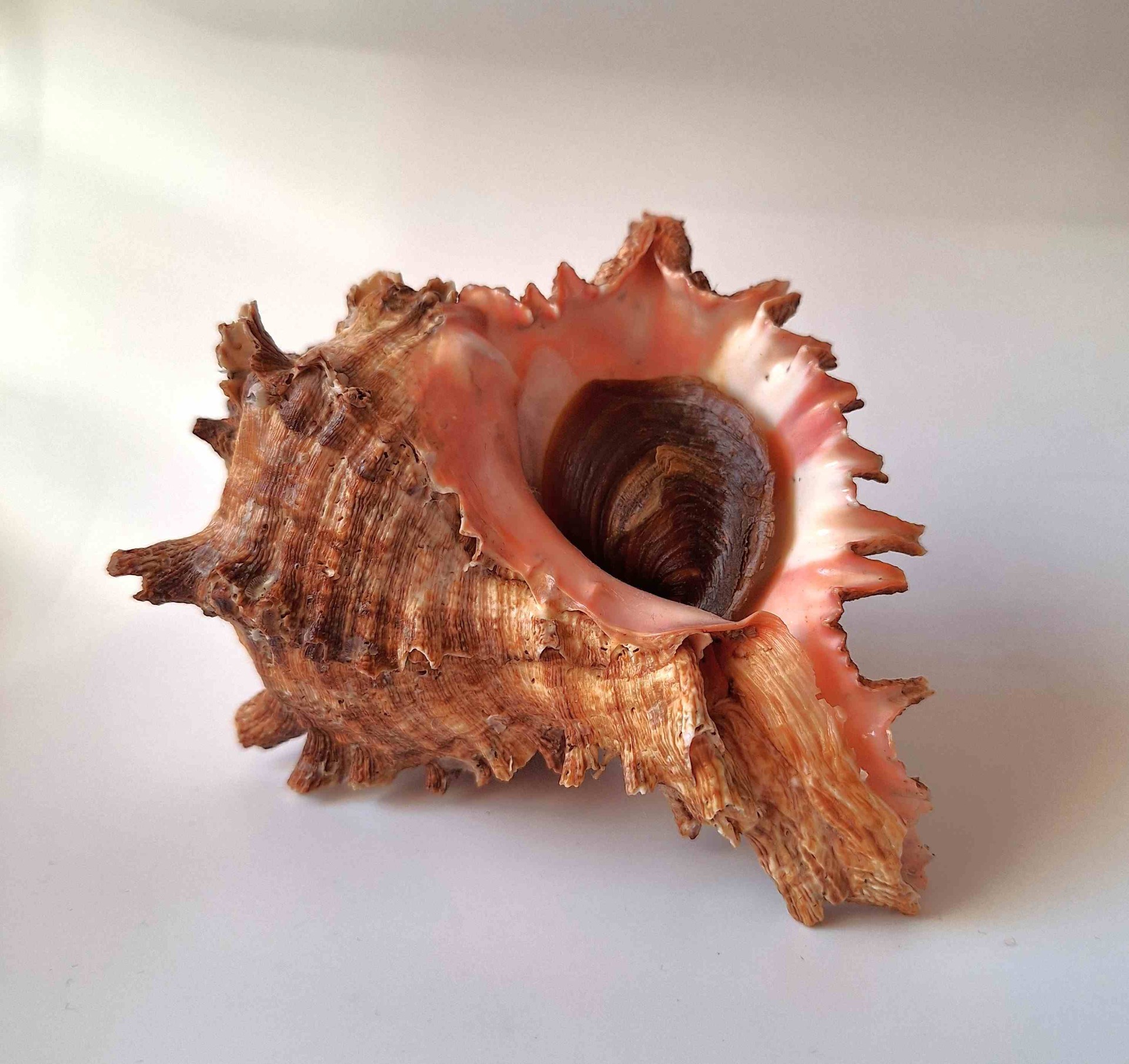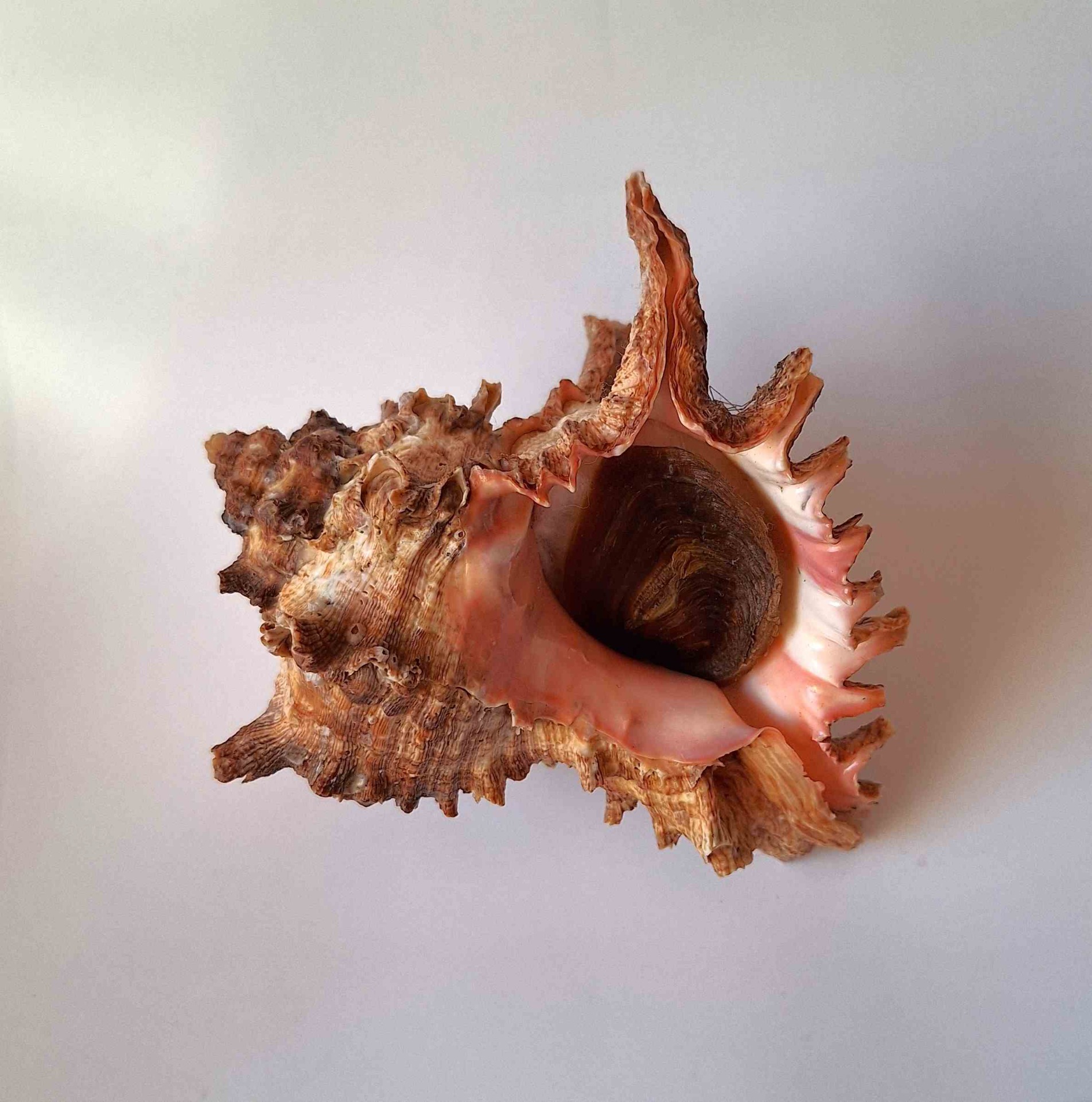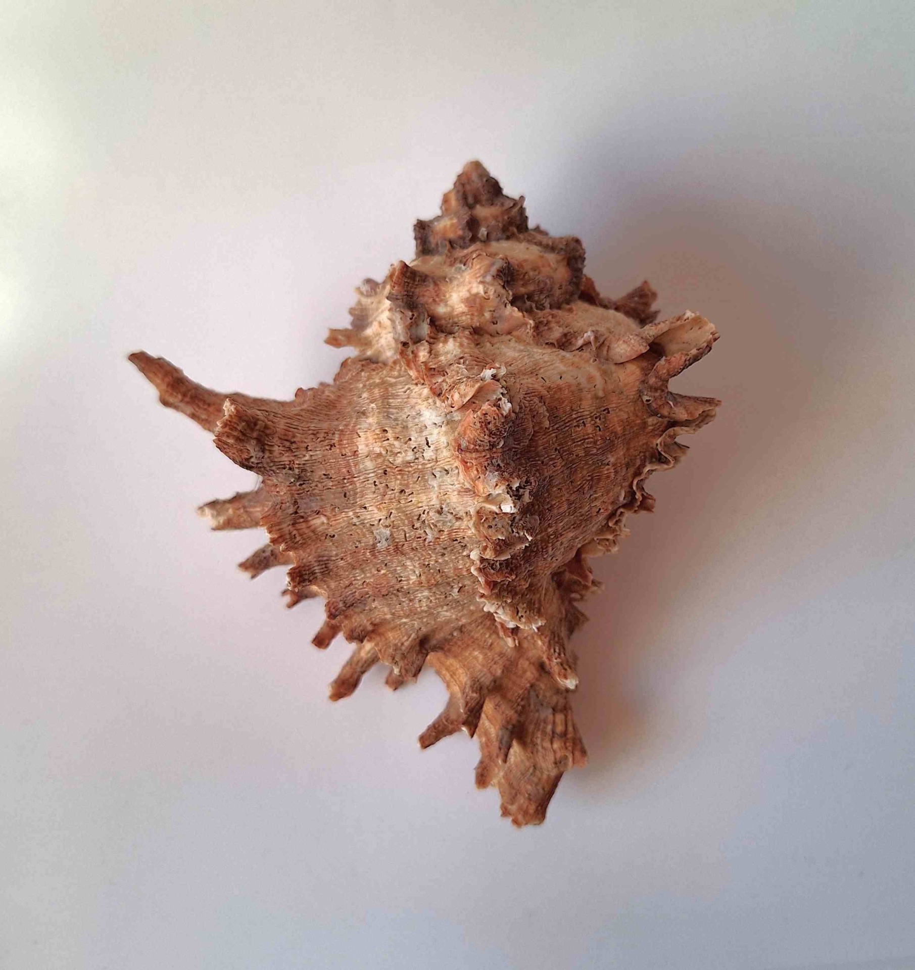 • velký kus s víčkem, krásný narůžovělý okraj, více vyvrtaných dírek, některé trny jsou zlomené či rozpadlé, ale stále hezký kus (big piece with operculum, very nice pinkish lip, many wormholes, some thorns broken but still nice piece)