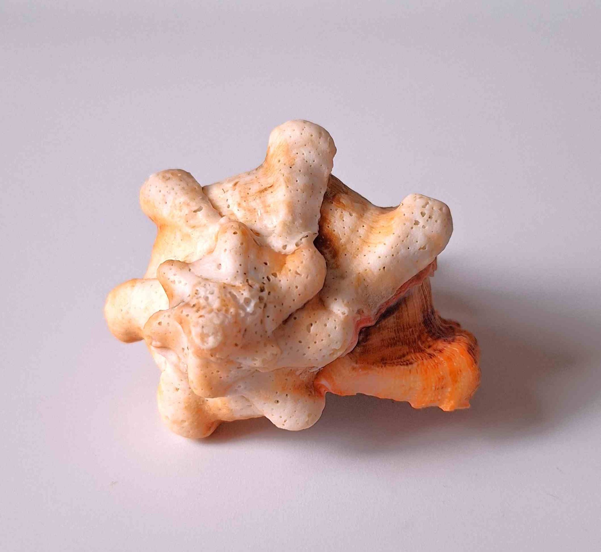 • hezký kus s víčkem, vzácná barva - oranžovo-růžová, hodně malých vyvrtaných dírek (nice piece with operculum, rare color - orange-pink, few smaller drillholes)