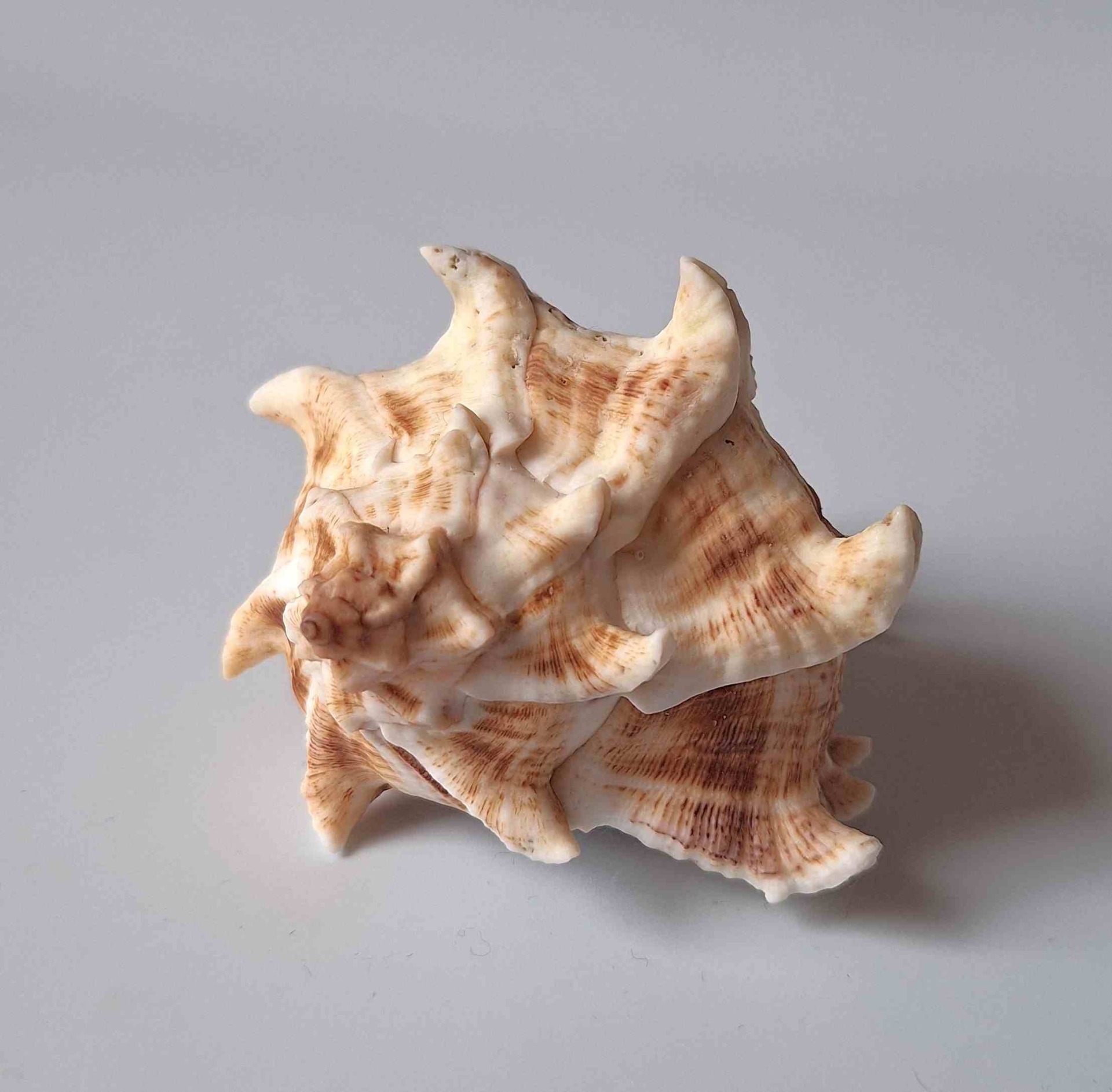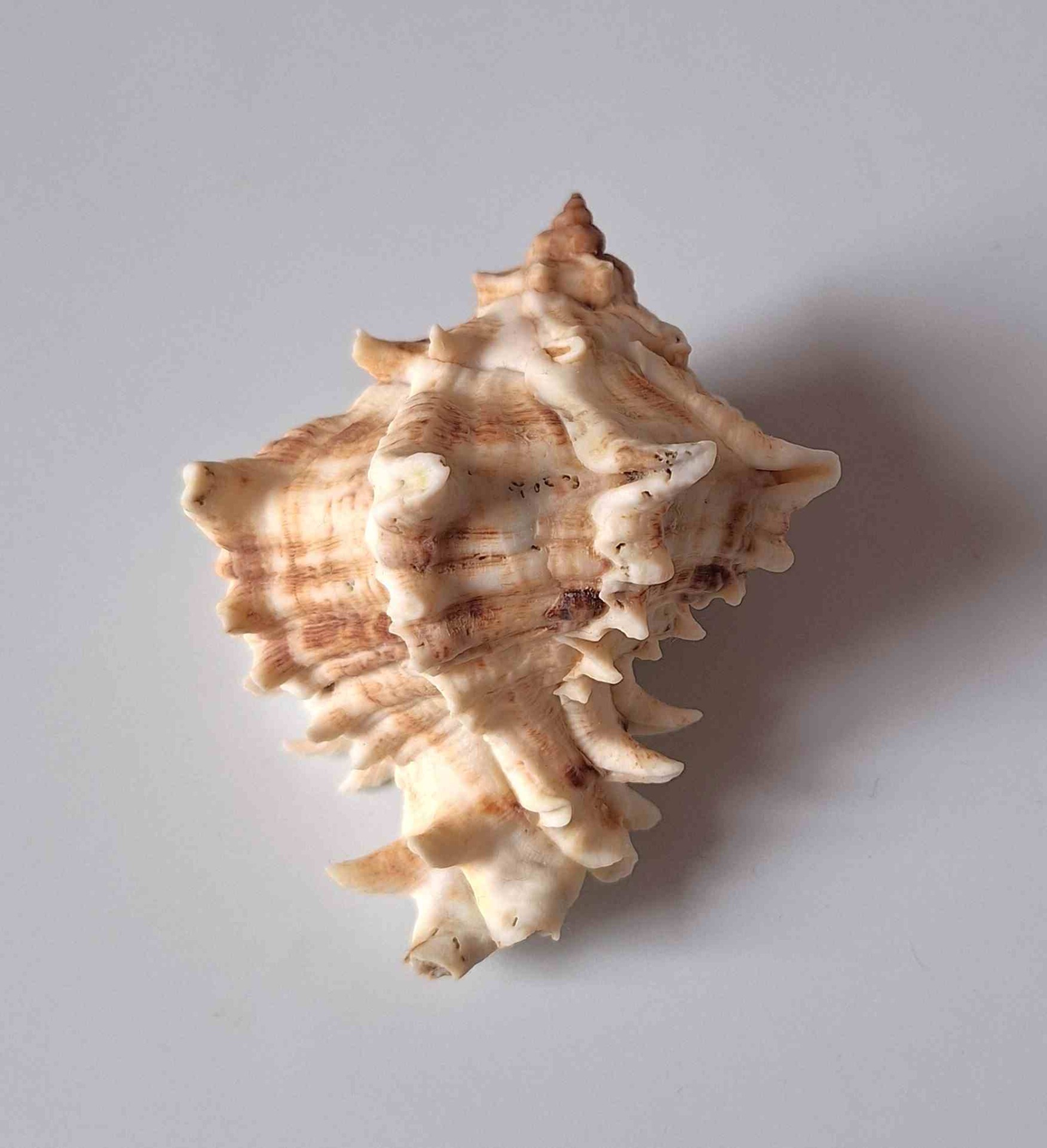 • moc hezký kus s víčkem, světlá barva, drobná štípnutí na kanálku a trnech, drobné dírky (very nice piece with operculum, light color, minor chips on canal and thorns, minor wormholes)